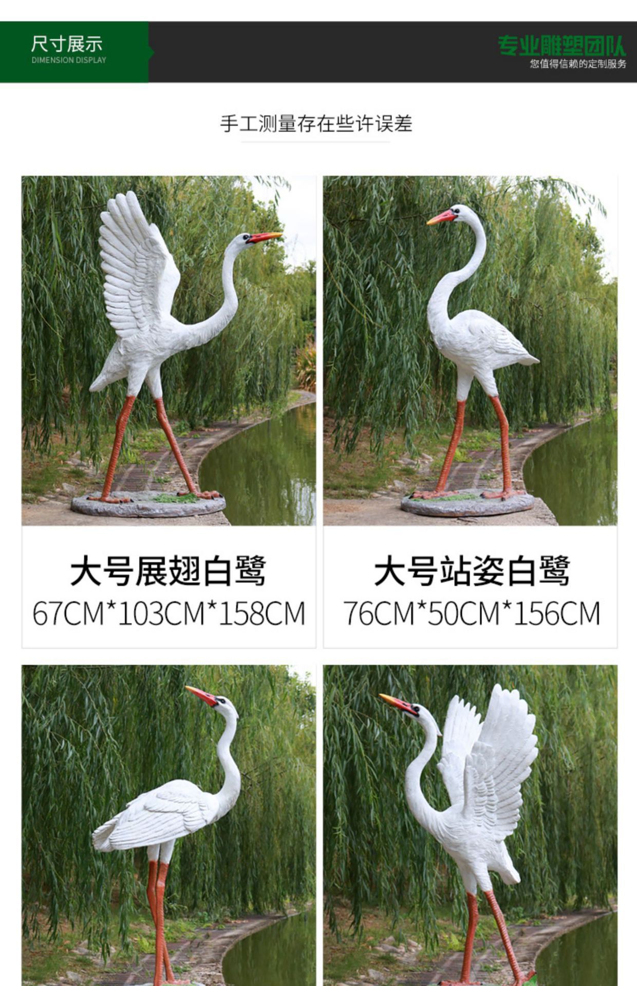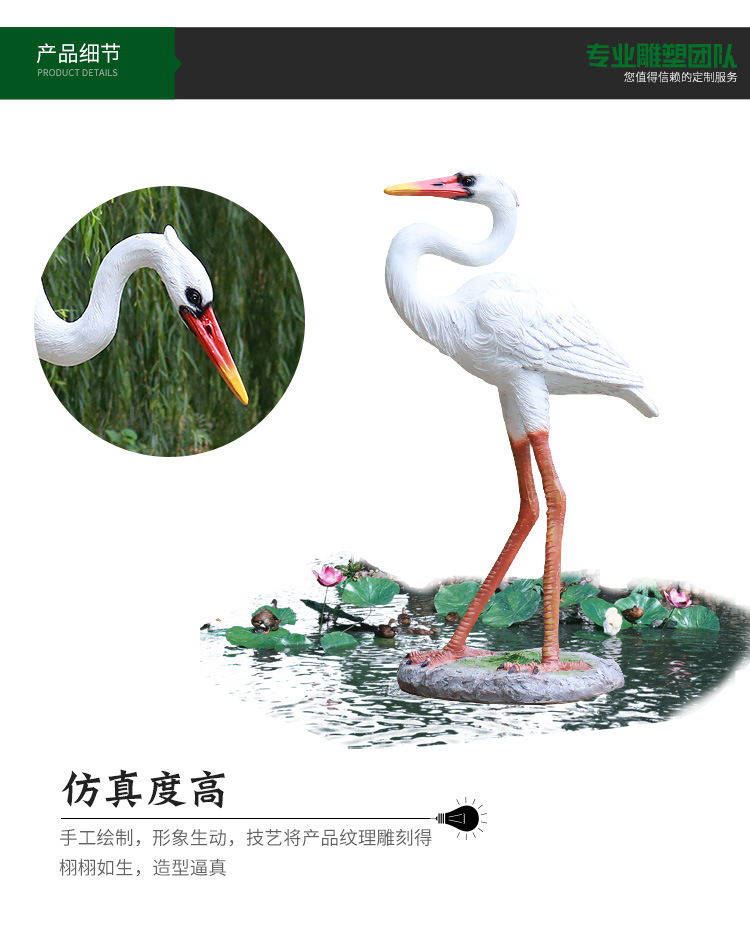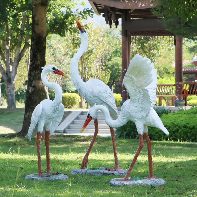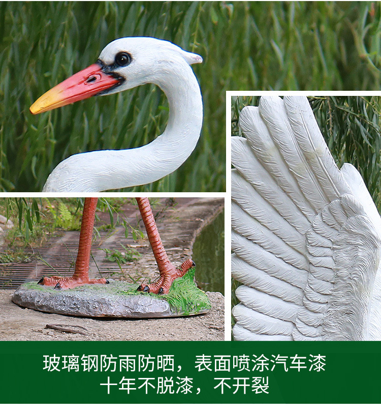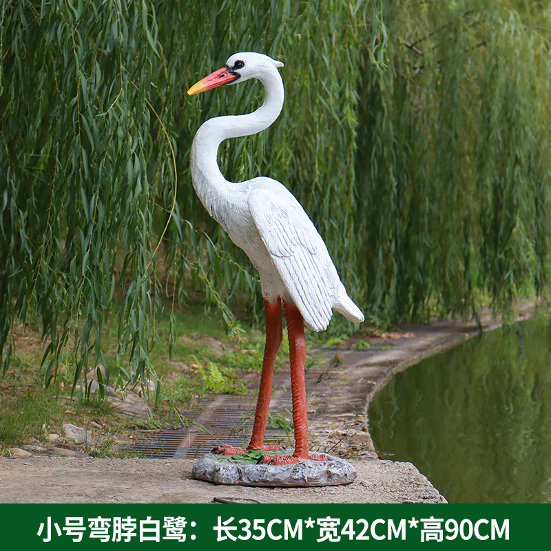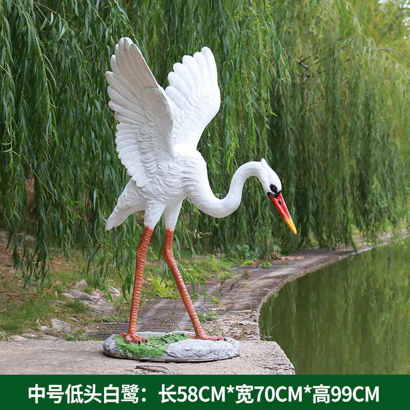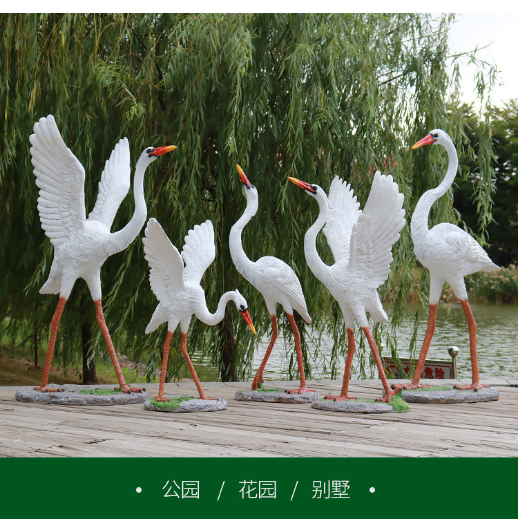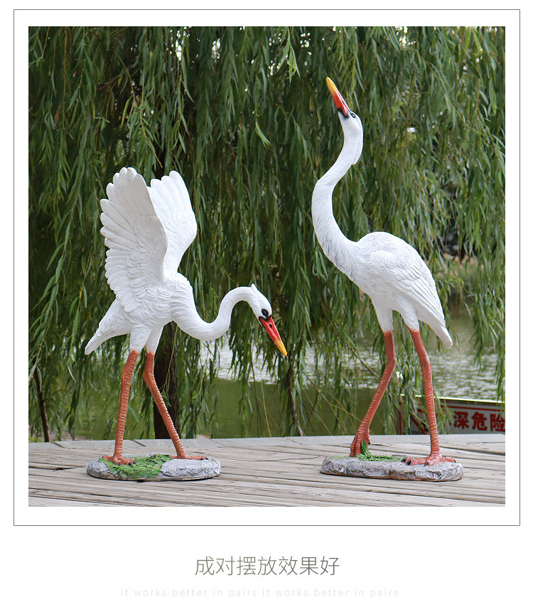 仿真白鹭摆件户外园林动物玻璃钢仙鹤丹顶鹤雕塑花园庭院水景装饰