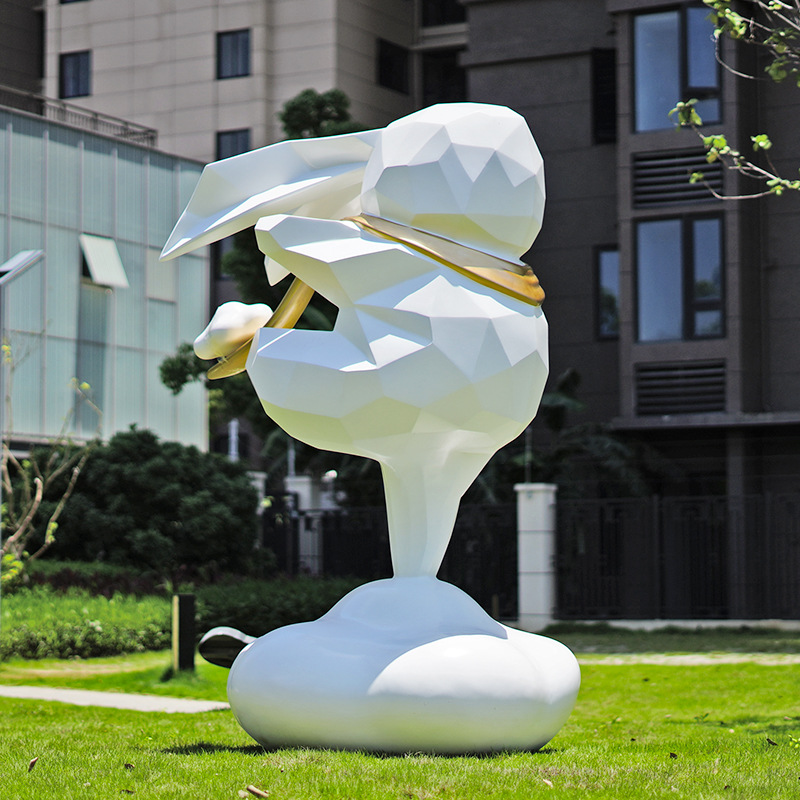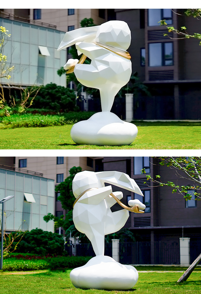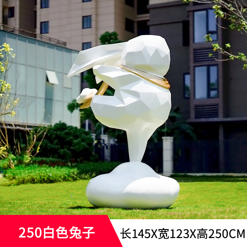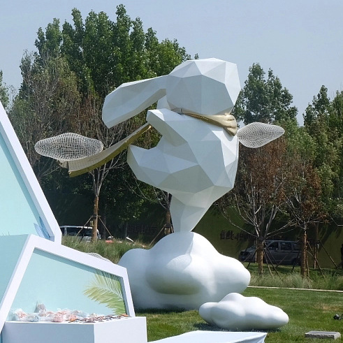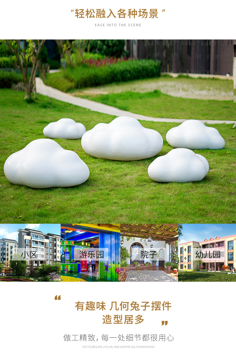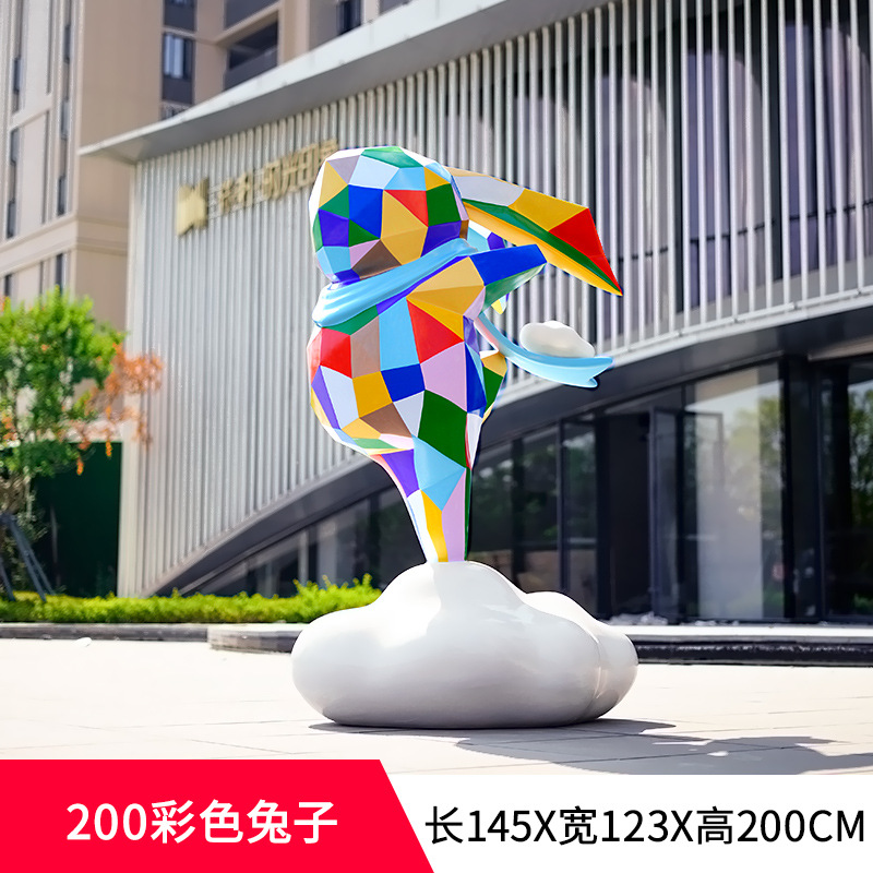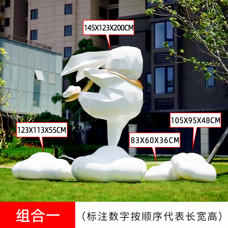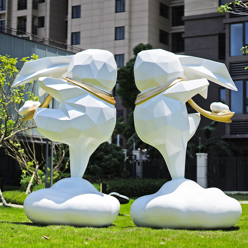 几何兔子云朵玻璃钢雕塑公园商场小区卡通抽象兔园林景观装饰摆件