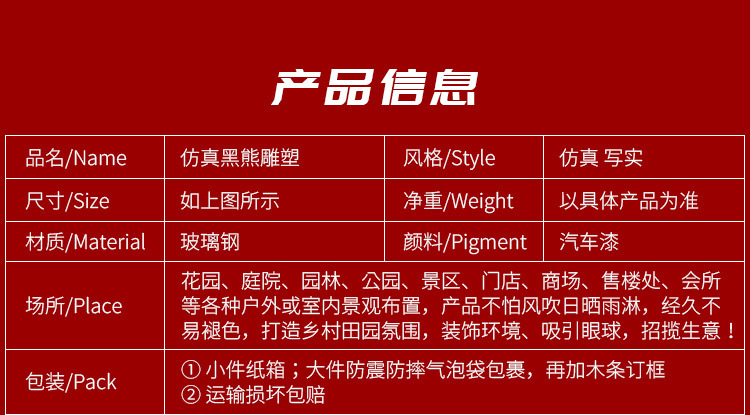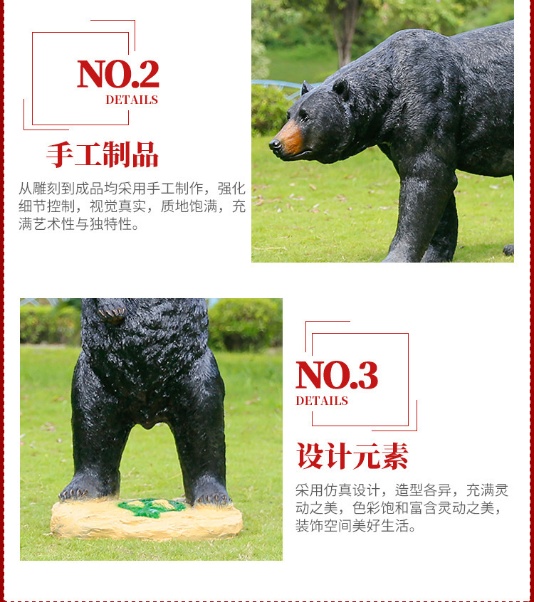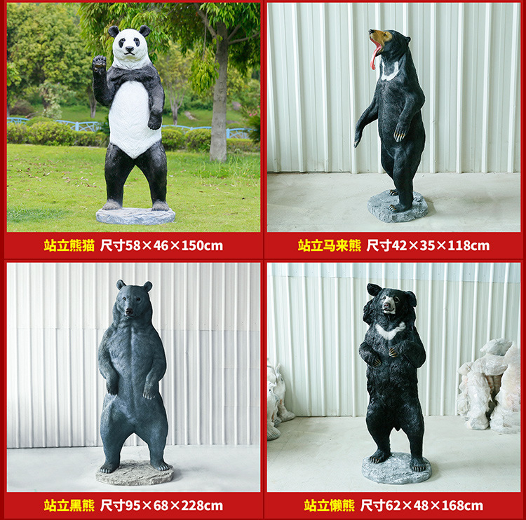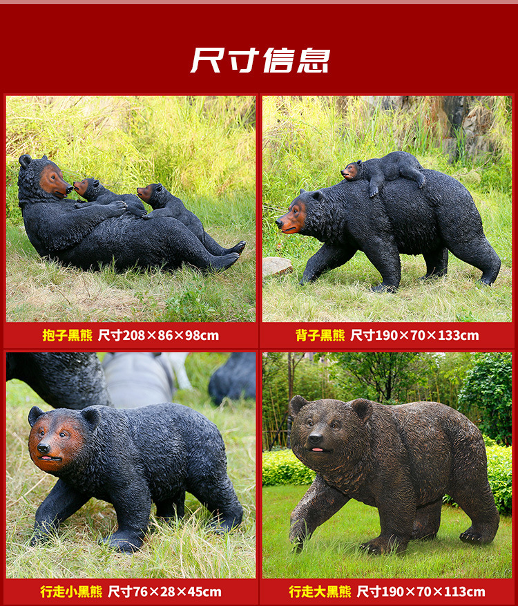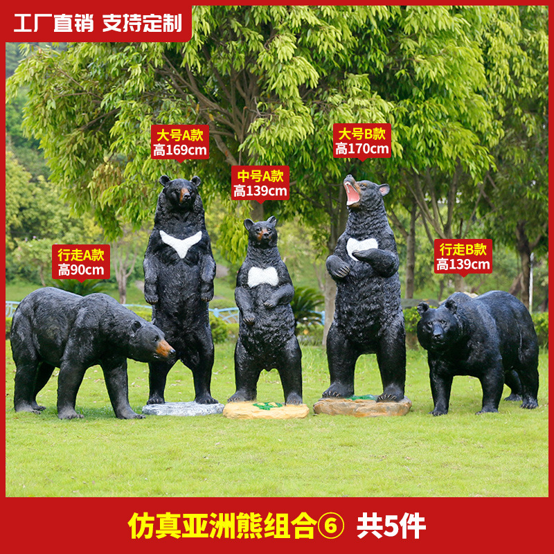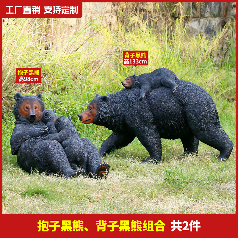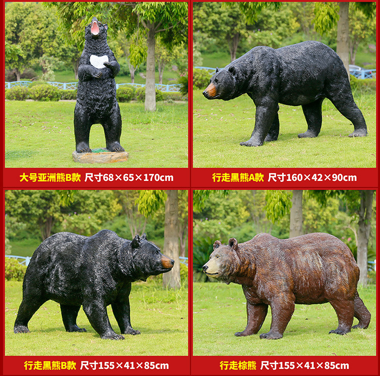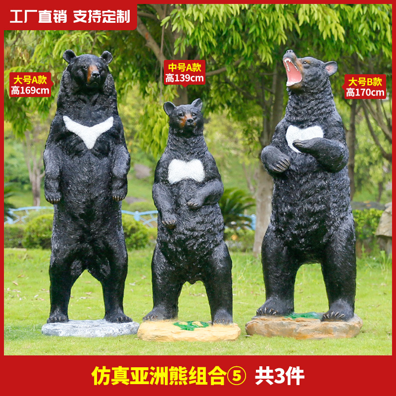 玻璃钢仿真动物黑熊雕塑亚洲棕熊大摆件商场户外景区园林景观装饰