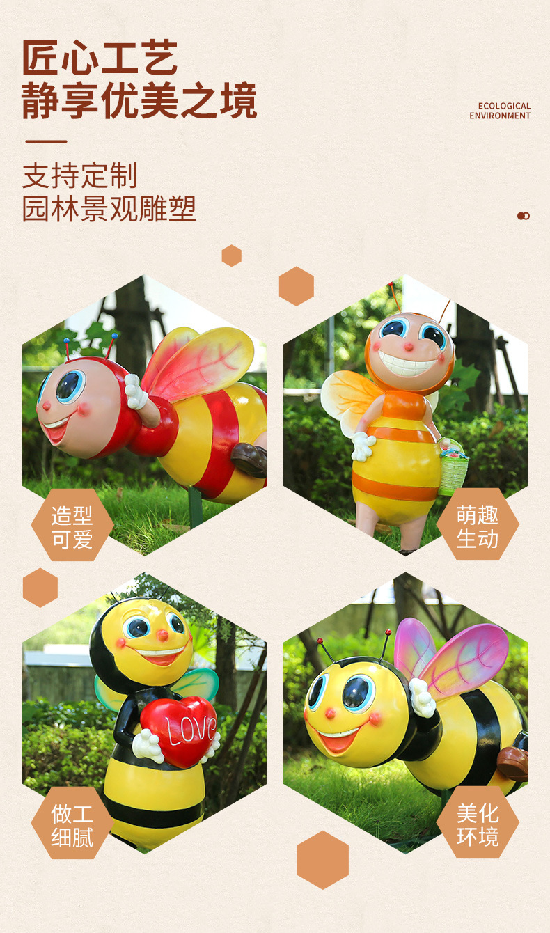 卡通蜜蜂动物玻璃钢雕塑户外摆件公园林景区昆虫小品装饰商场美陈