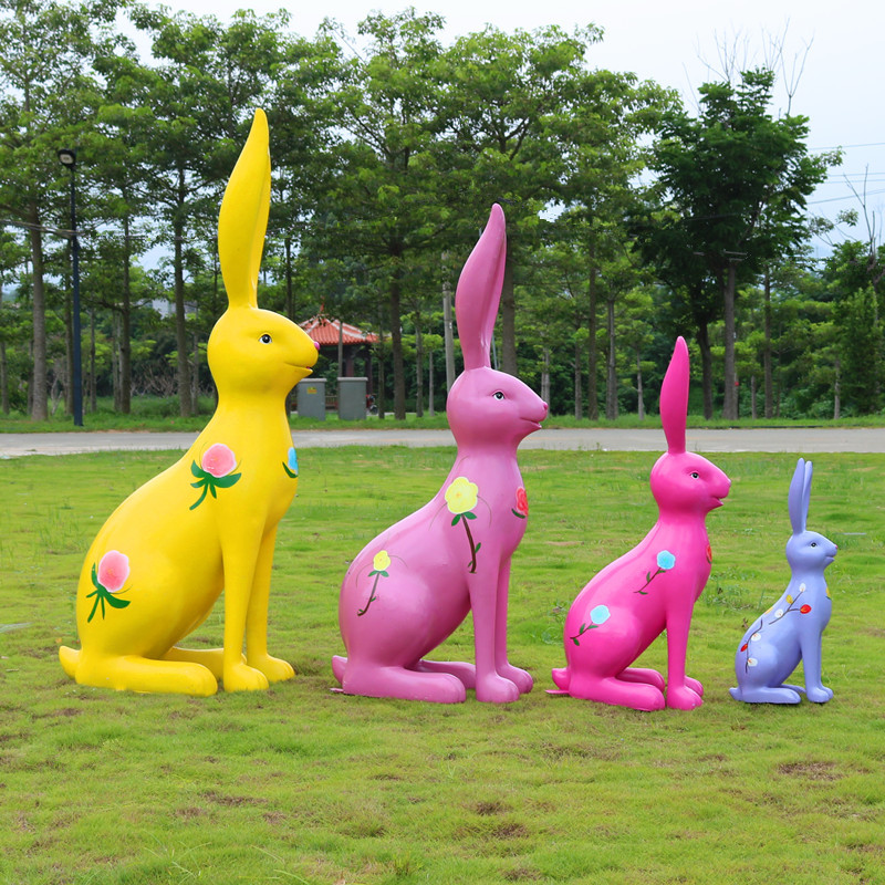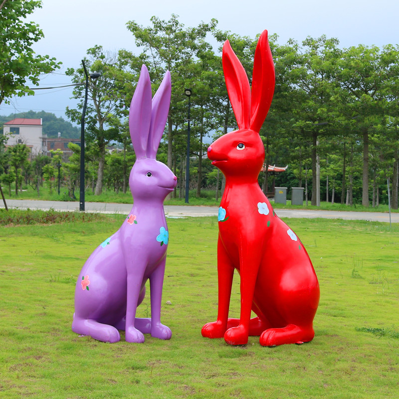 户外园林景观大型彩绘兔子玻璃钢卡通雕塑商场售楼处草坪装饰摆件