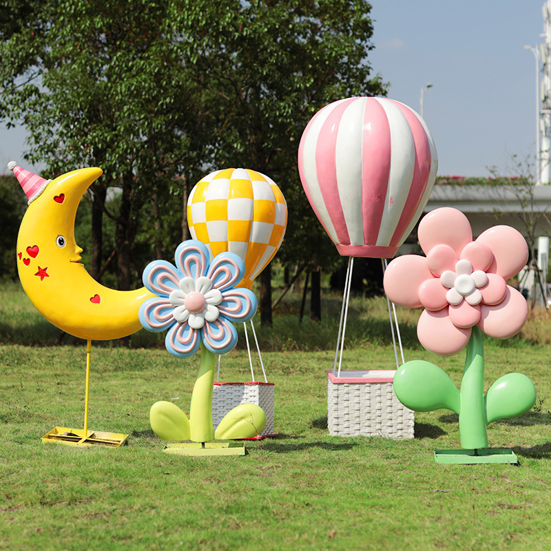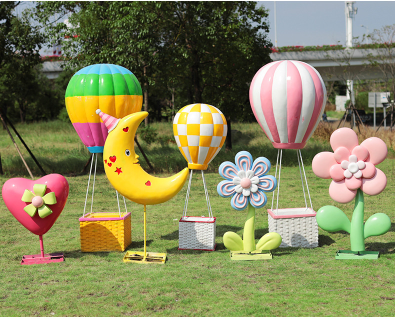 户外热气球玻璃钢创意爱心星星摆件卡通花朵雕塑草坪园林景观小品