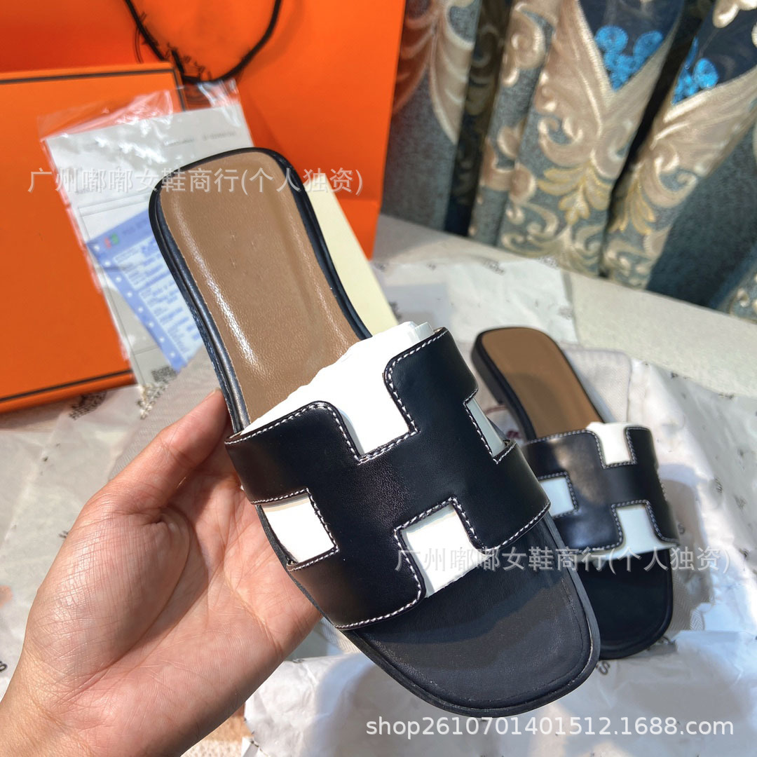 外贸批发 夏季新款H拖鞋高版本平底大码拖鞋女外穿一字拖厂家直销