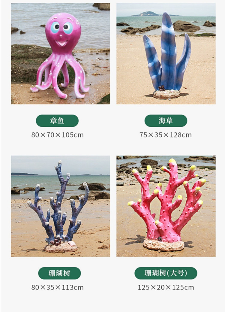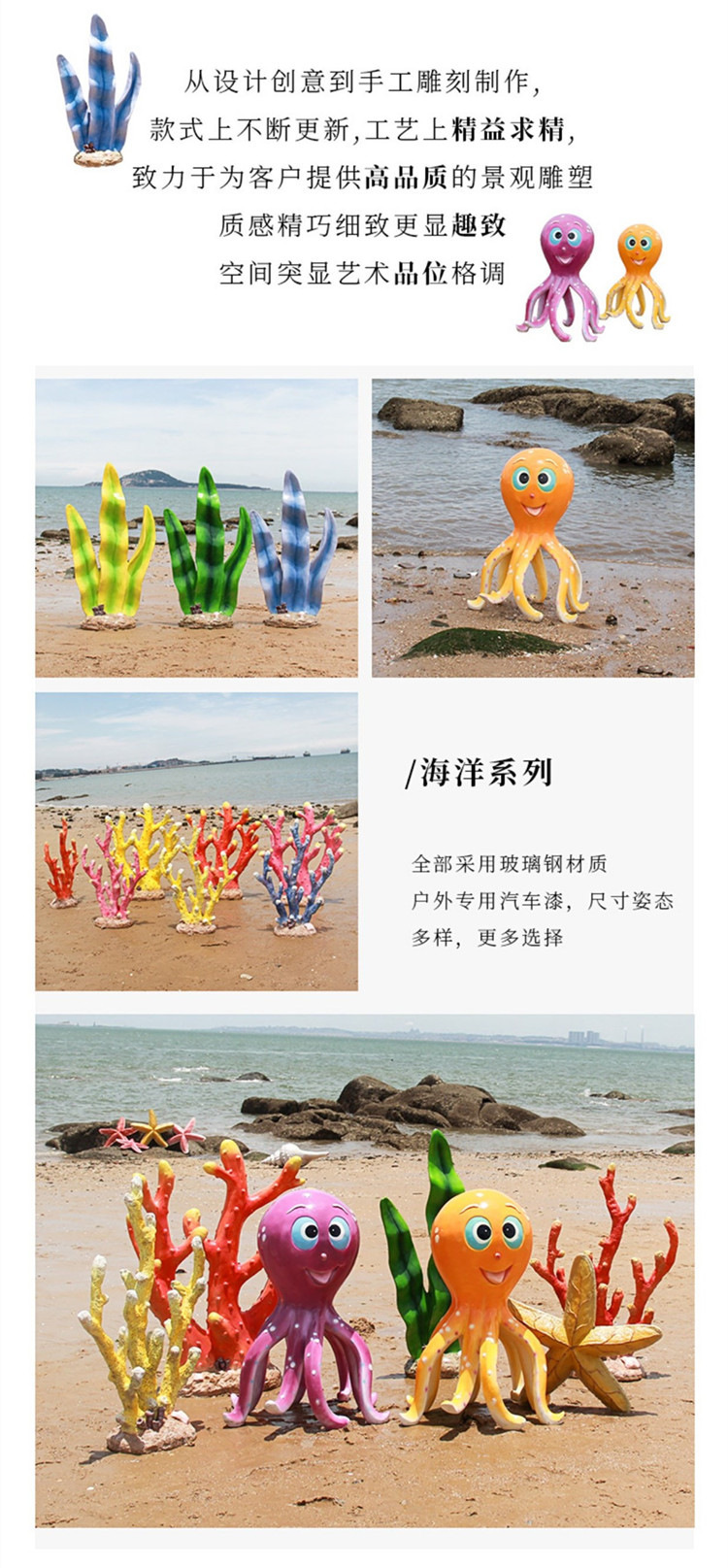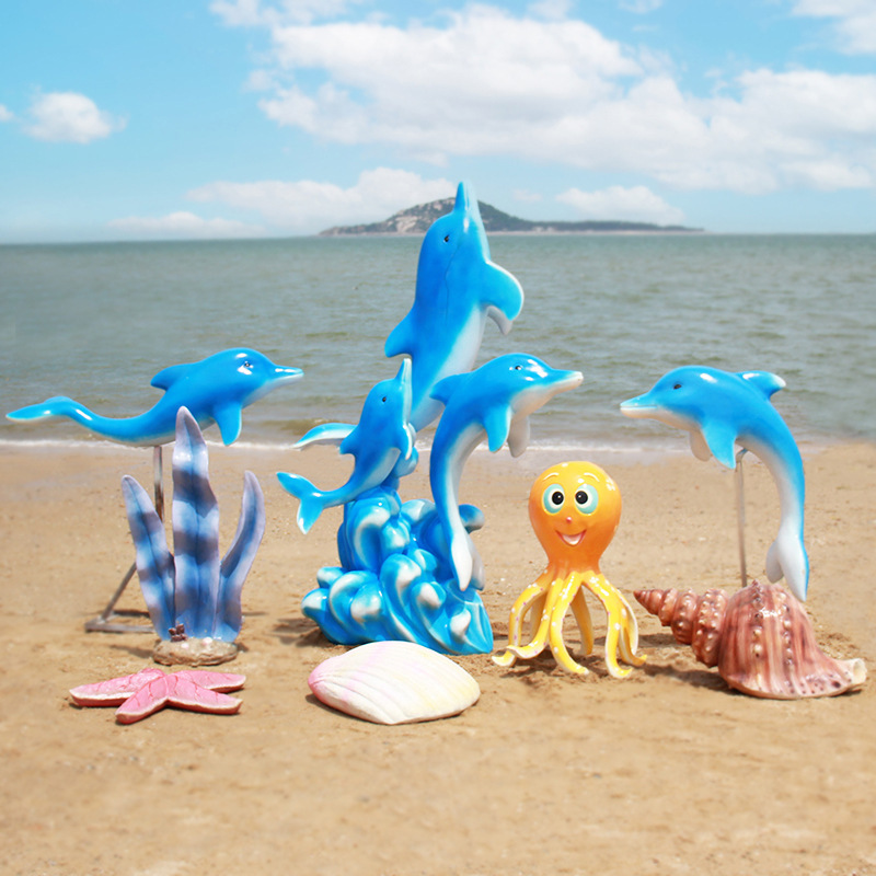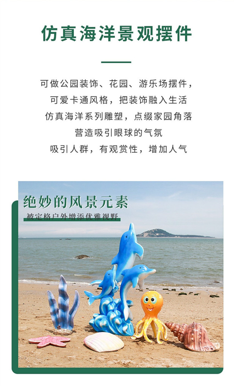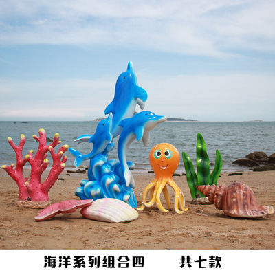 仿真海洋生物海草章鱼海星海螺海豚沙滩公园景区玻璃钢雕塑大摆件