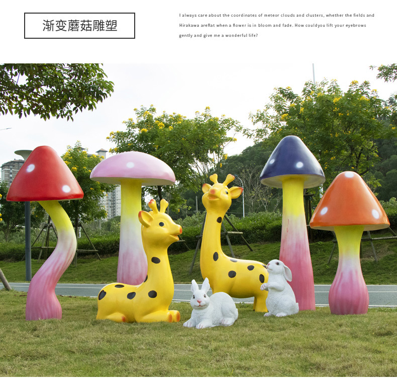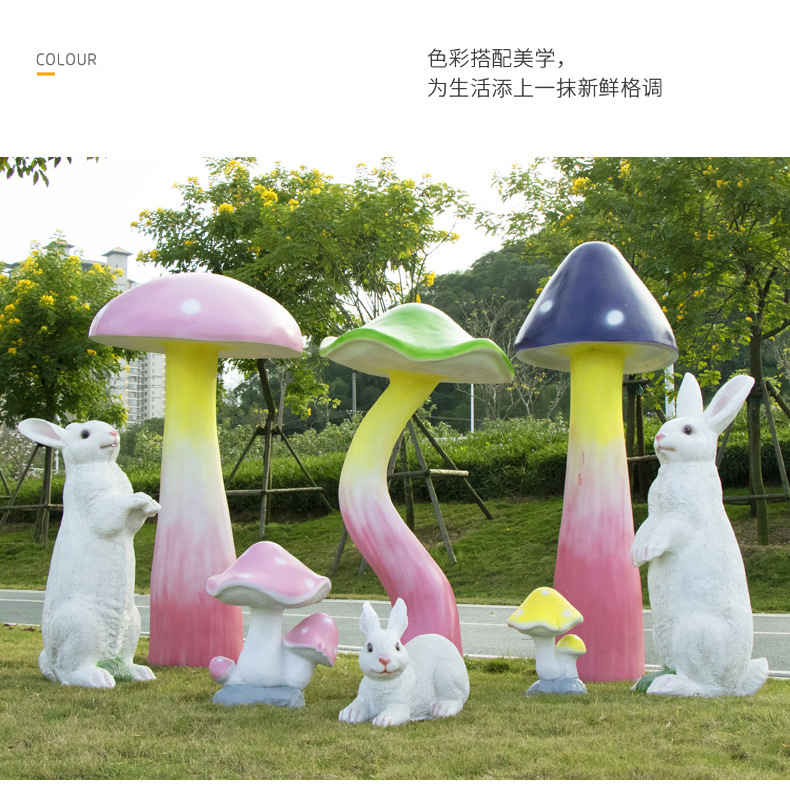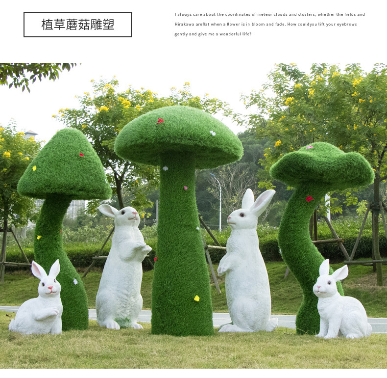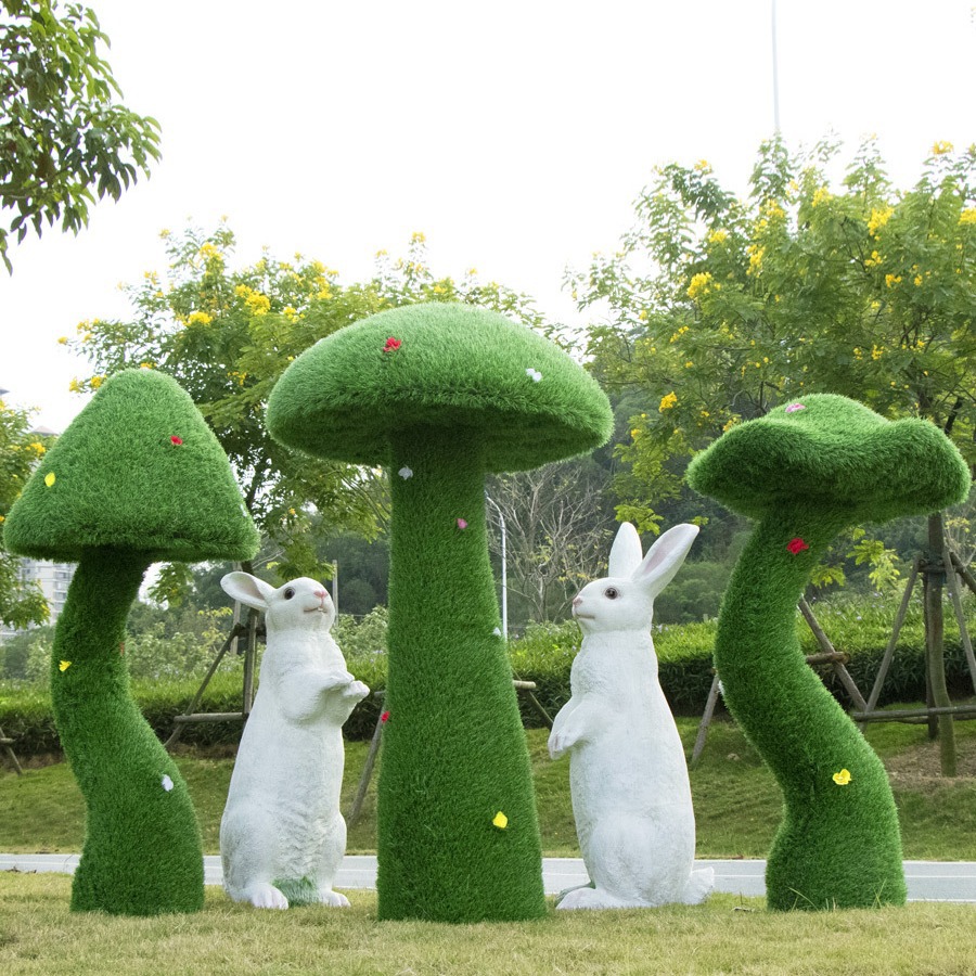 公园林仿真蘑菇雕塑花园装饰庭院兔子摆件草坪玻璃钢动物造景小品