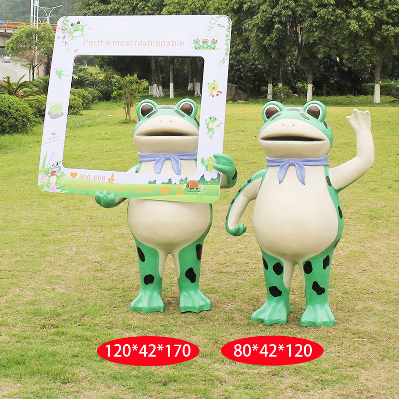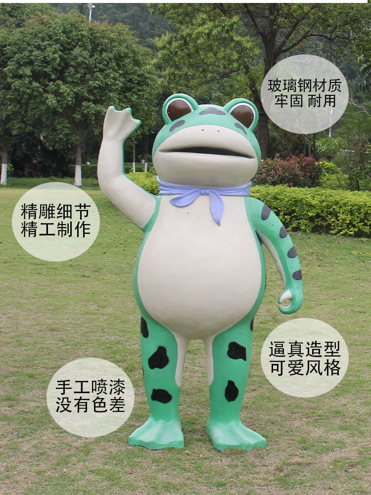 户外卡通青蛙雕塑玻璃钢仿真动物青蛙人摆件园林景观幼儿园装饰品