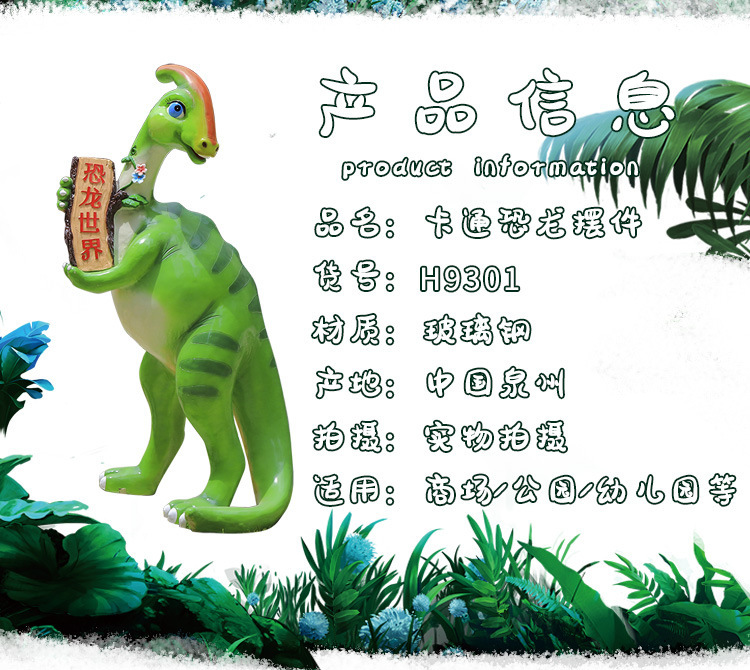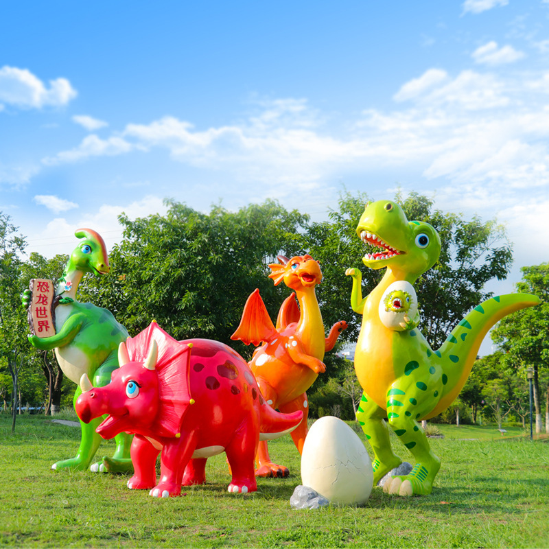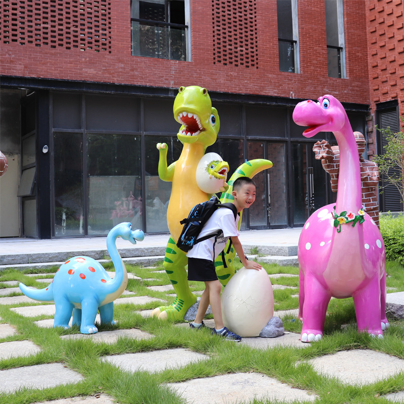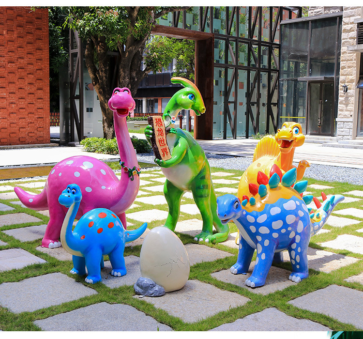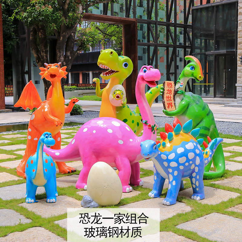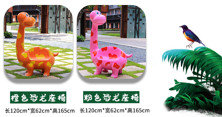 户外玻璃钢卡通大恐龙雕塑商场幼儿园游乐场动物模型座椅打卡摆件