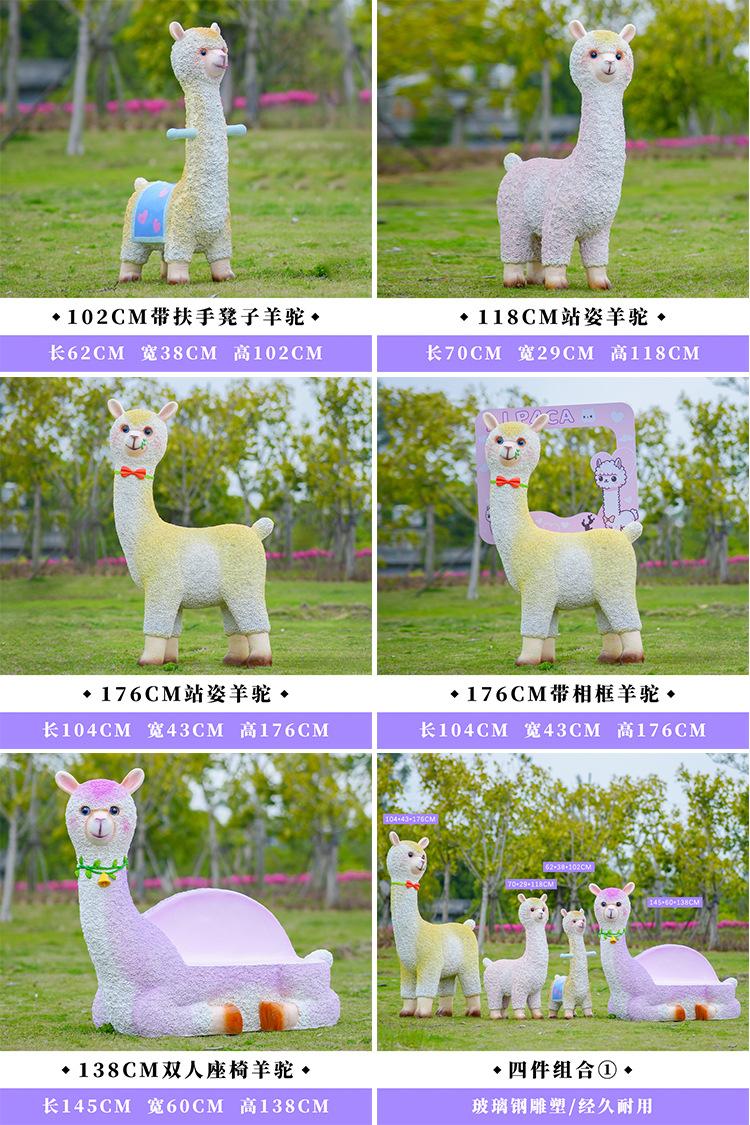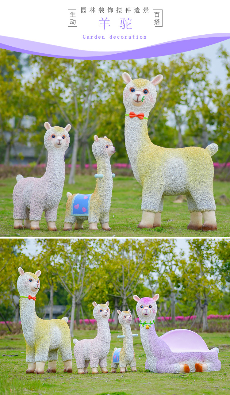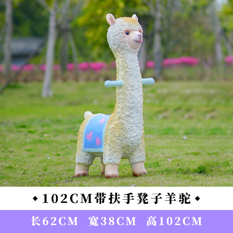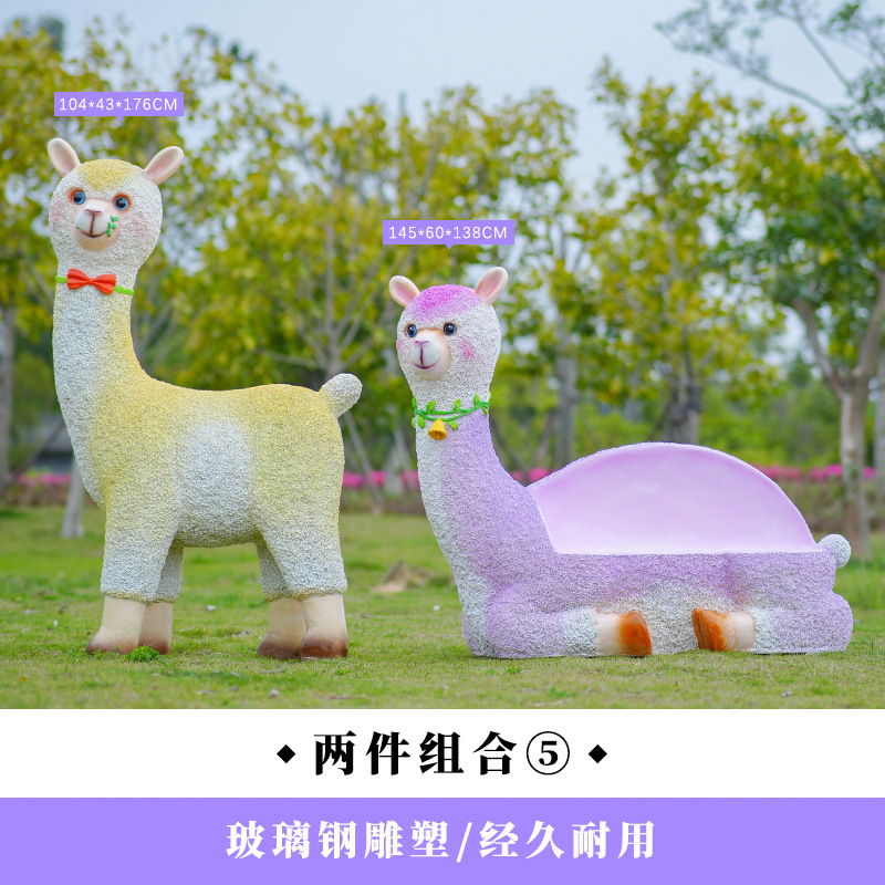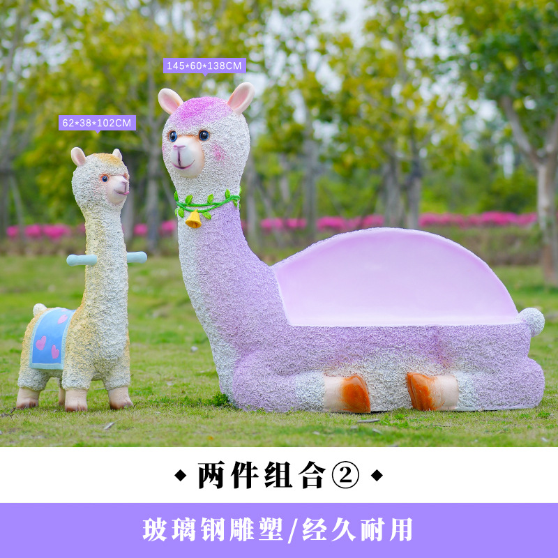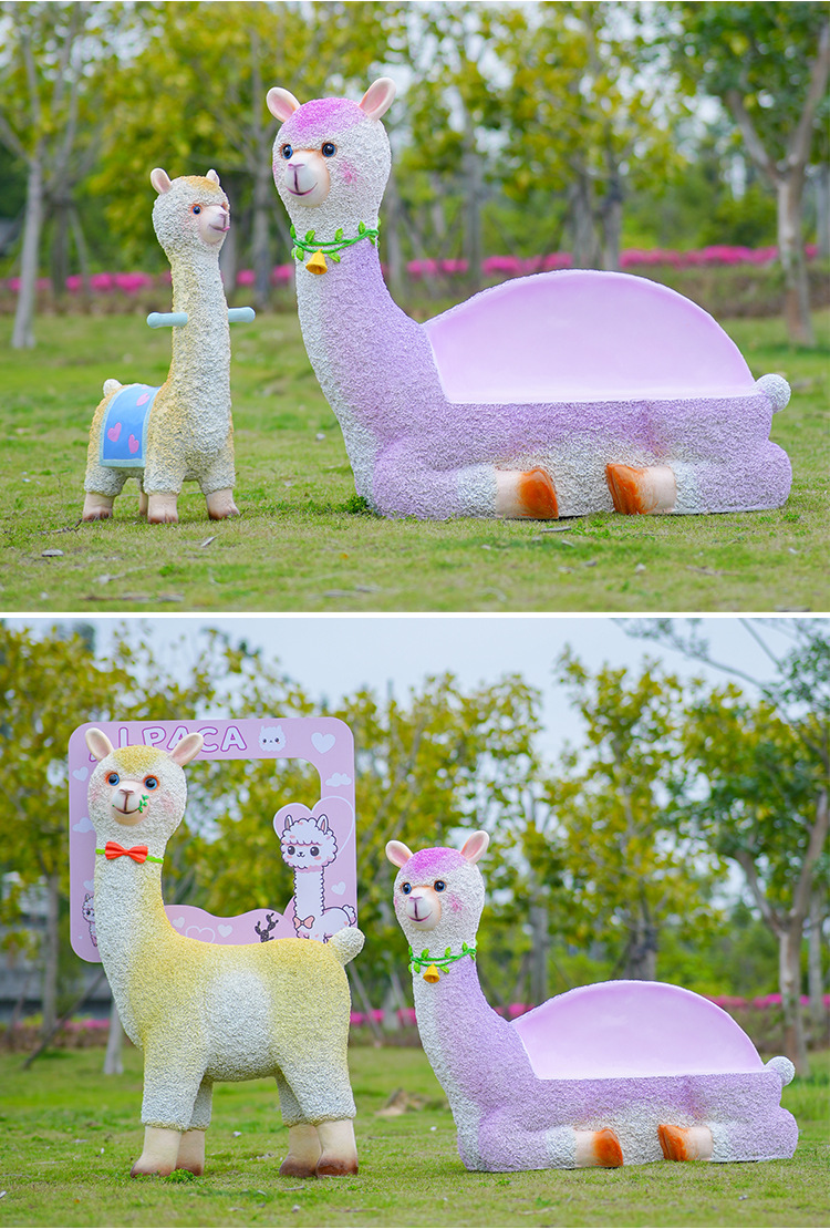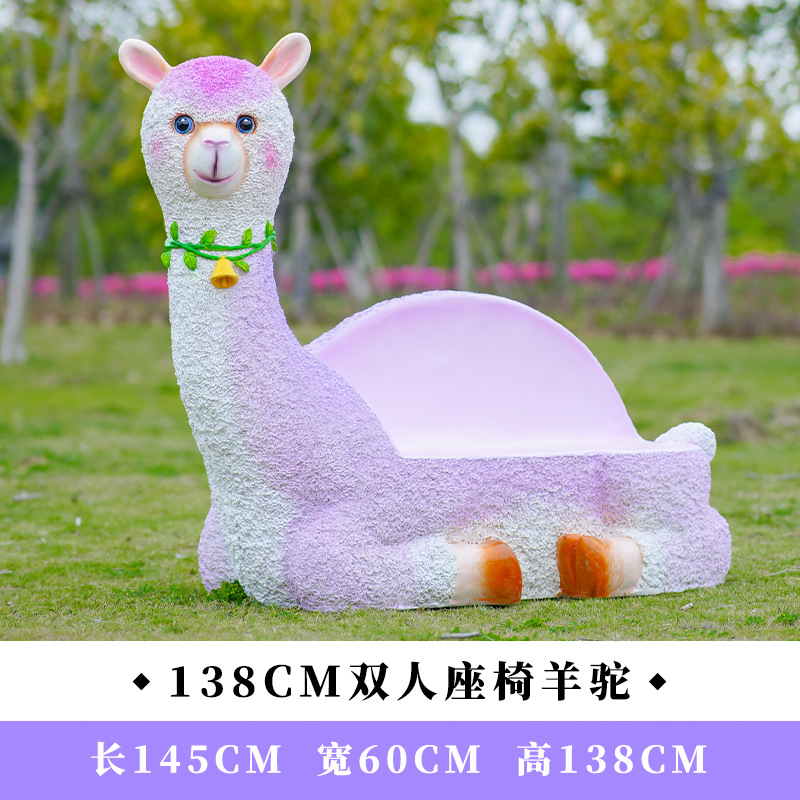 仿真卡通羊驼动物雕塑玻璃钢草泥马小区公园幼儿园坐凳售楼部摆件