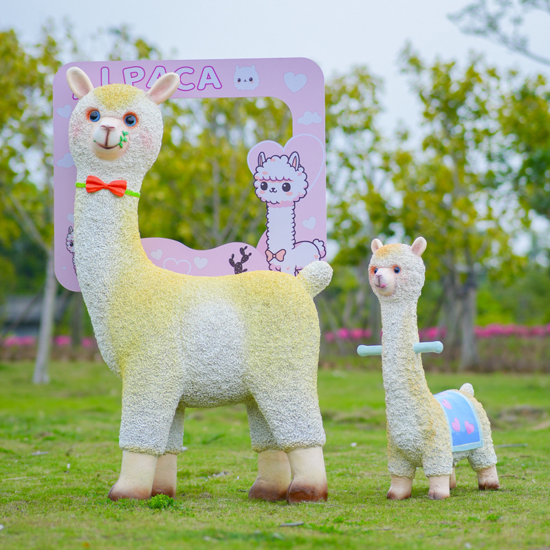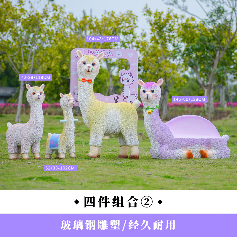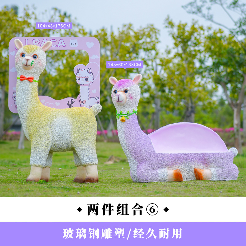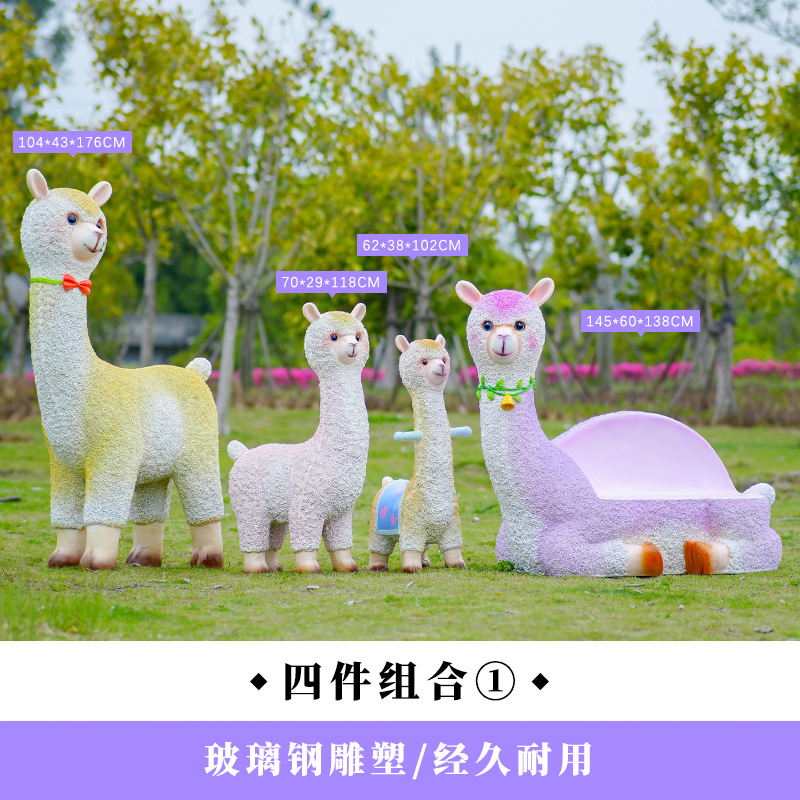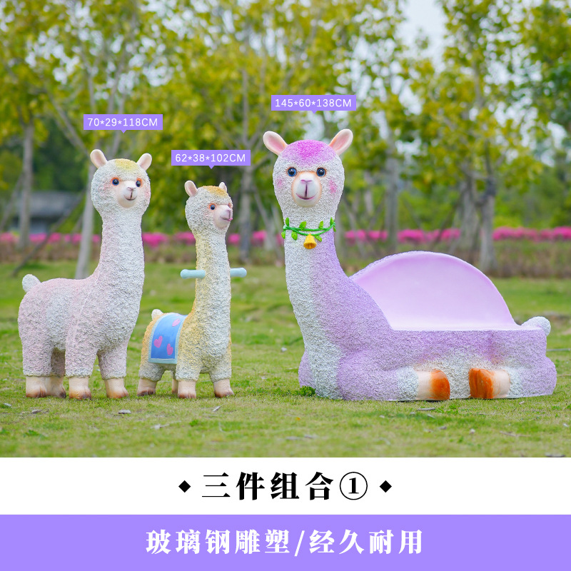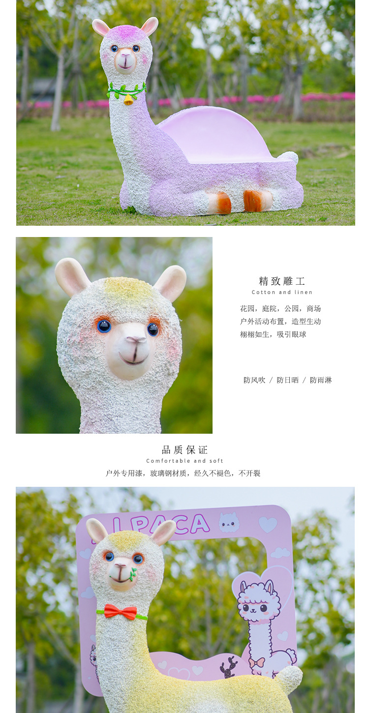 仿真卡通羊驼动物雕塑玻璃钢草泥马小区公园幼儿园坐凳售楼部摆件