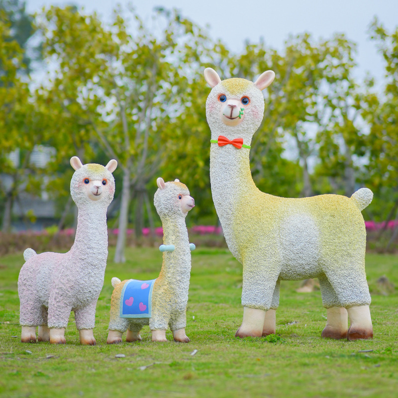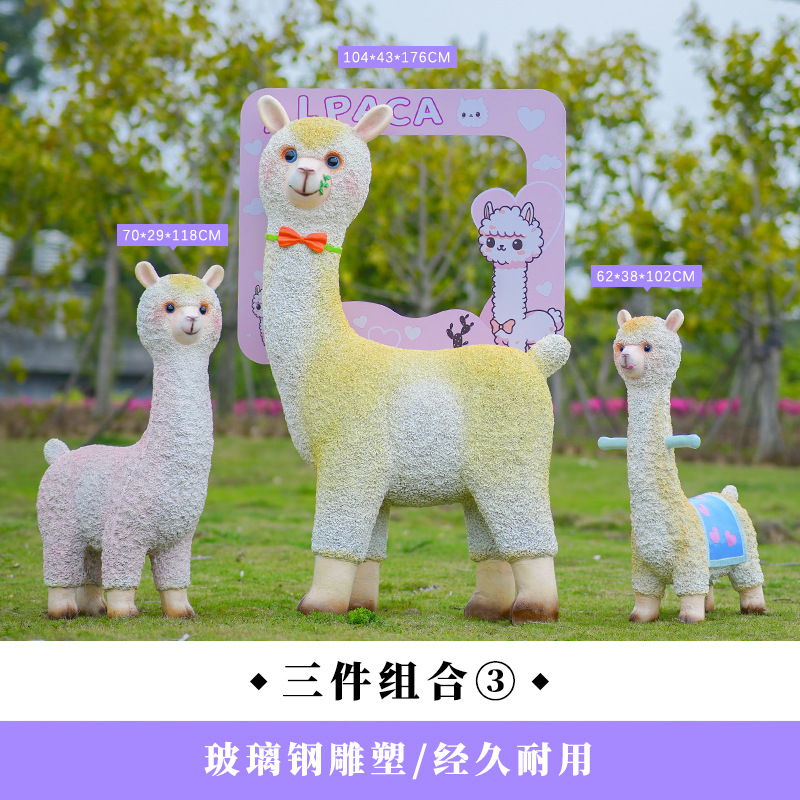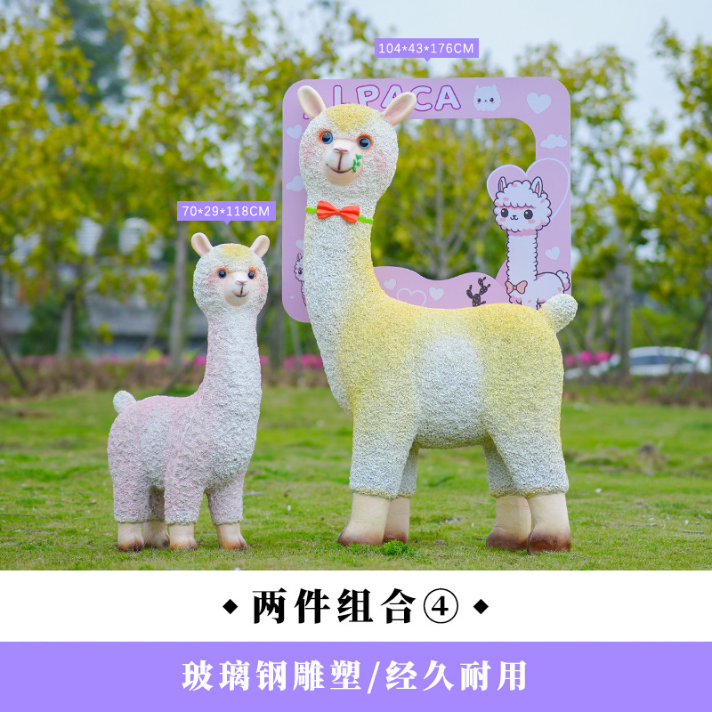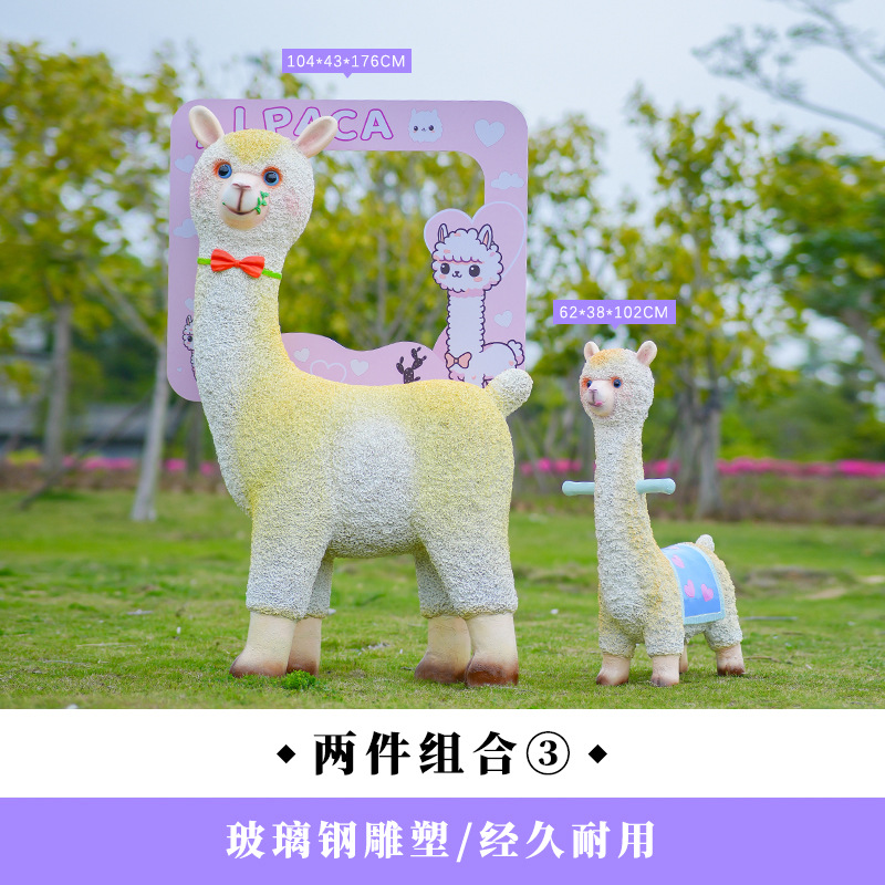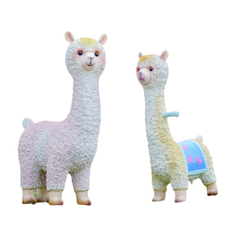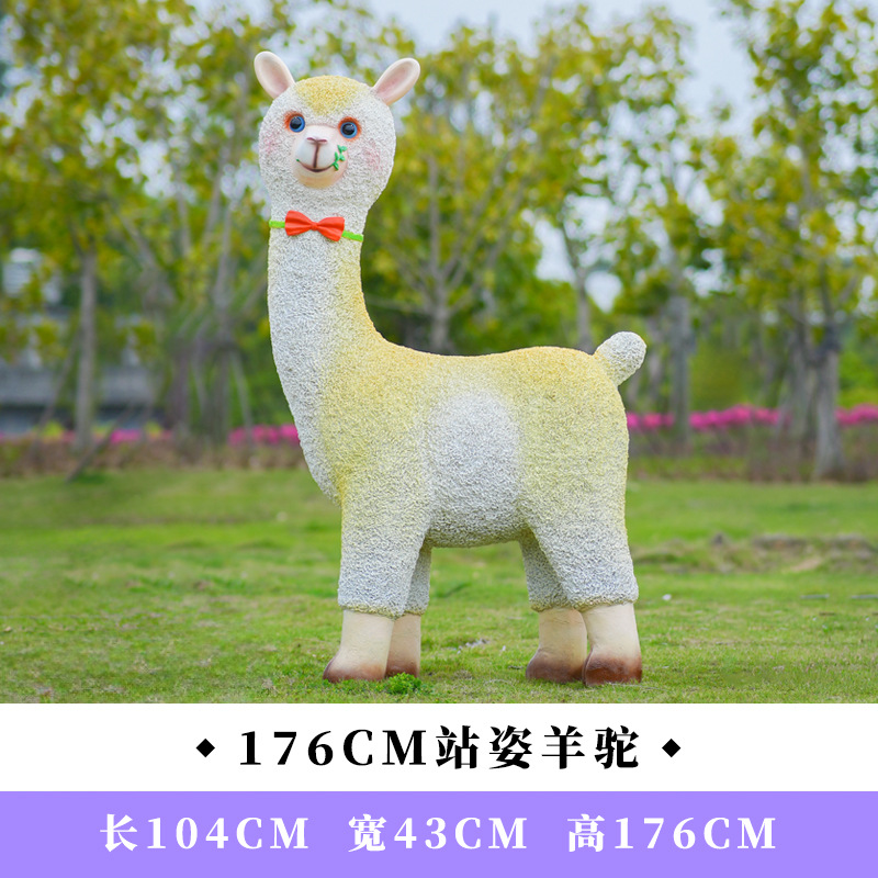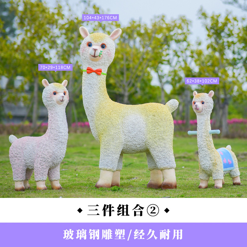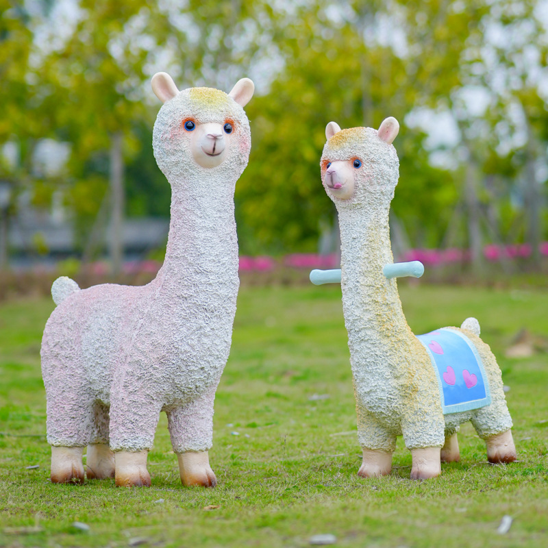 仿真卡通羊驼动物雕塑玻璃钢草泥马小区公园幼儿园坐凳售楼部摆件