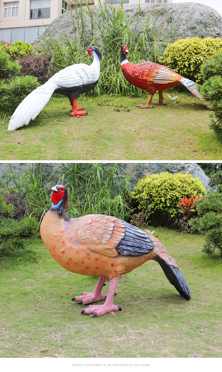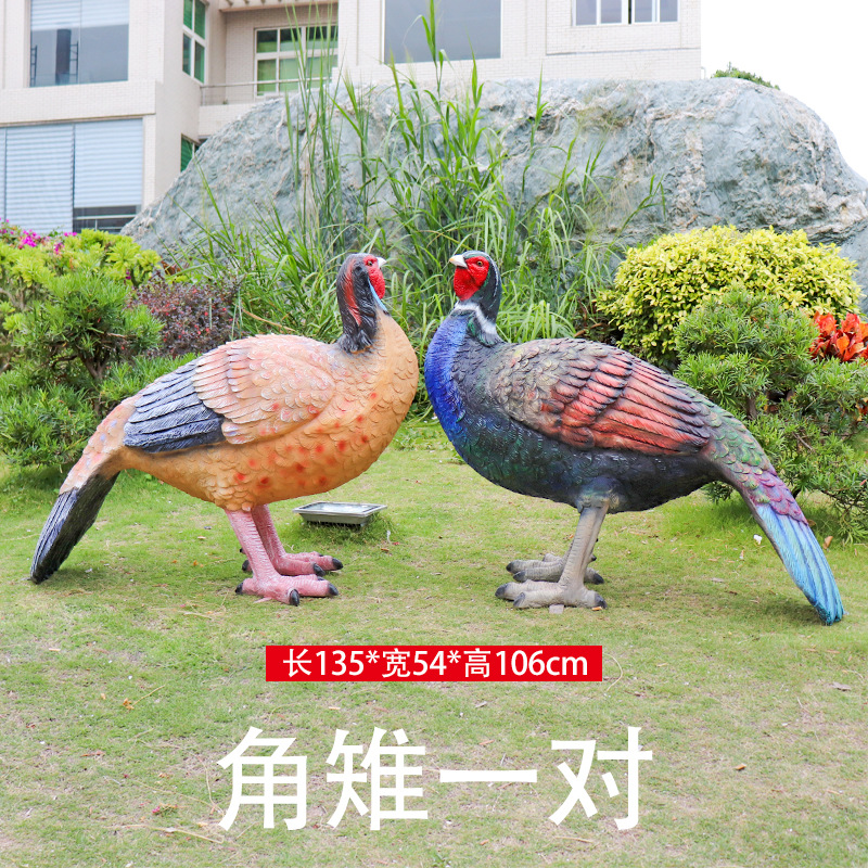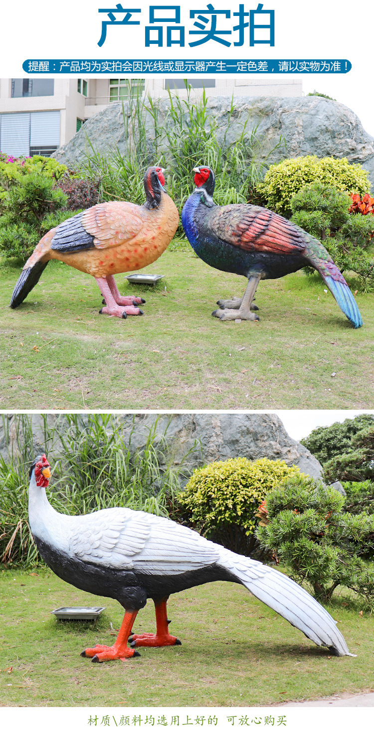户外仿真山鸡雕塑园林景观小品花园庭院动物园玻璃钢野鸡白鹇摆件
