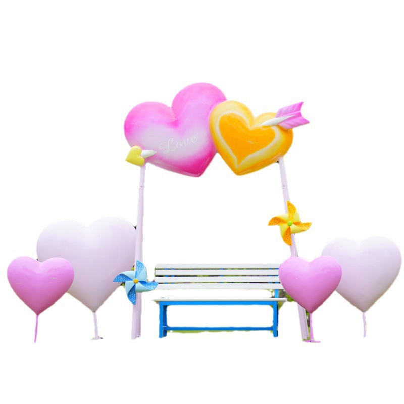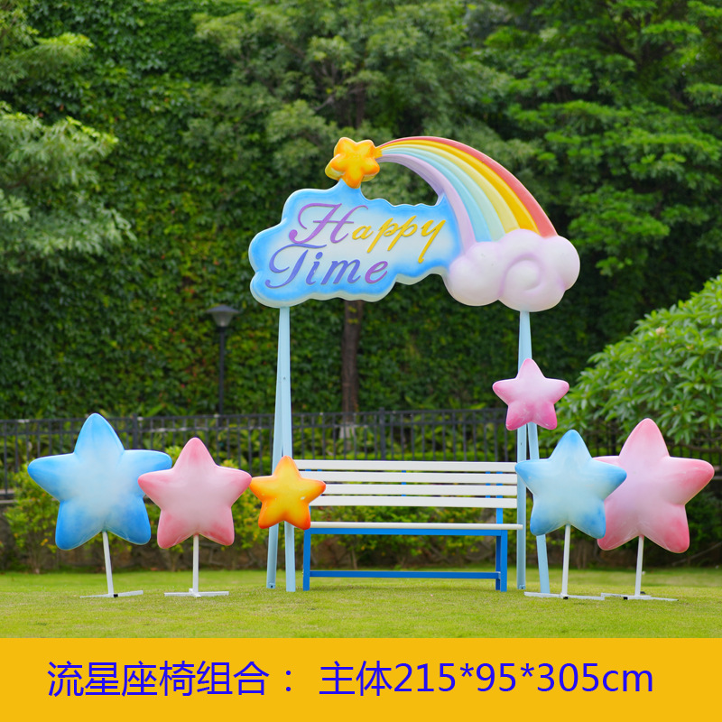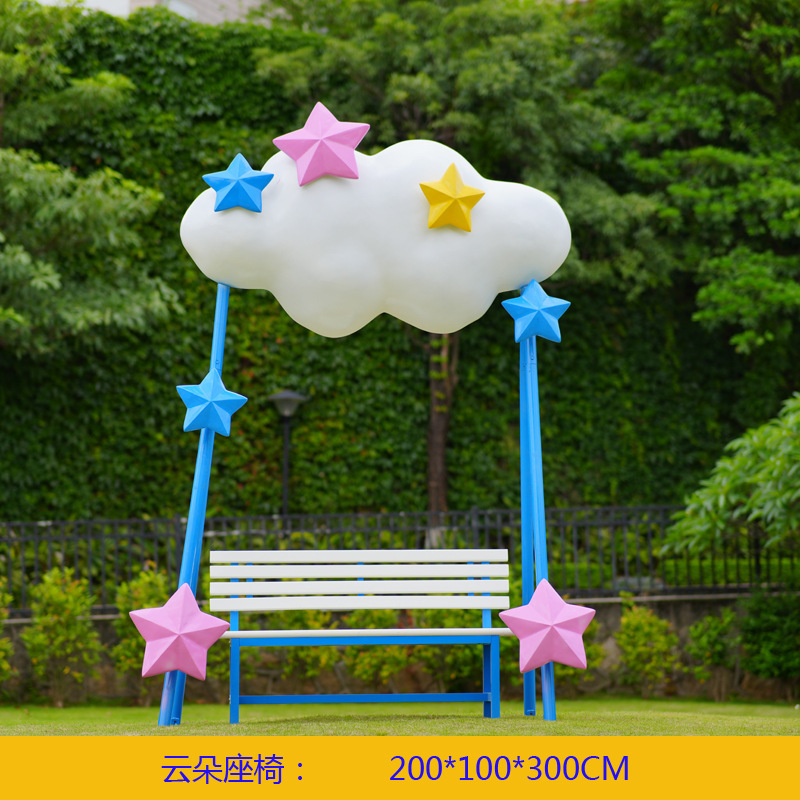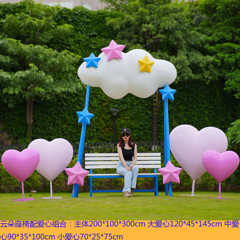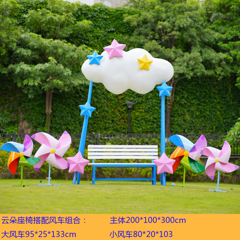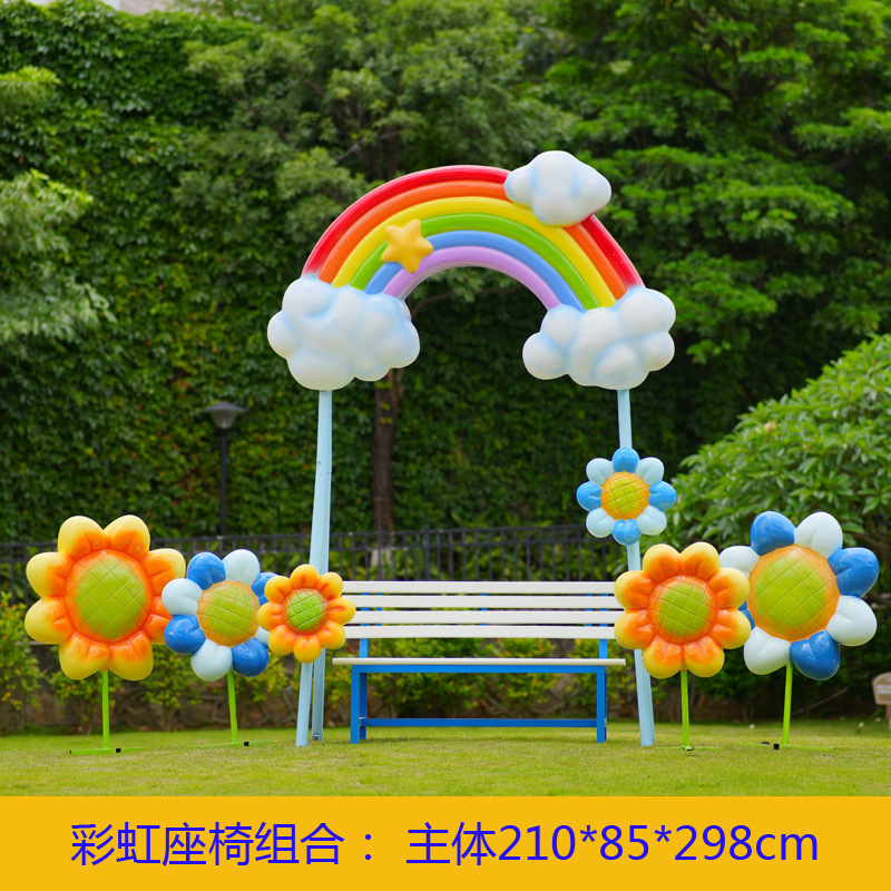 秋千座椅户外玻璃钢拍照打卡雕塑彩虹云朵风车向日葵爱心装饰摆件