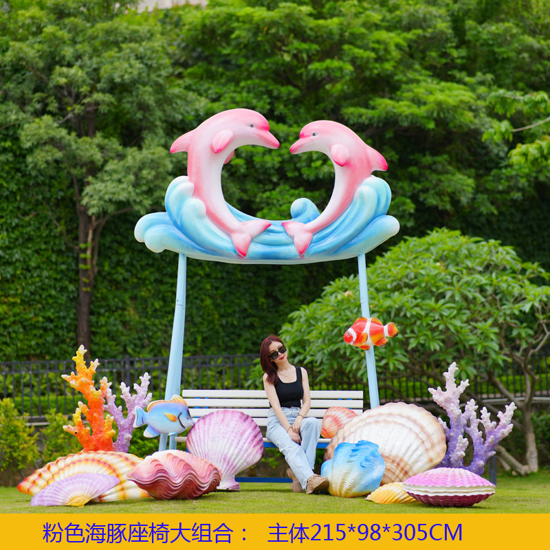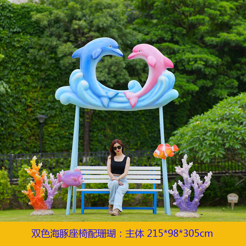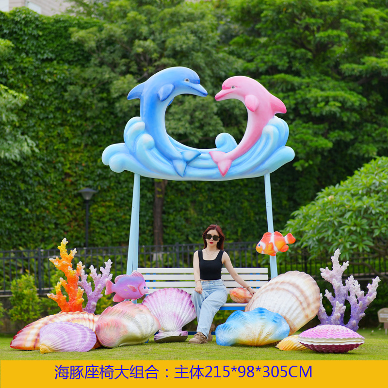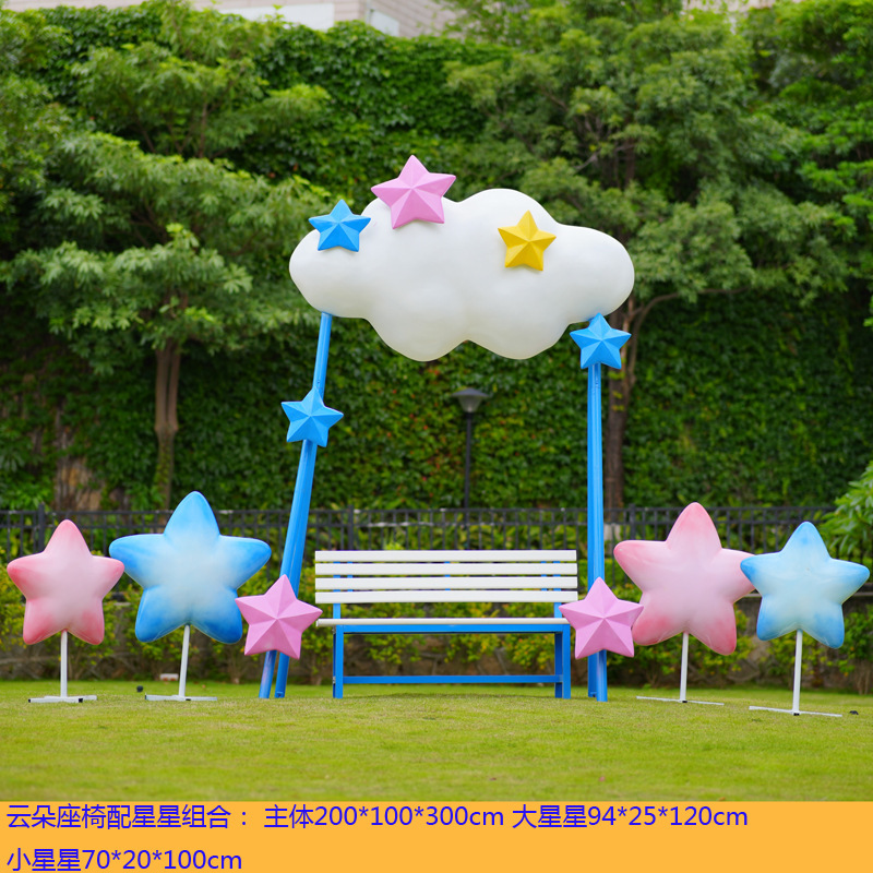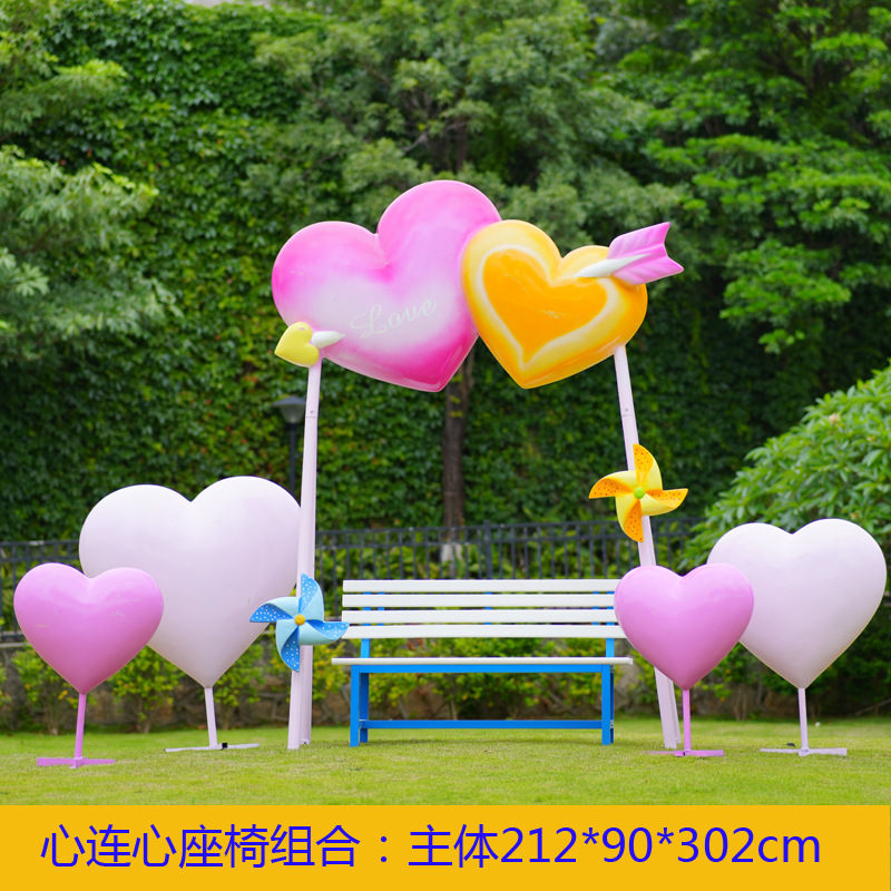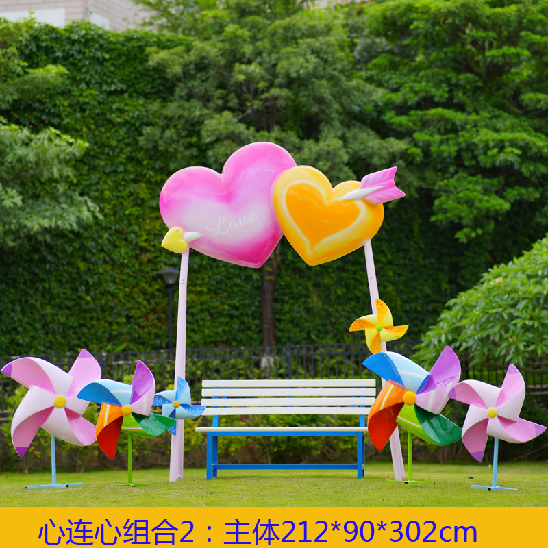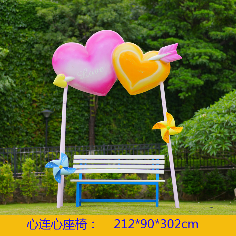 秋千座椅户外玻璃钢拍照打卡雕塑彩虹云朵风车向日葵爱心装饰摆件