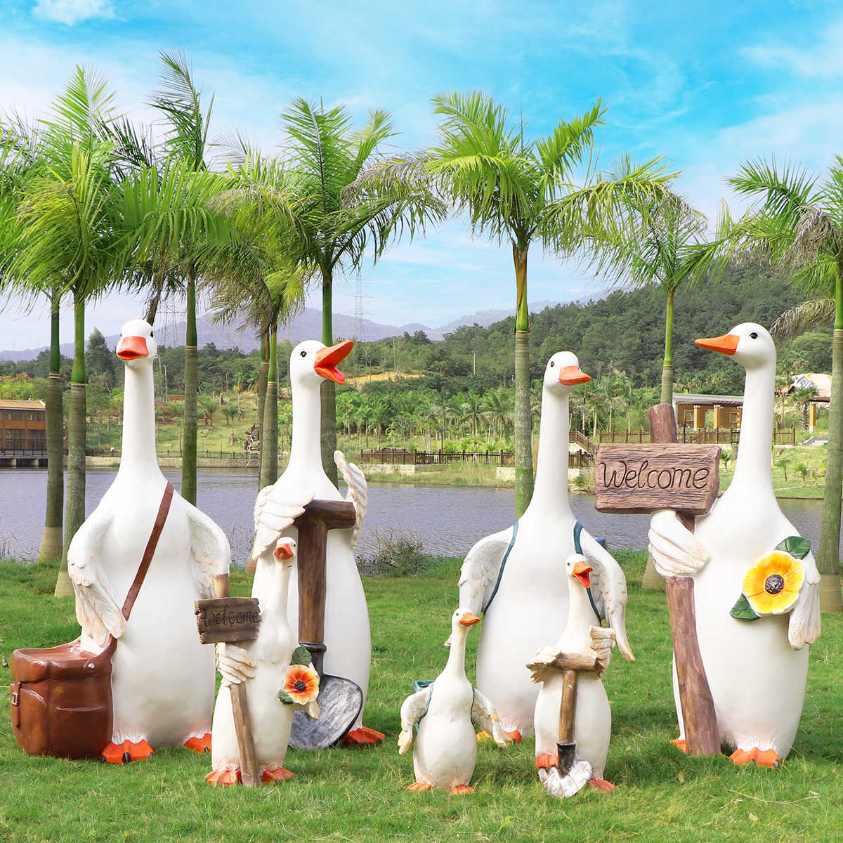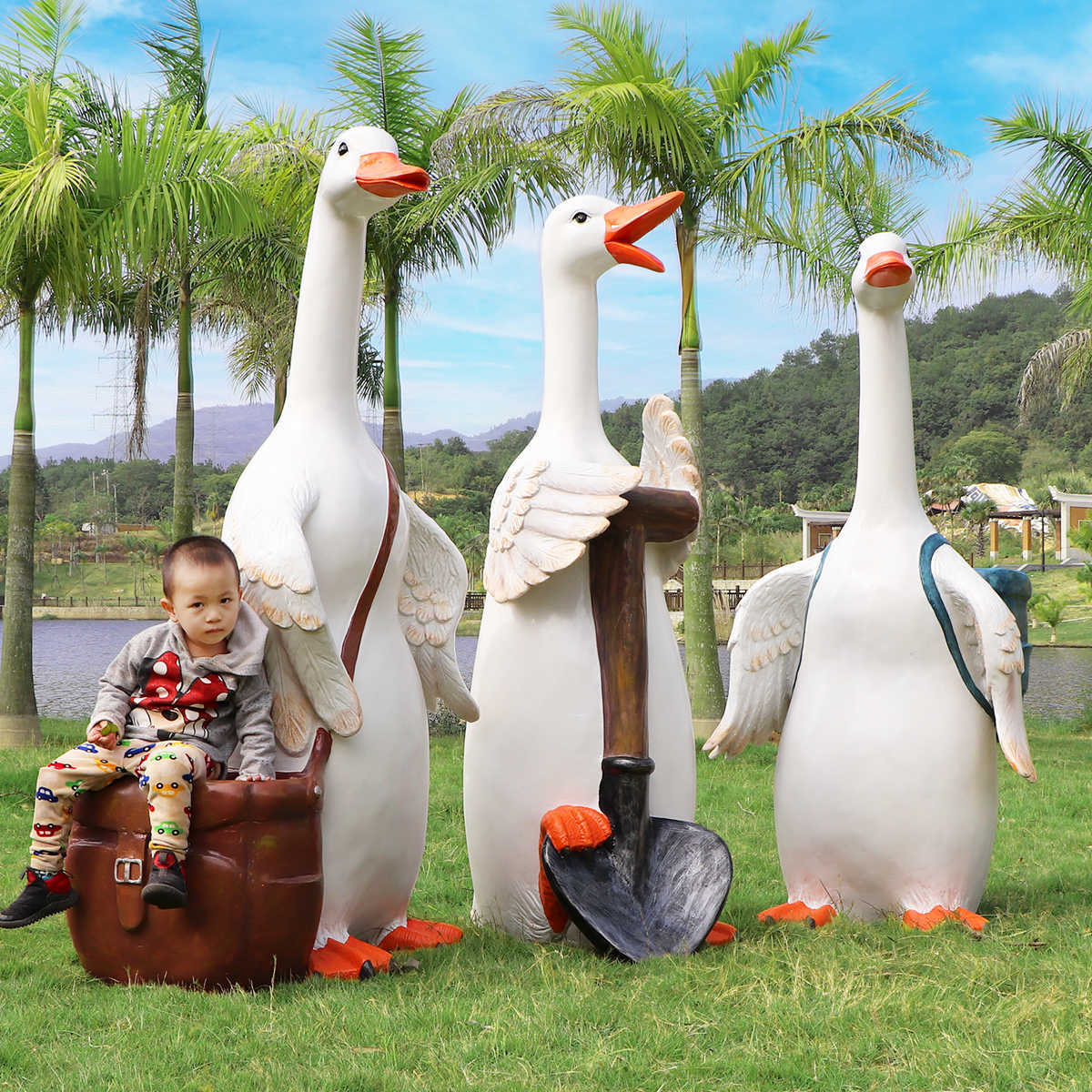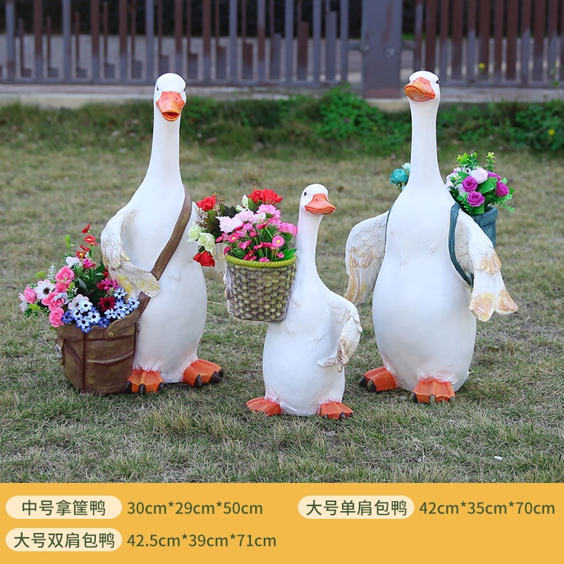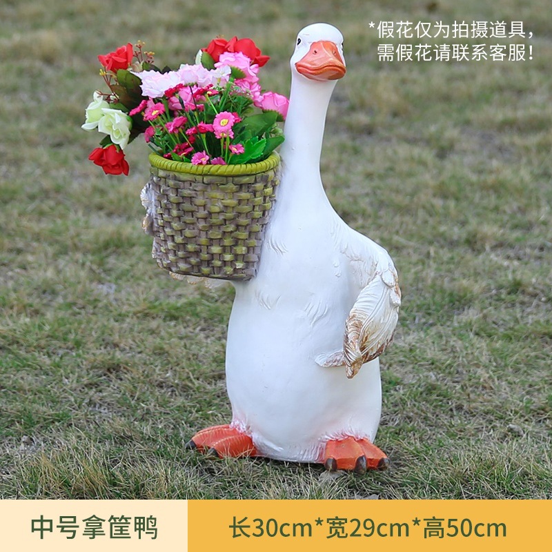 卡通鸭子雕塑创意树脂花盆花缸摆件庭院子鹅模型装饰花园别墅摆设