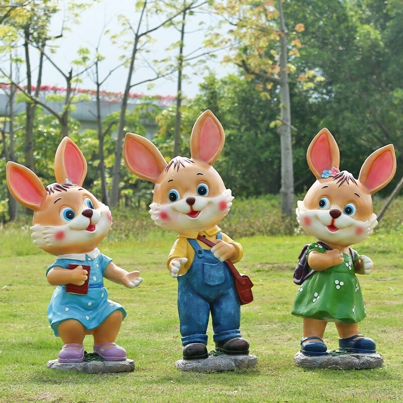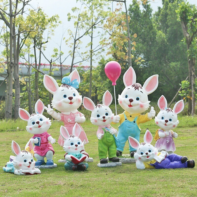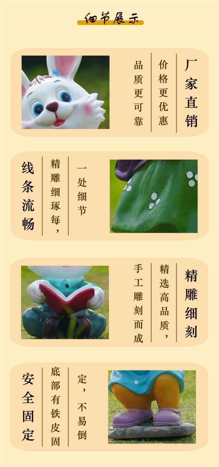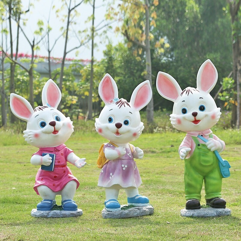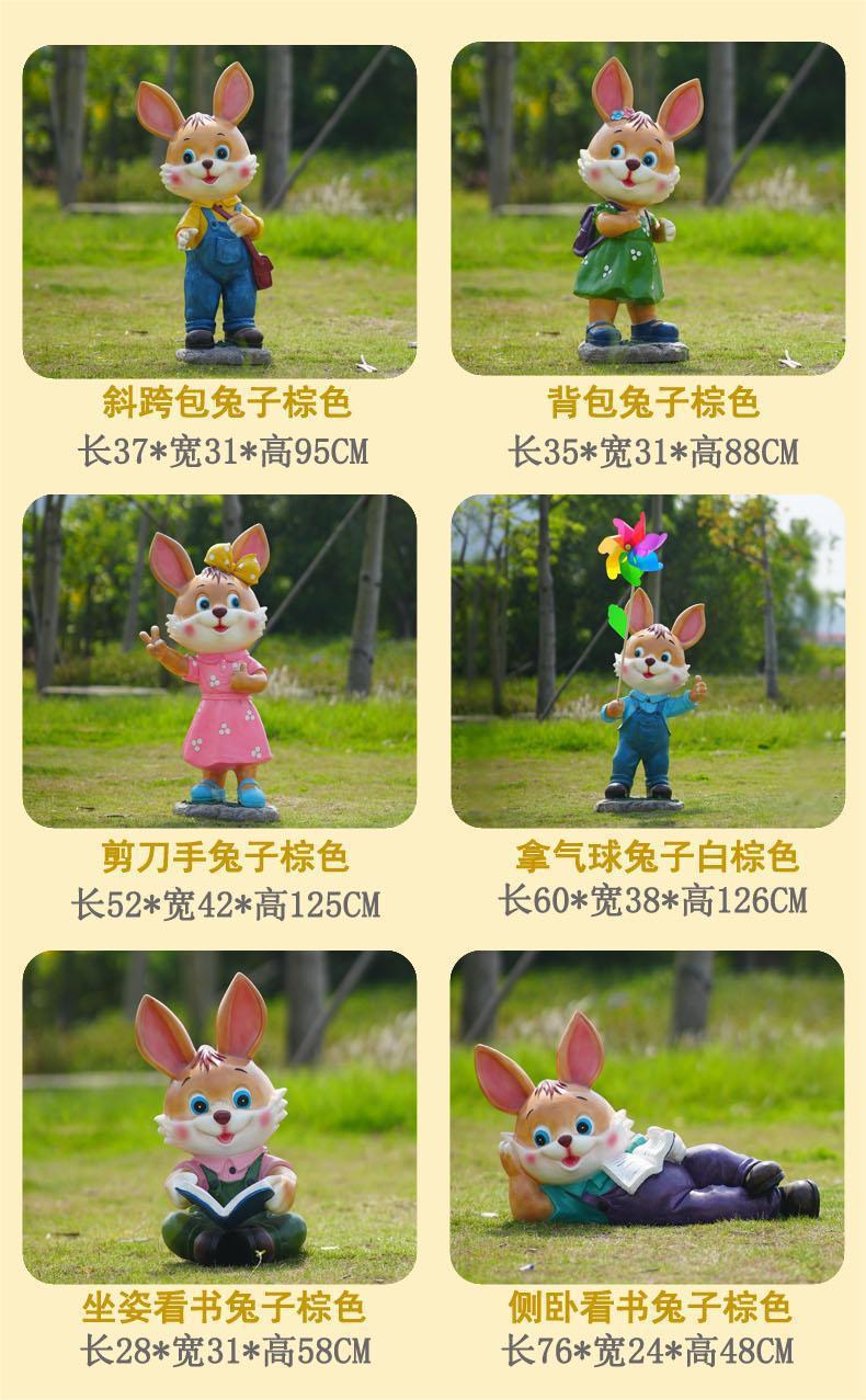 户外园林庭院卡通兔子玻璃钢雕塑公园幼儿园花园小品装饰摆件景观