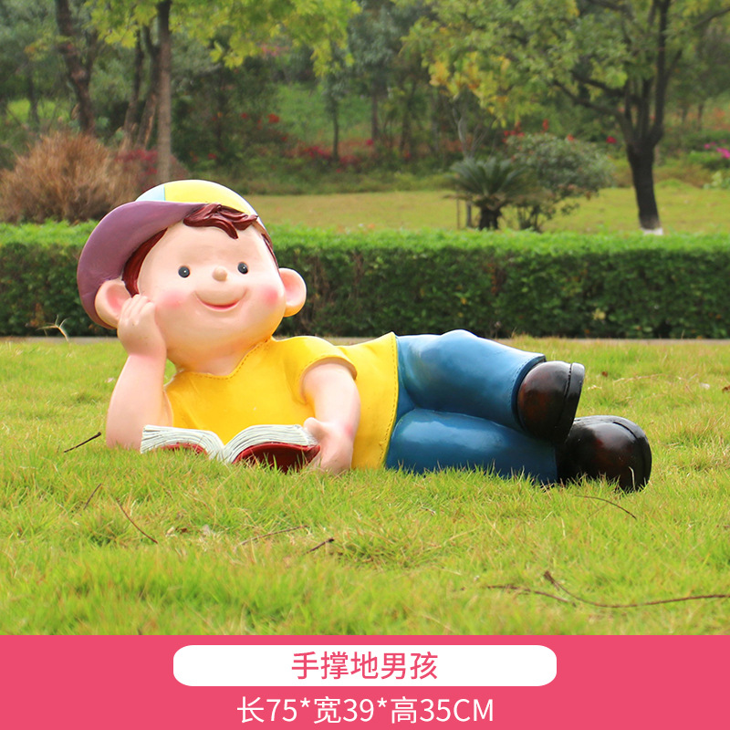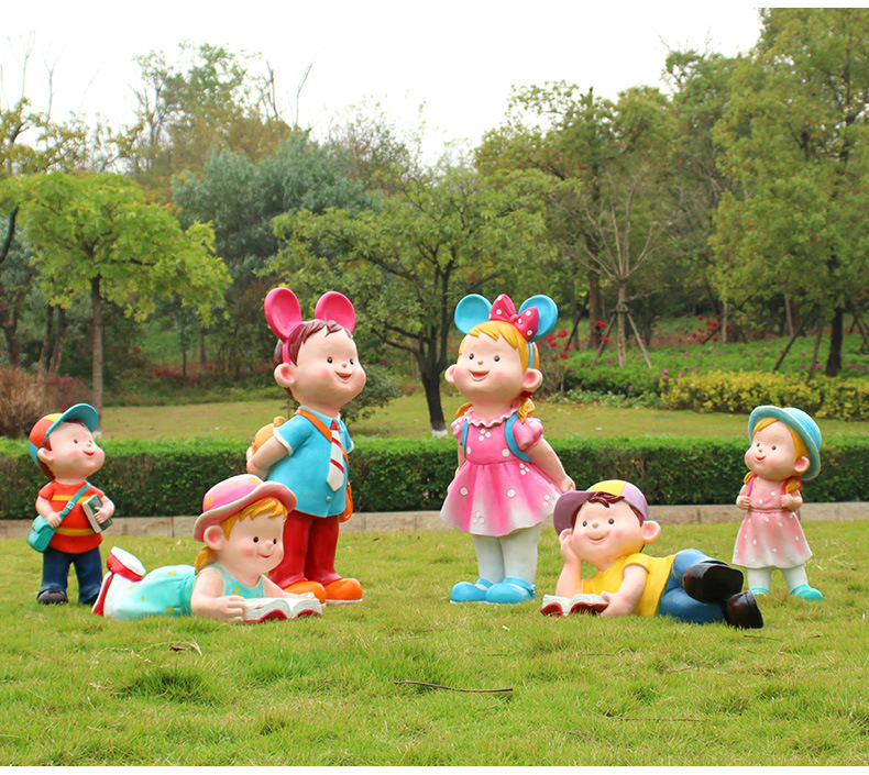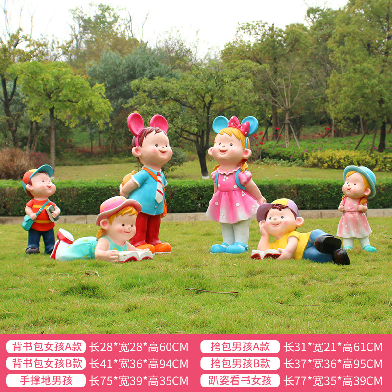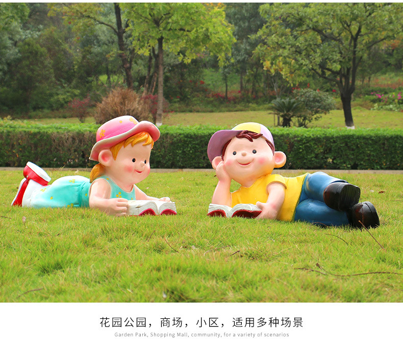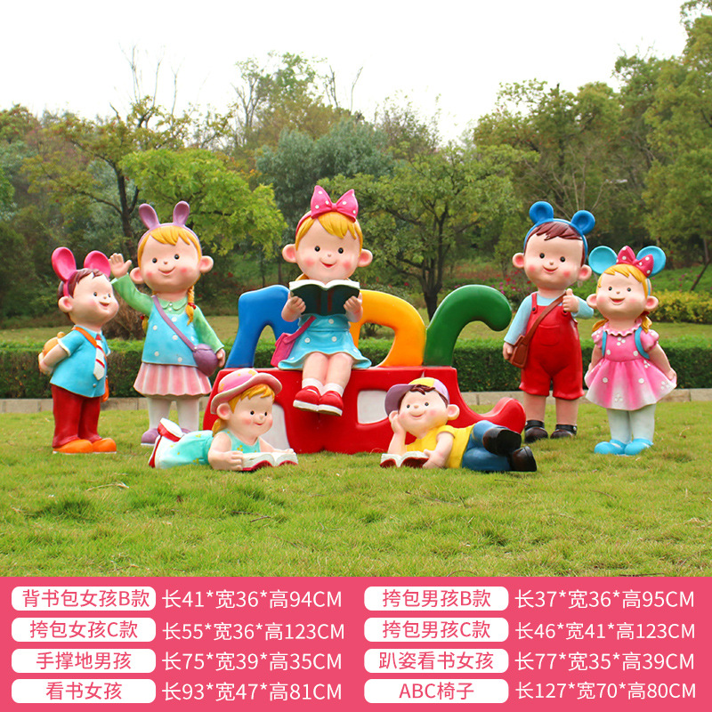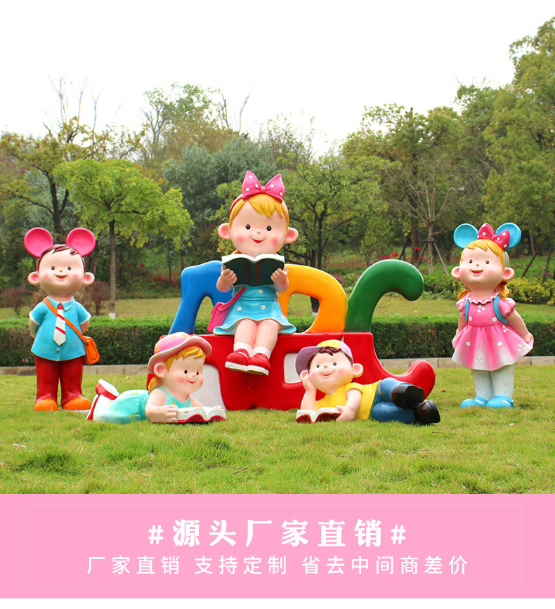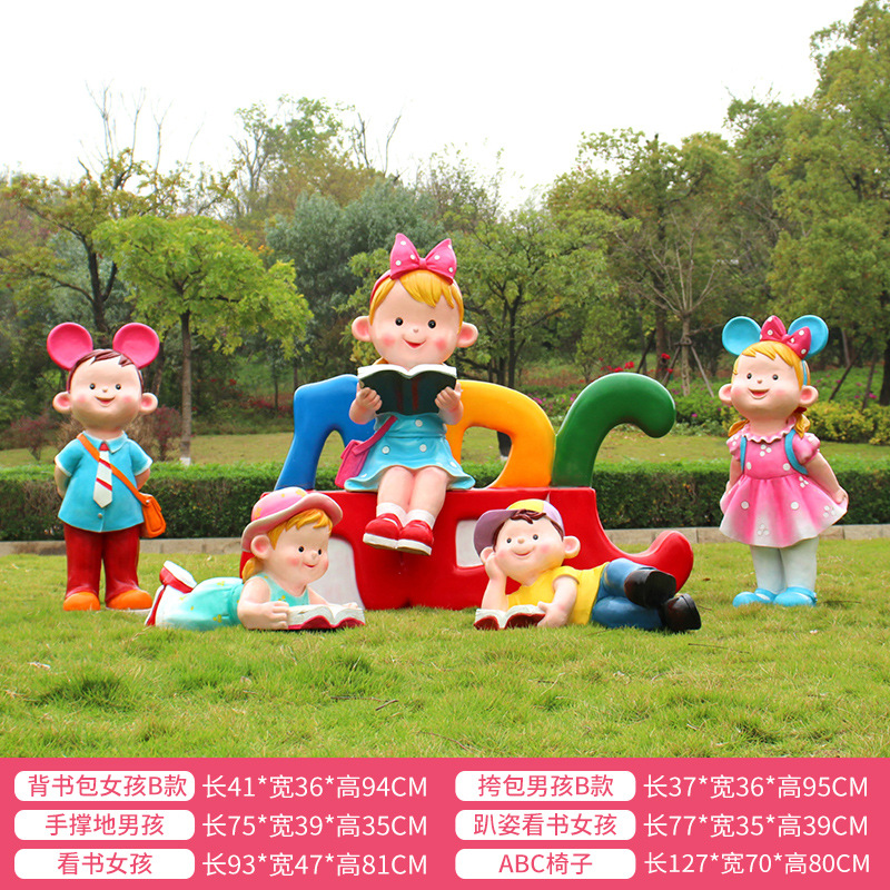 幼儿园卡通人物玻璃钢雕塑读书娃娃学校公园小区草坪户外装饰摆件
