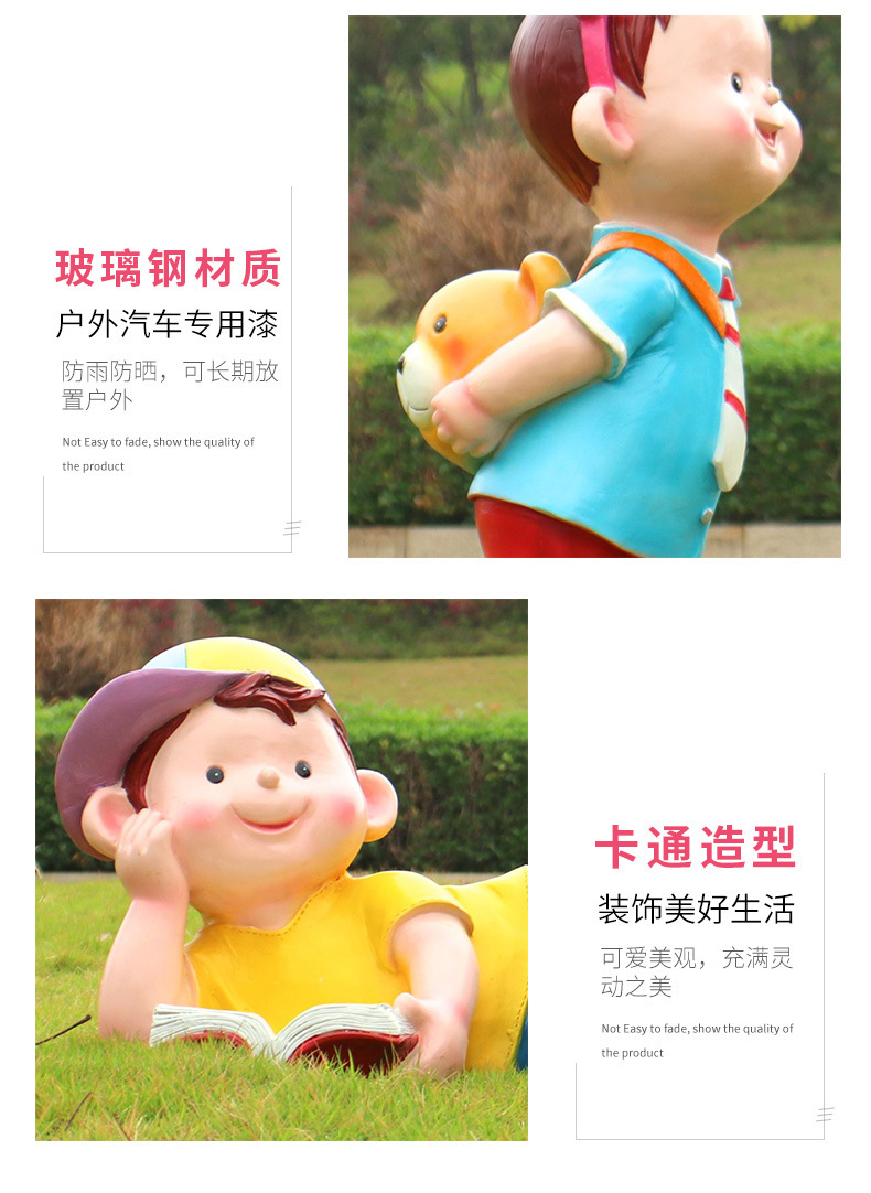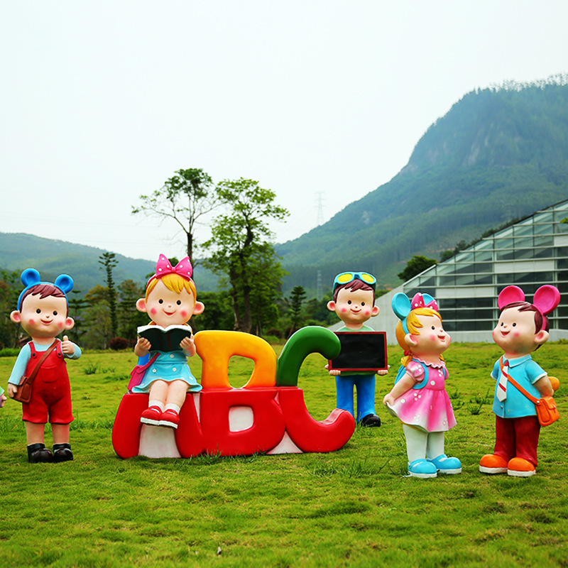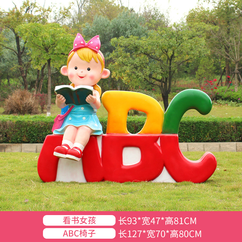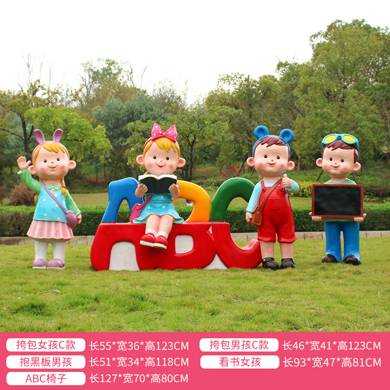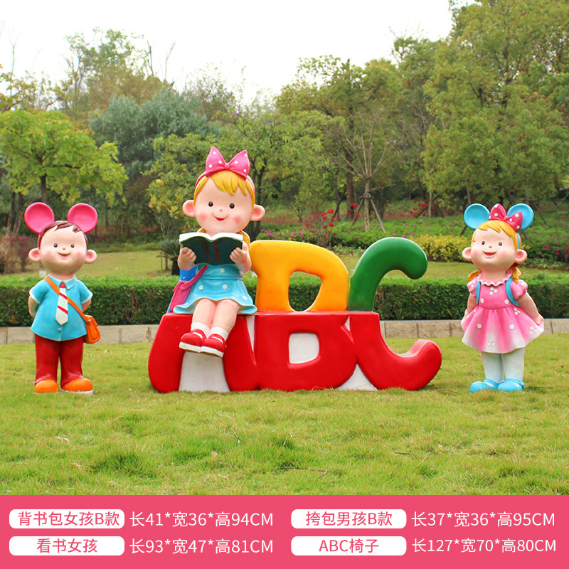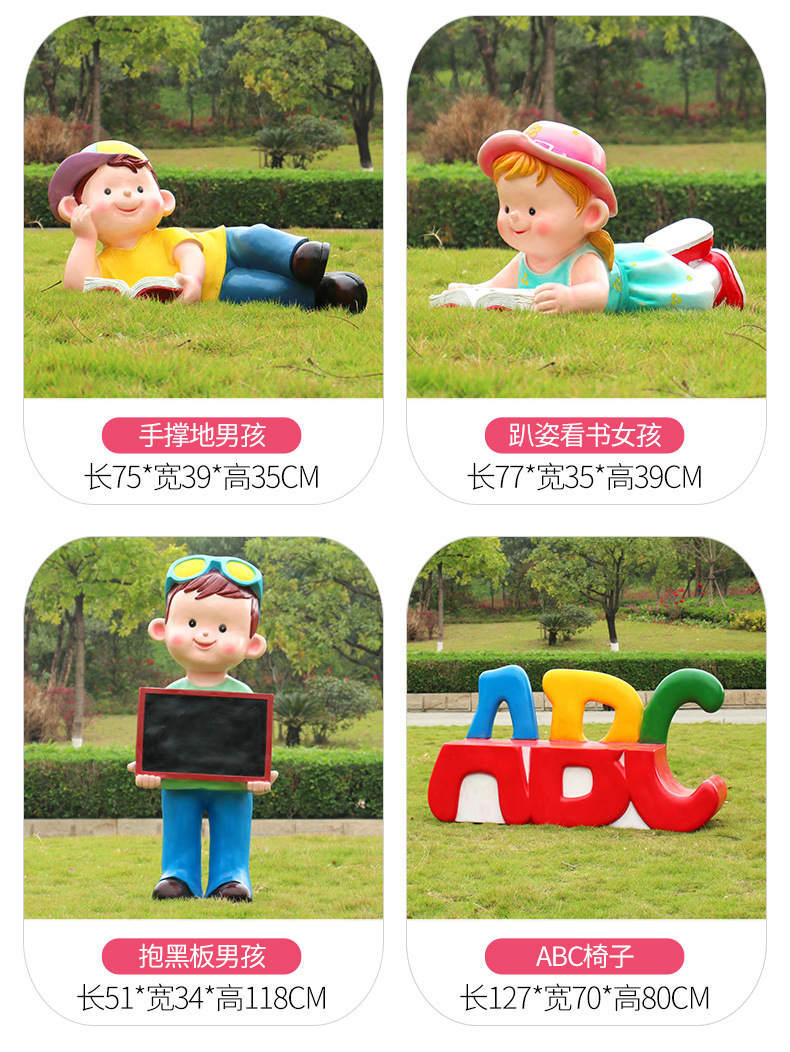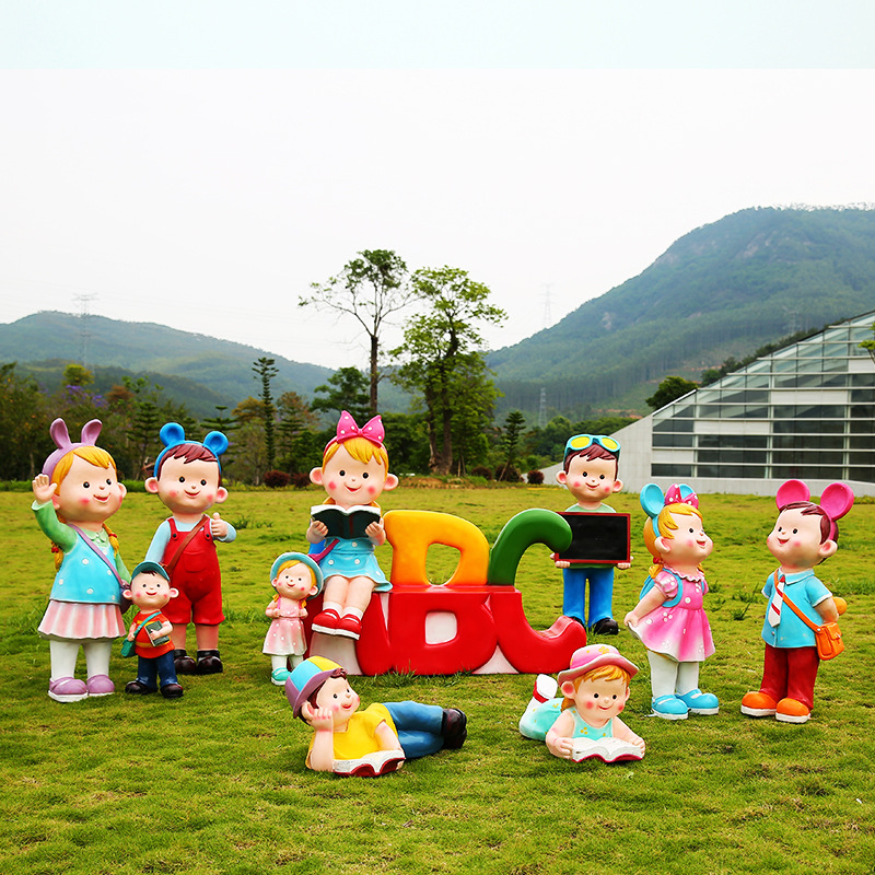 幼儿园卡通人物玻璃钢雕塑读书娃娃学校公园小区草坪户外装饰摆件