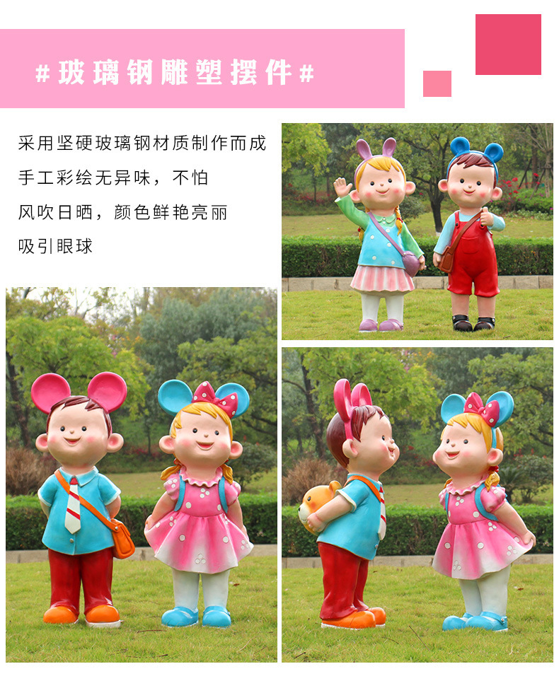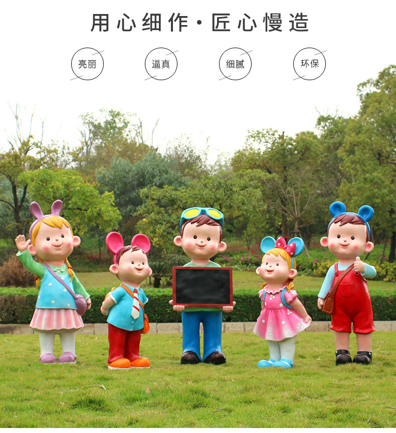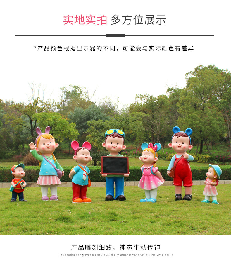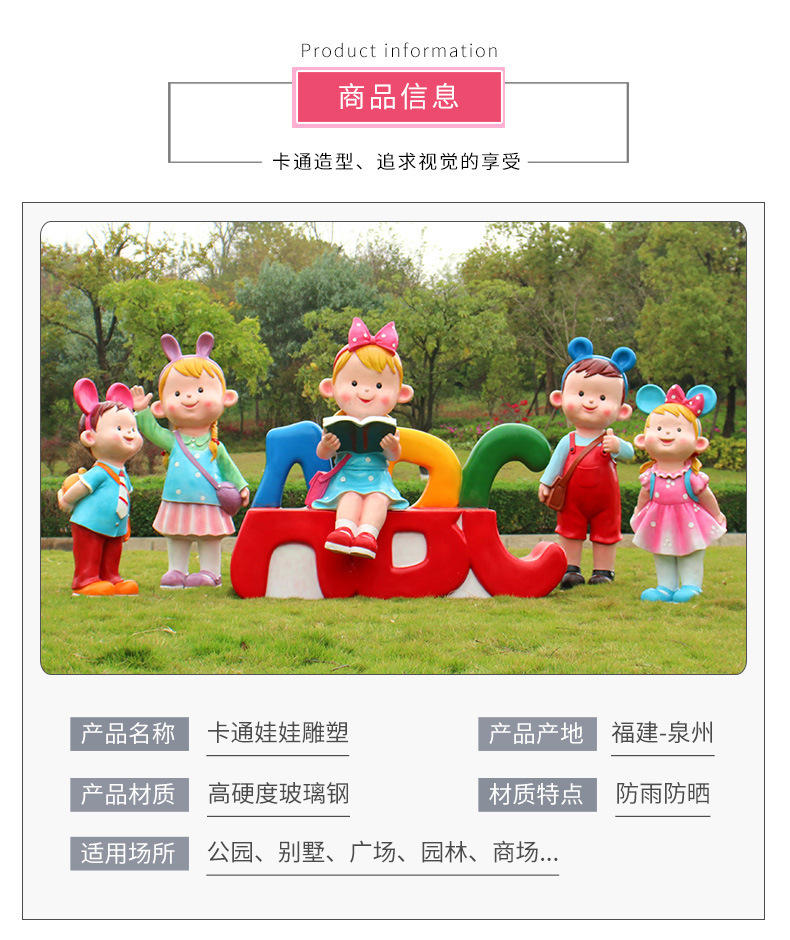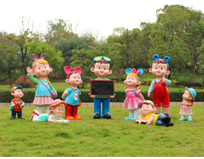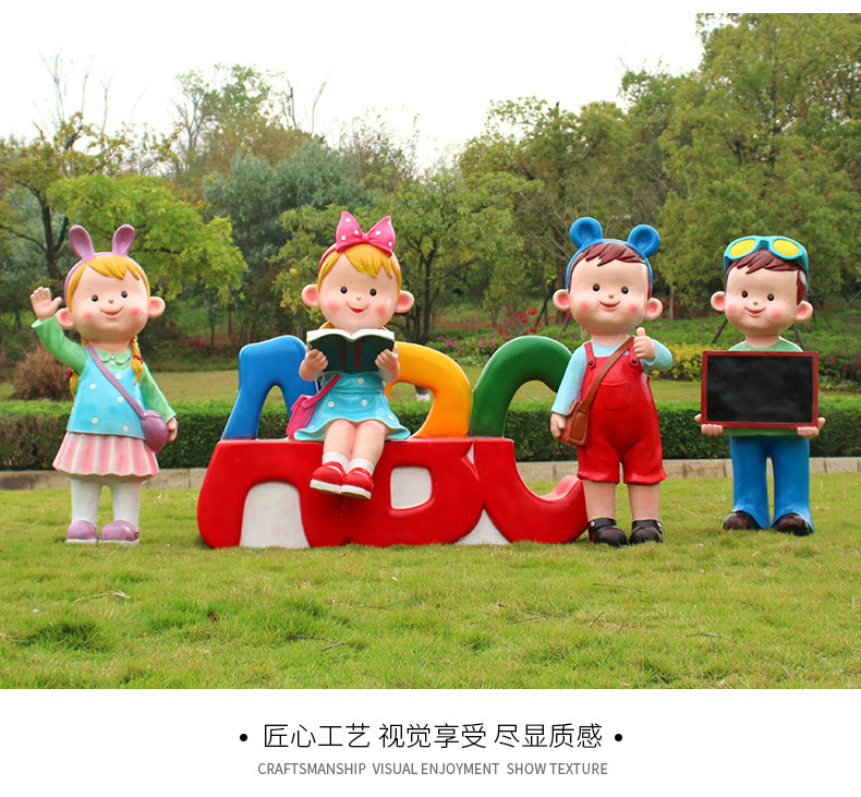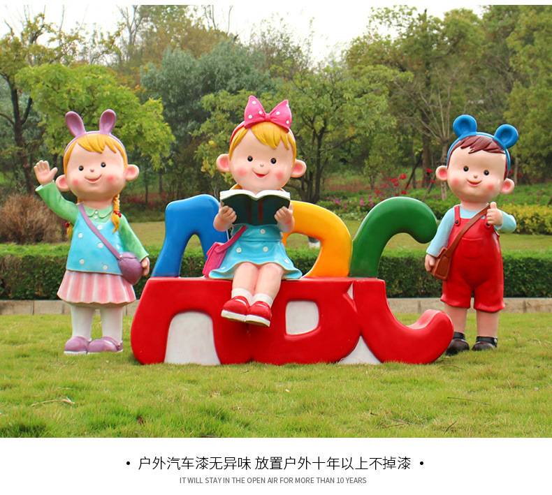 幼儿园卡通人物玻璃钢雕塑读书娃娃学校公园小区草坪户外装饰摆件