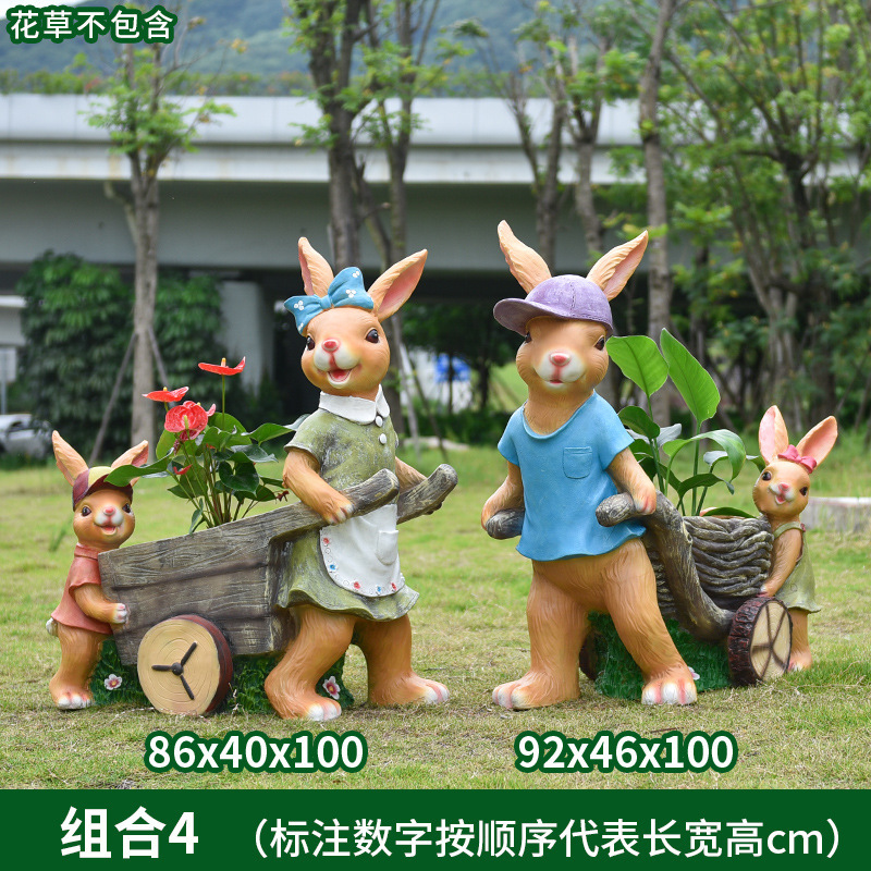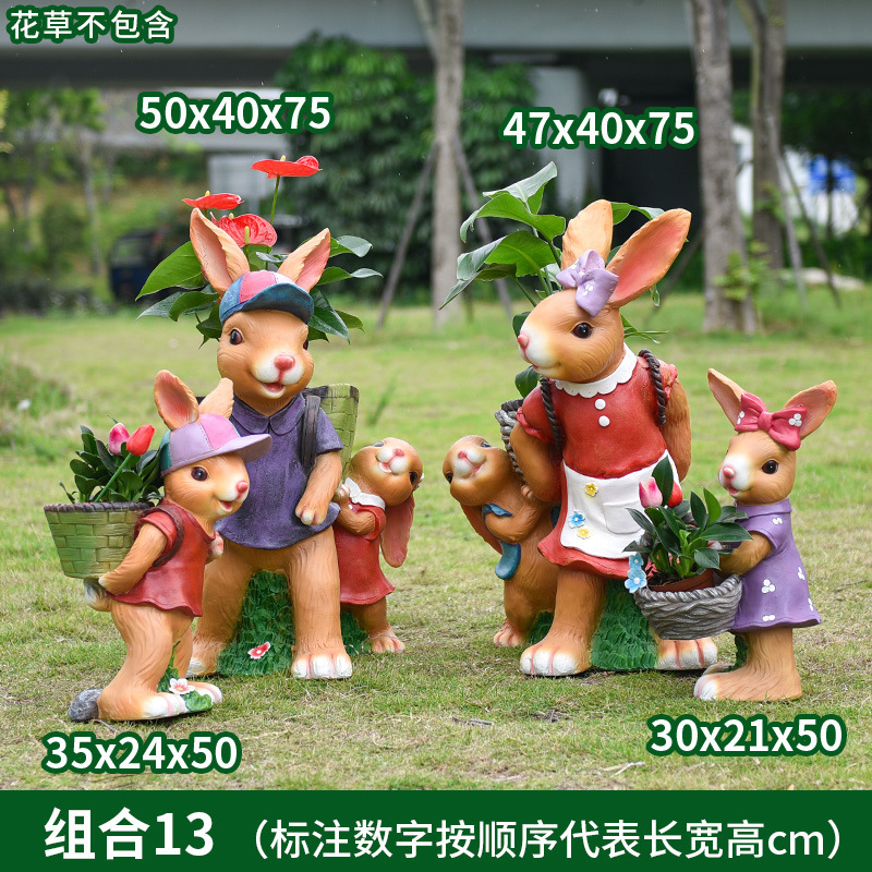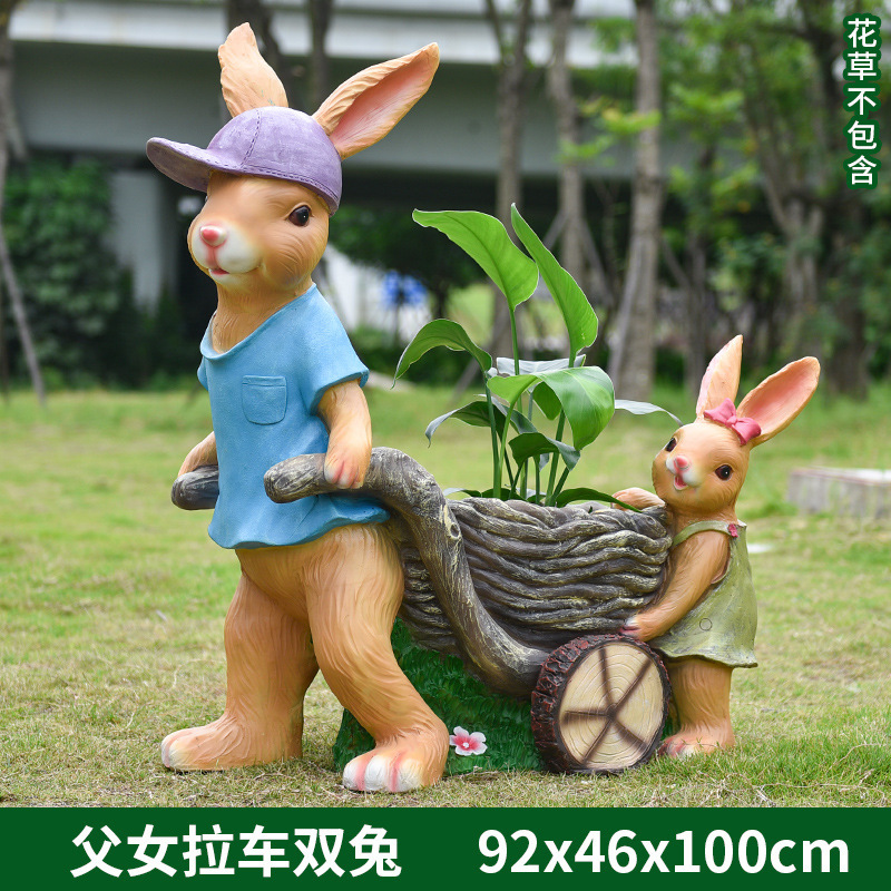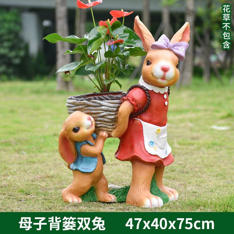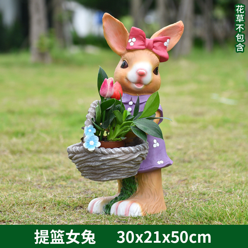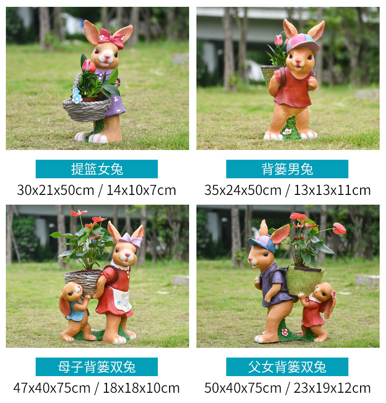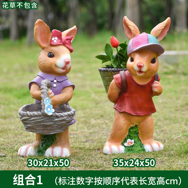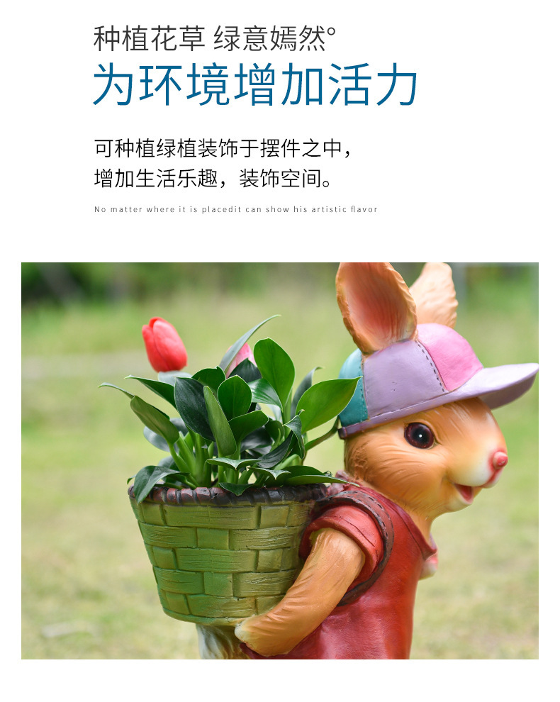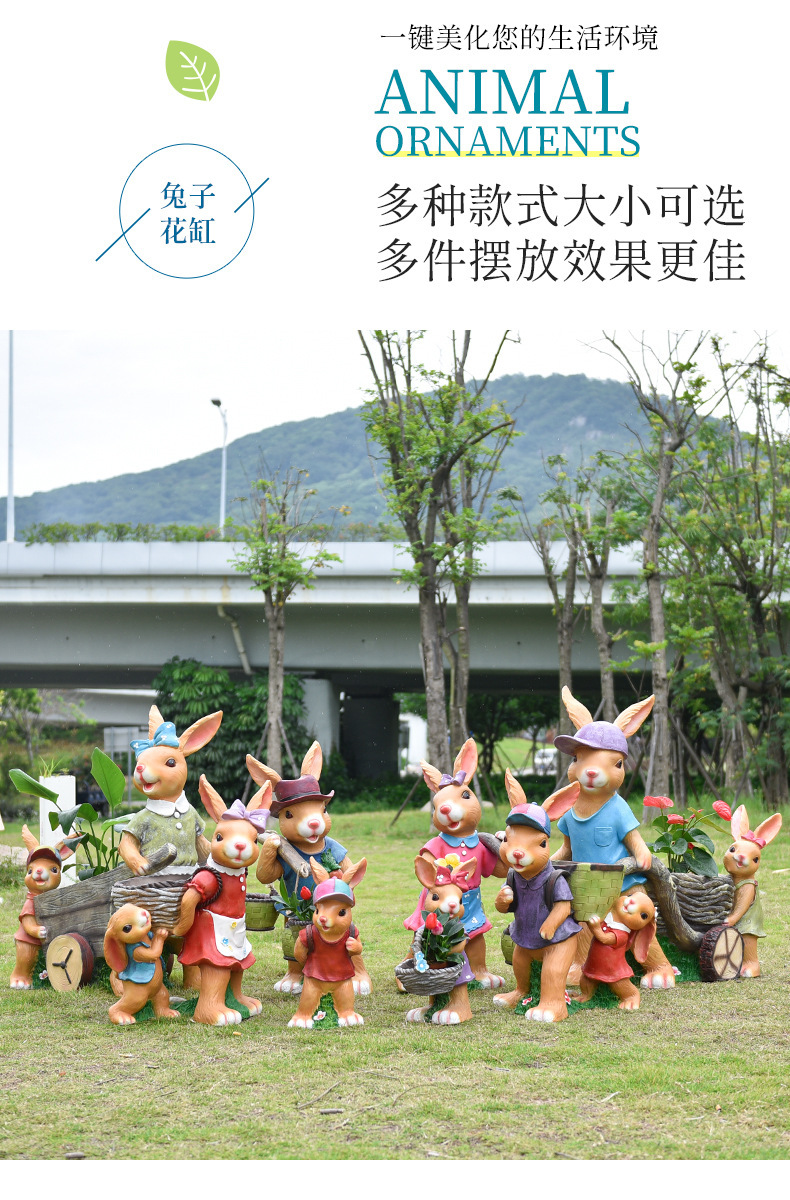 户外创意卡通兔子花盆雕塑阳台花园庭院动物花缸景观美陈装饰摆件