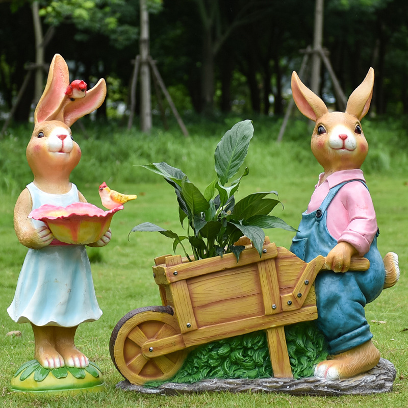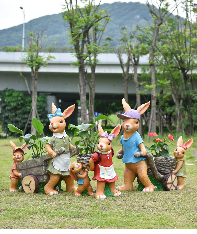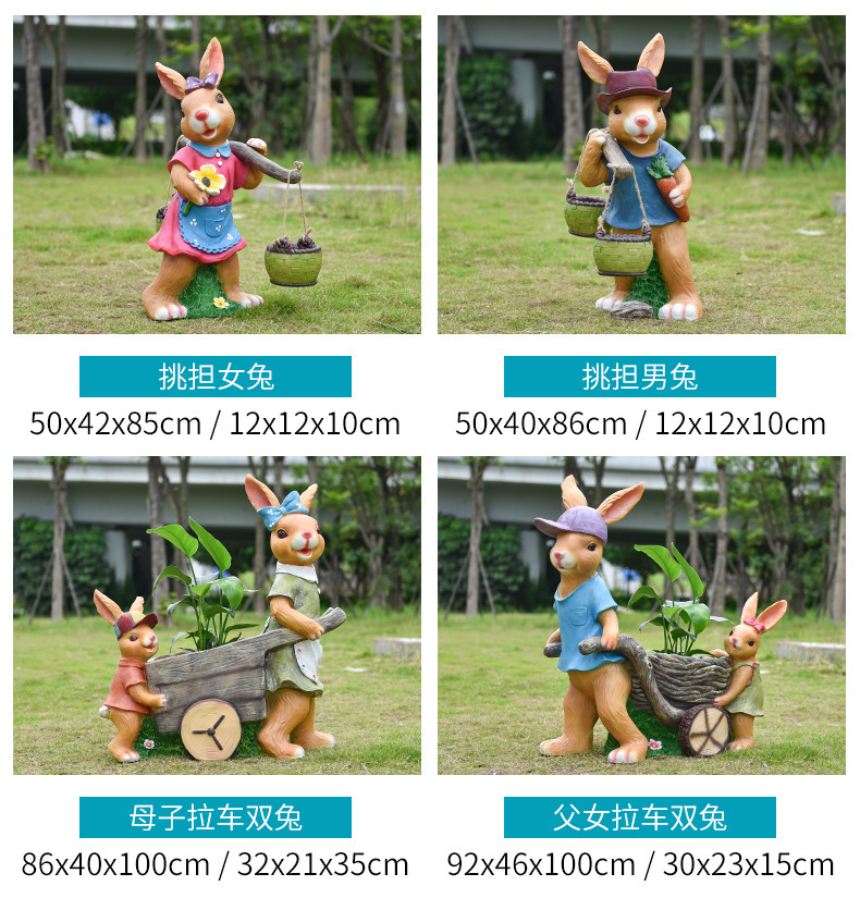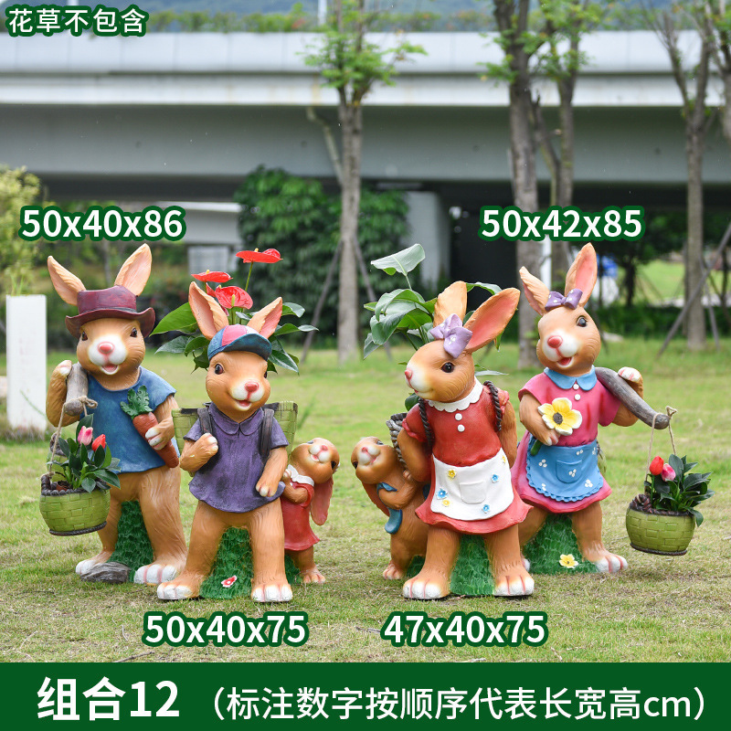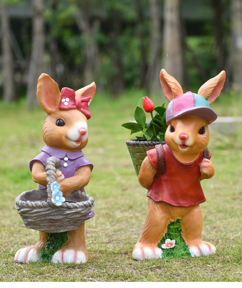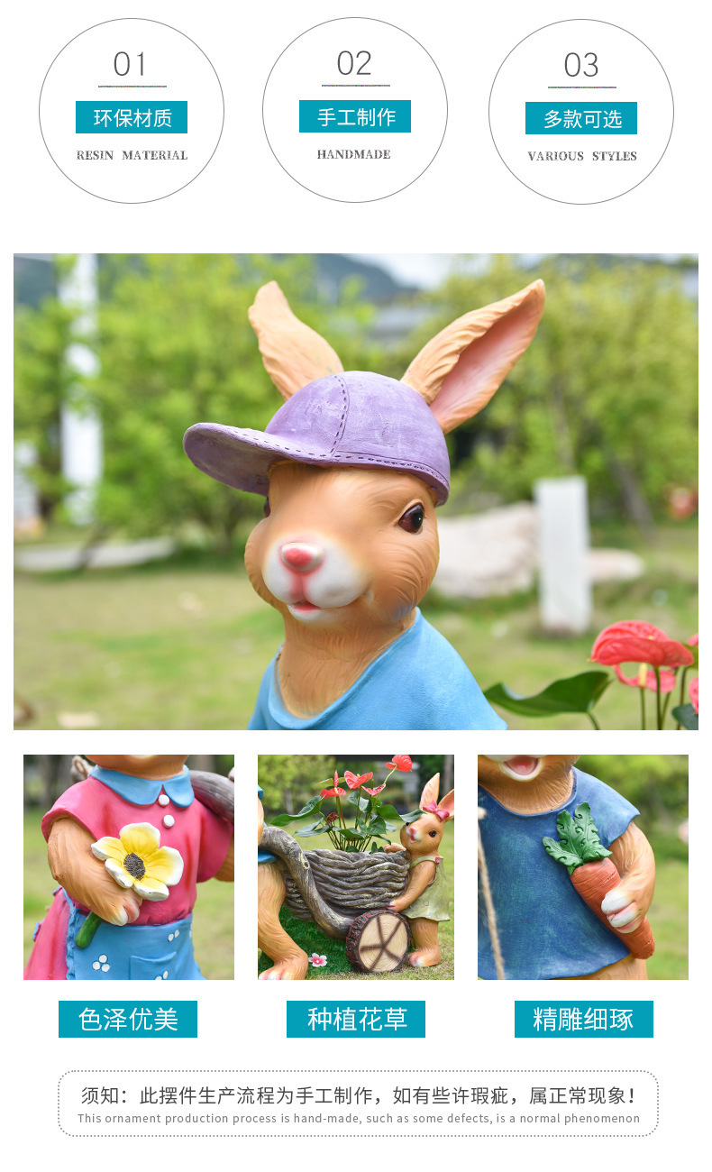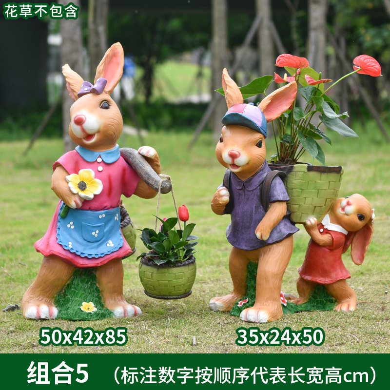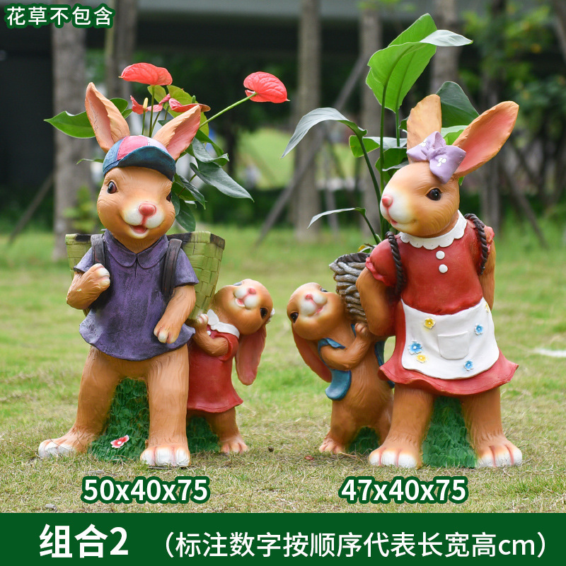 户外创意卡通兔子花盆雕塑阳台花园庭院动物花缸景观美陈装饰摆件