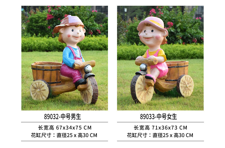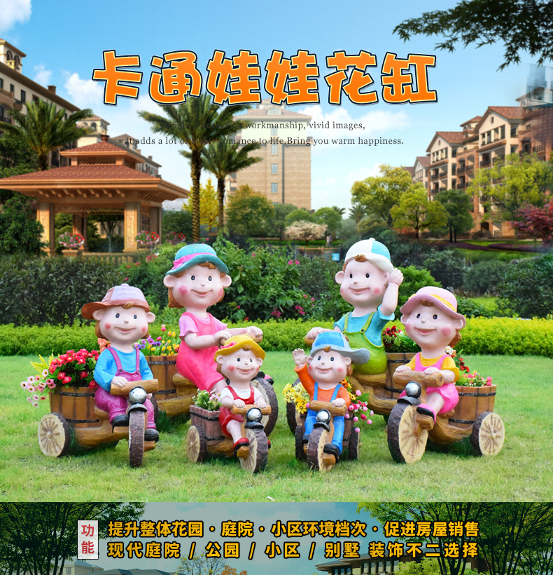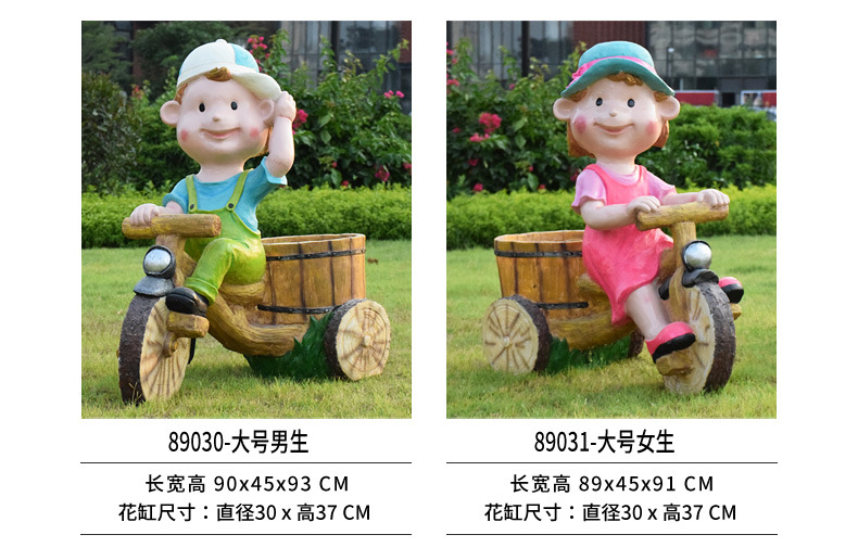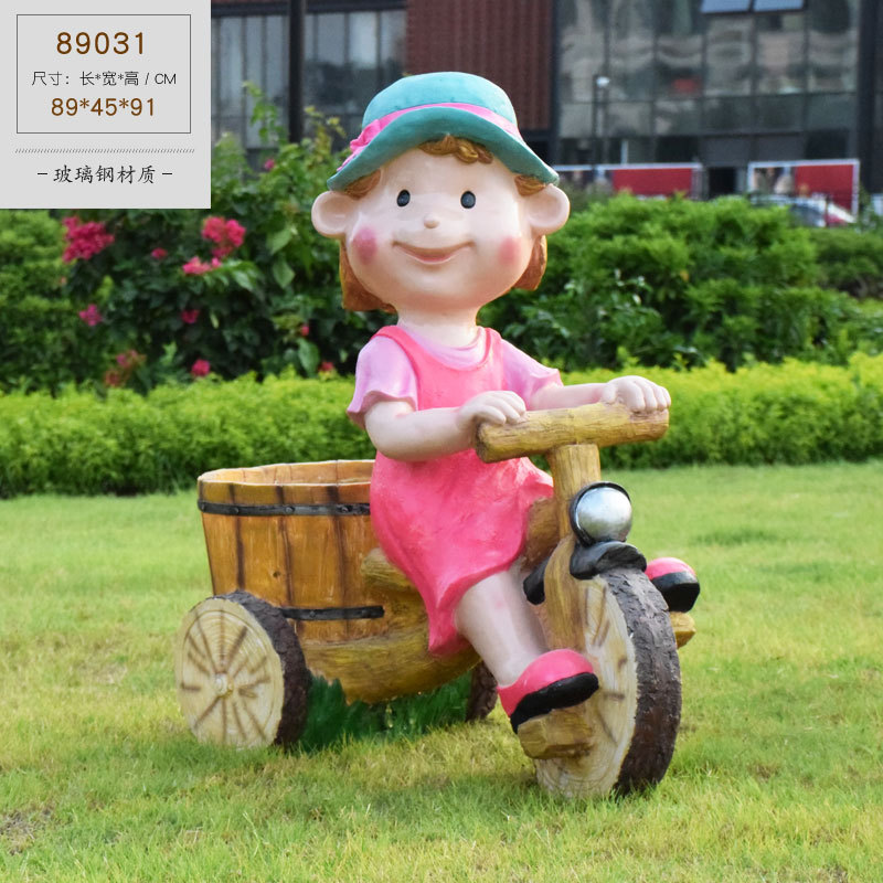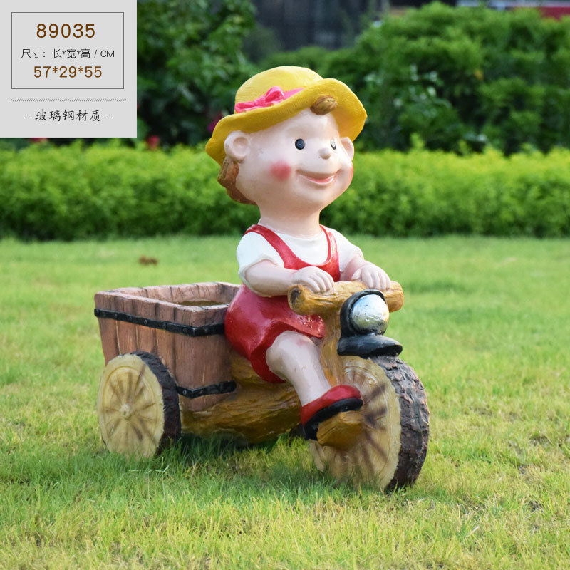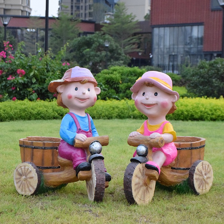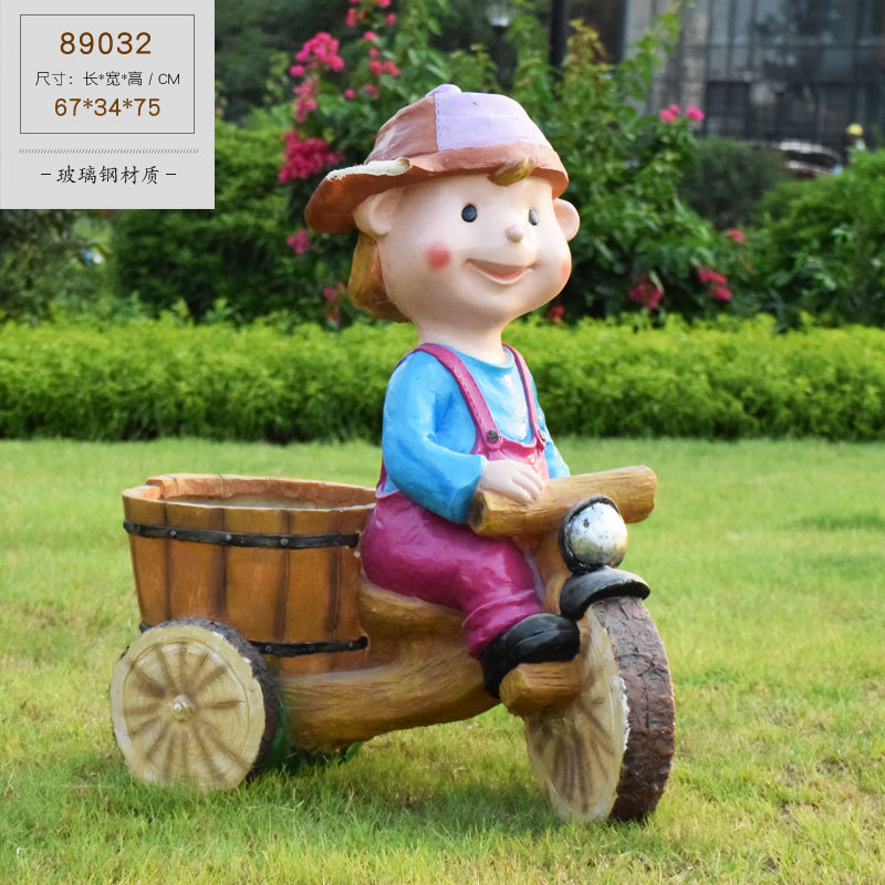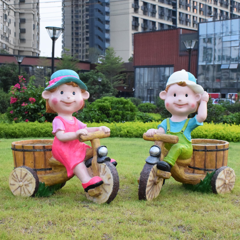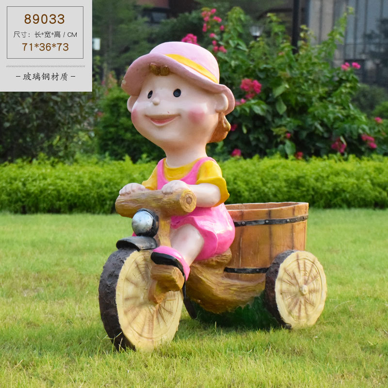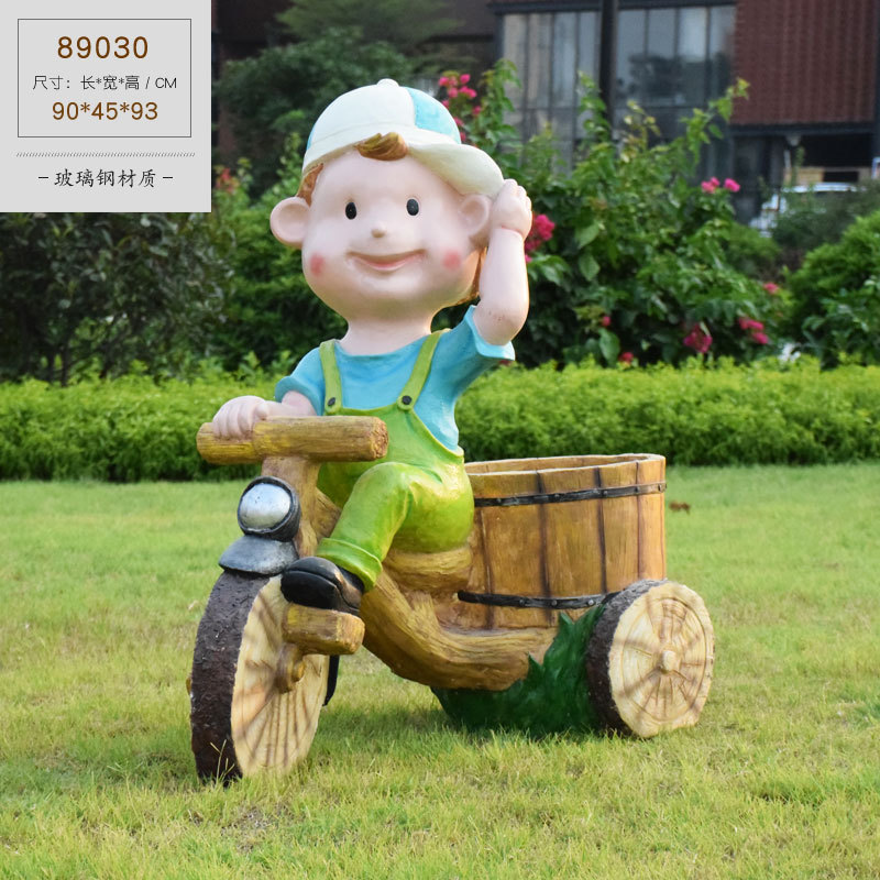 卡通骑车小孩花盆园林花缸别墅花园玻璃钢摆件幼儿园庭院景观装饰