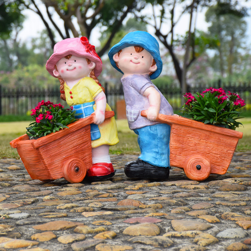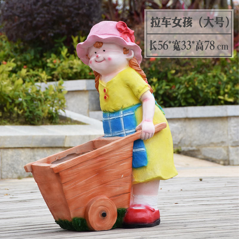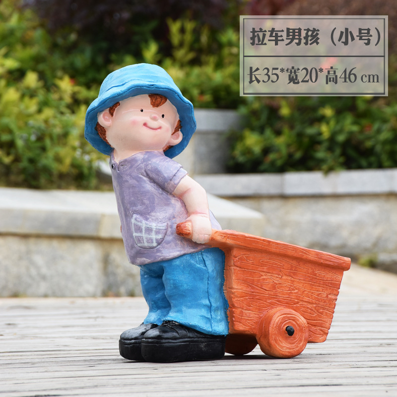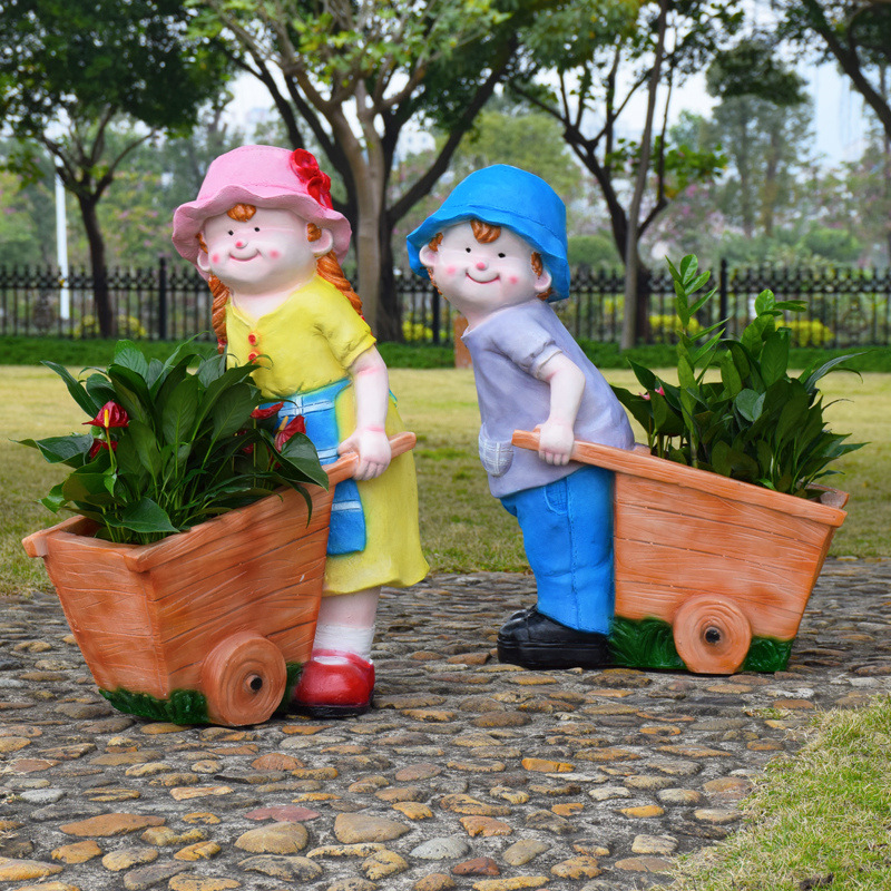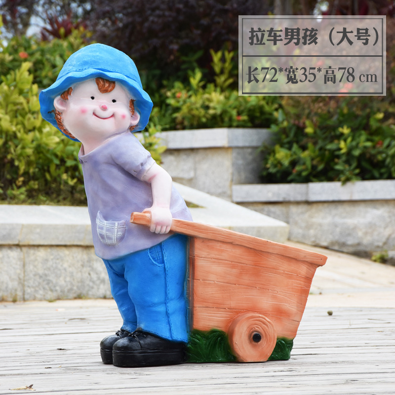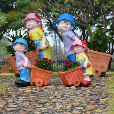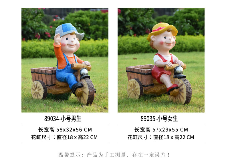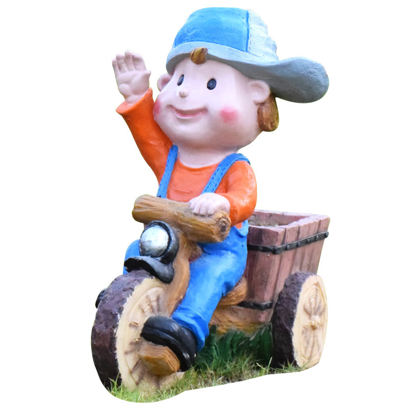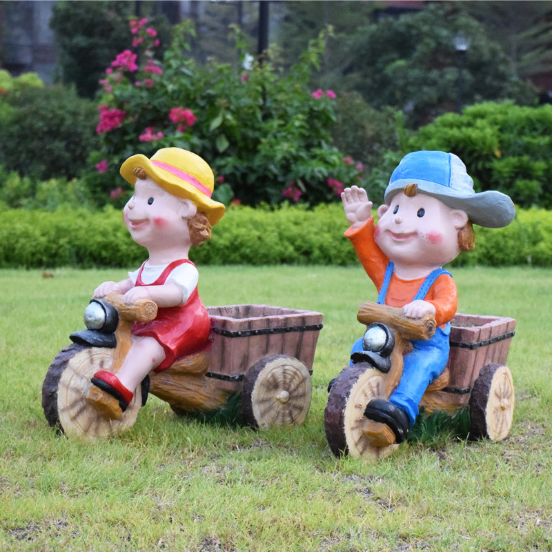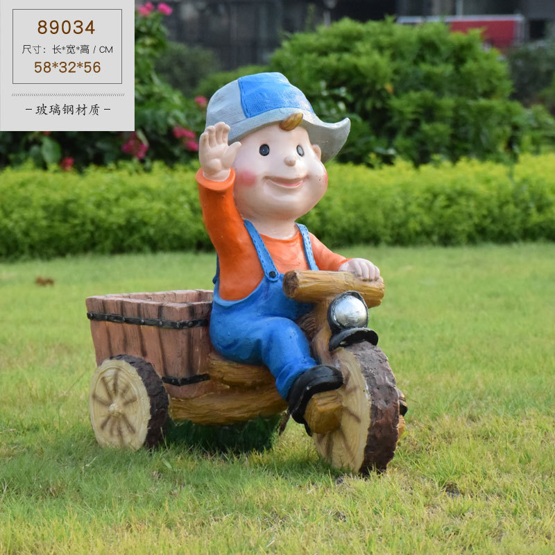 卡通骑车小孩花盆园林花缸别墅花园玻璃钢摆件幼儿园庭院景观装饰