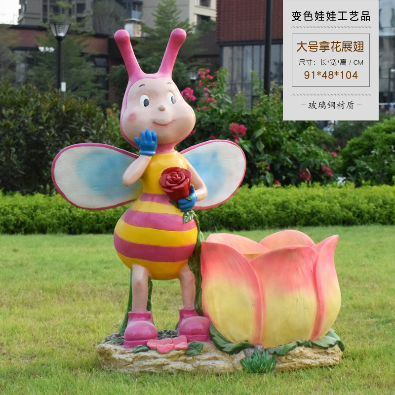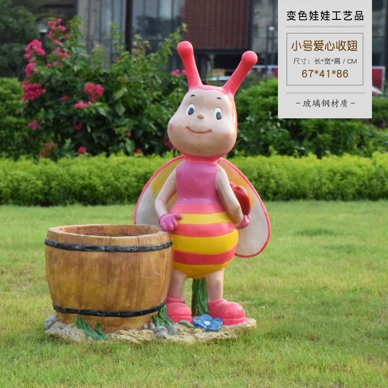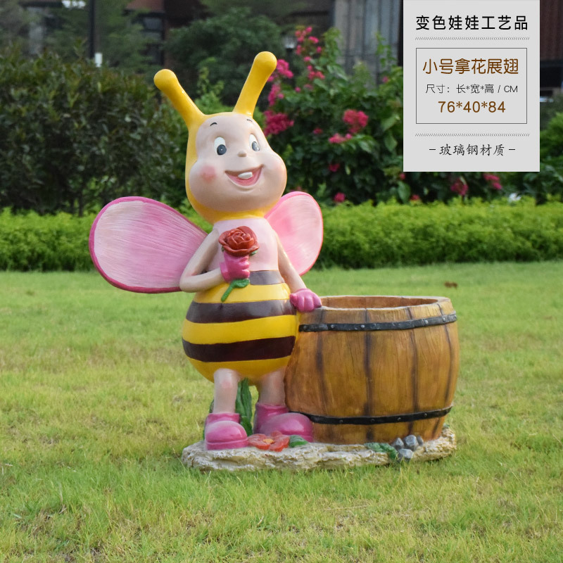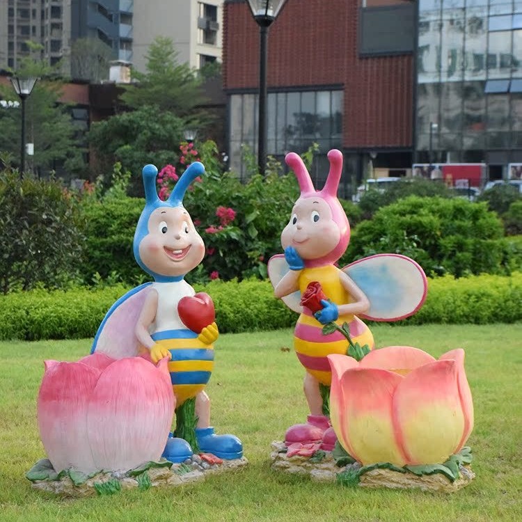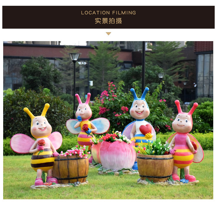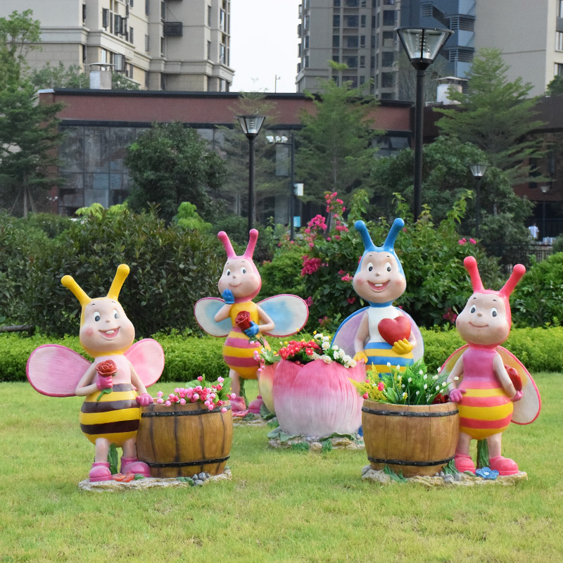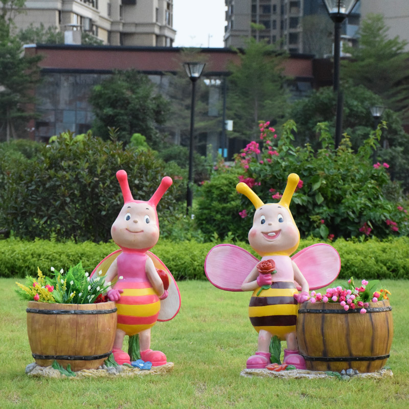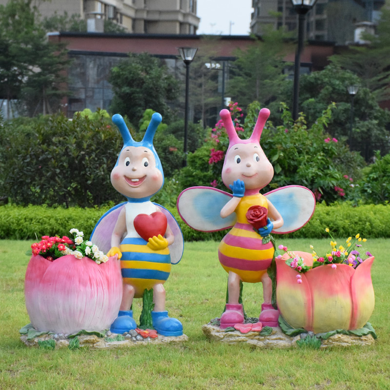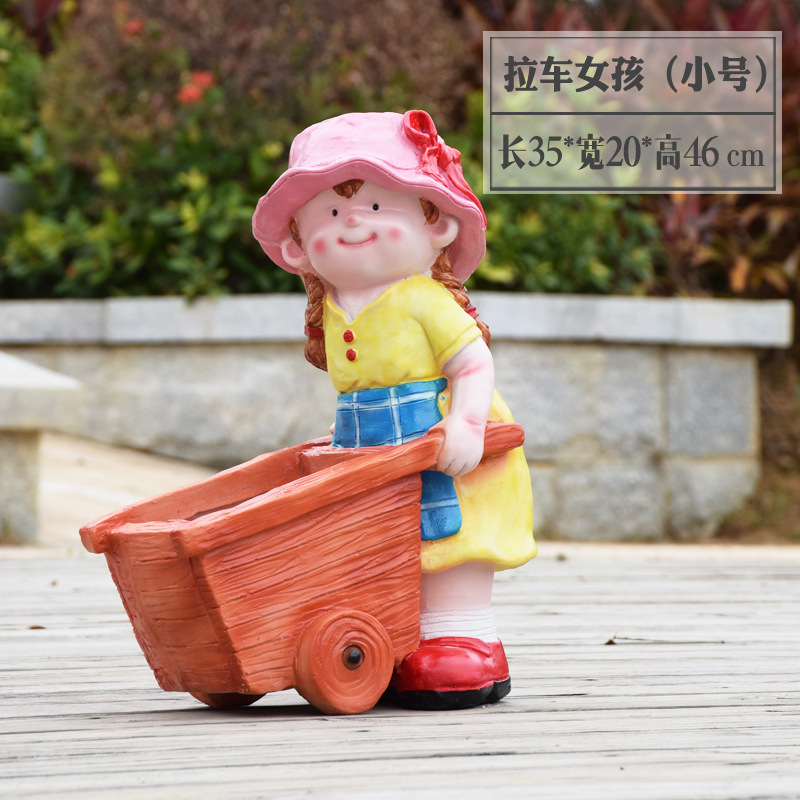 卡通骑车小孩花盆园林花缸别墅花园玻璃钢摆件幼儿园庭院景观装饰