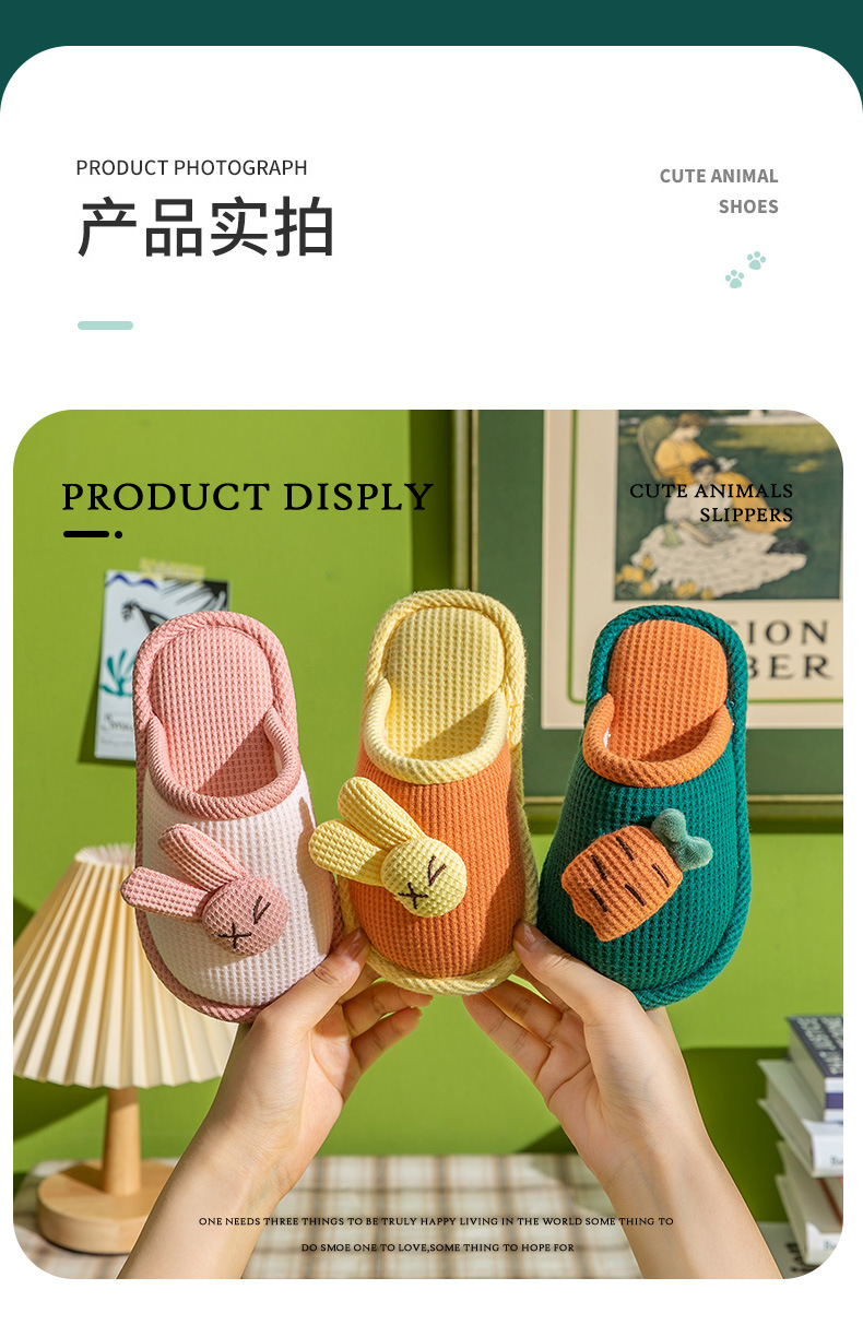 亚麻拖鞋儿童春秋透气男女四季家居拖鞋室内软底防滑亲子棉麻拖鞋
