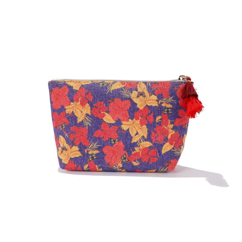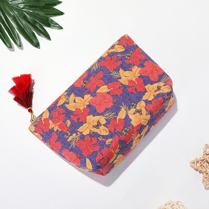 化妆包大容量帆布洗漱包布艺流苏印花拉链零钱包便捷旅行收纳包