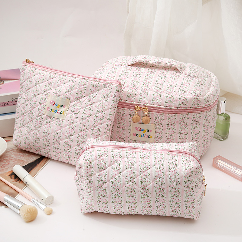 新品小碎花化妆包大容量高级感便捷绗棉布花朵ins新化妆品收纳袋
