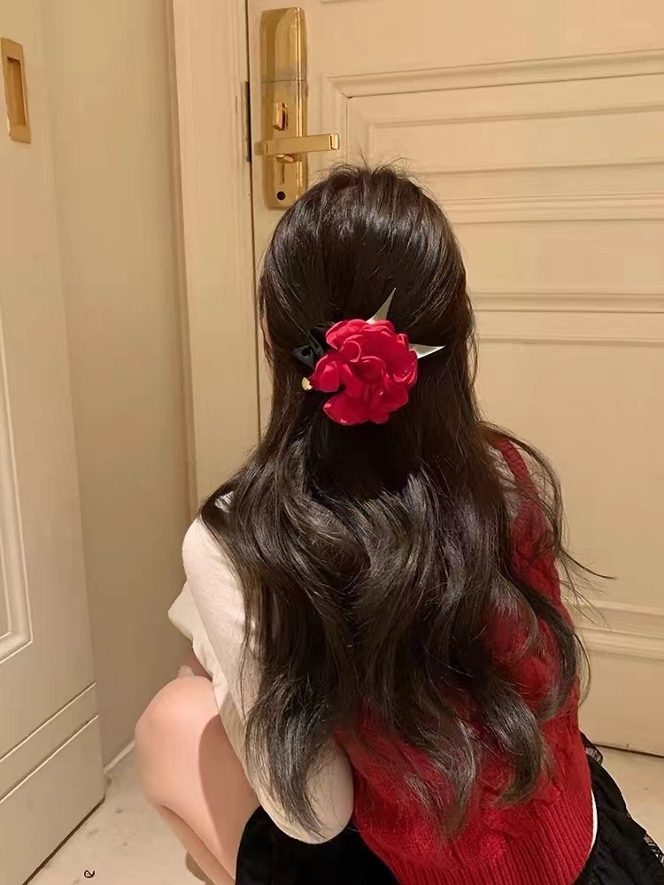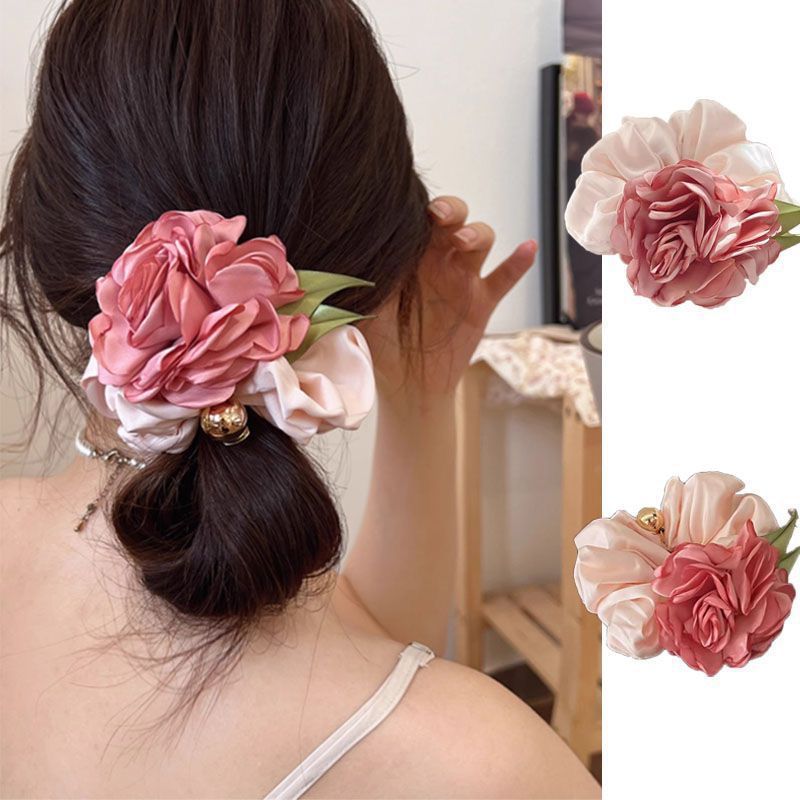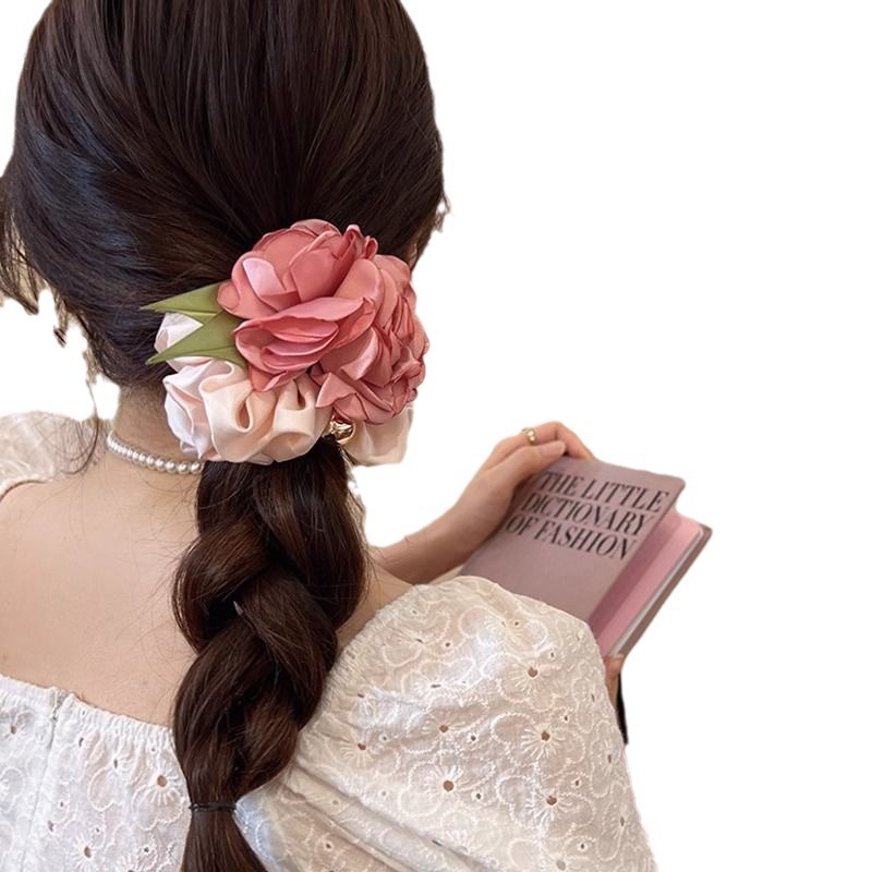 玫瑰花大肠圈茶花发圈花朵复古少女发绳头绳