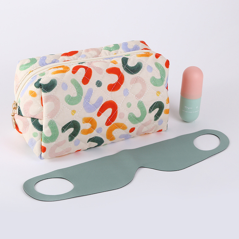 跨境碎花收纳化妆包大容量高级感绗缝棉布洗漱包出差旅行眼罩套装