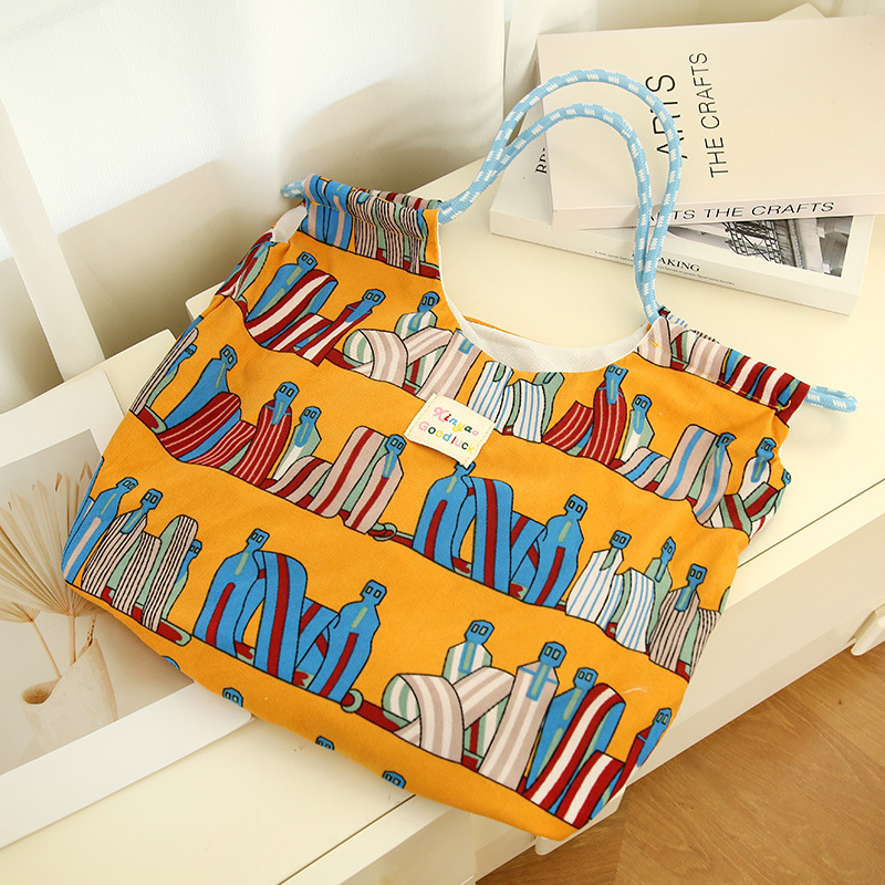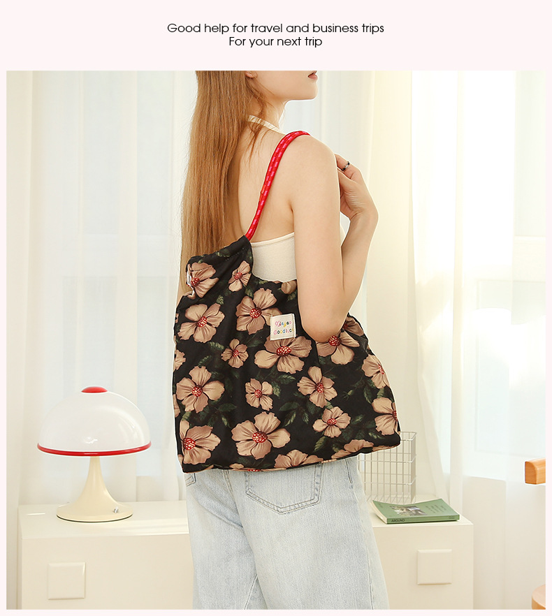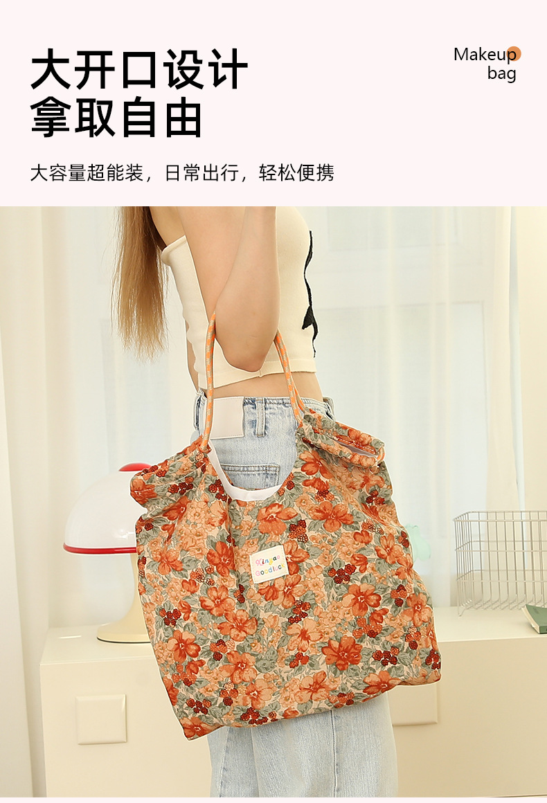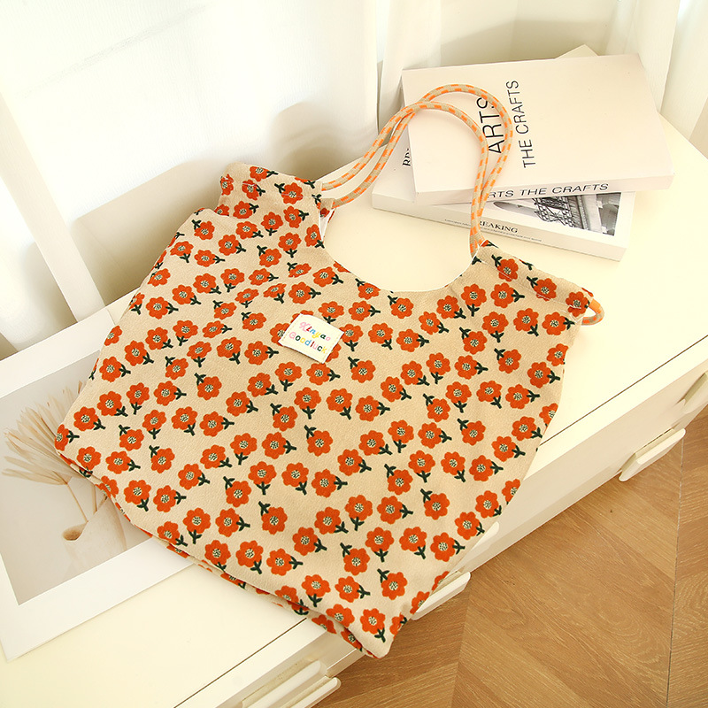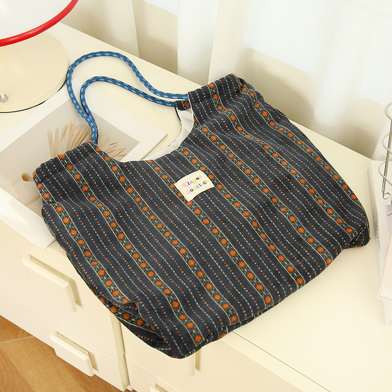 跨境直供灯芯绒复古风印花单肩斜挎包大容量布袋子日常穿搭学生包
