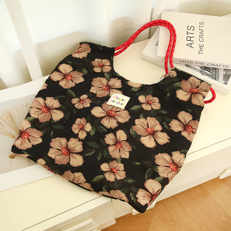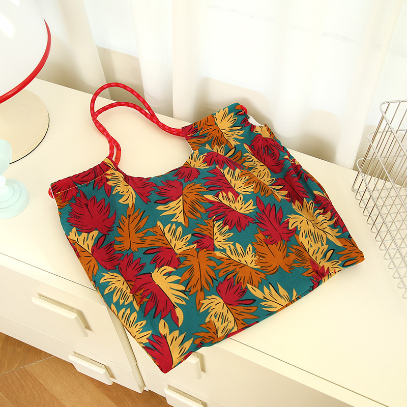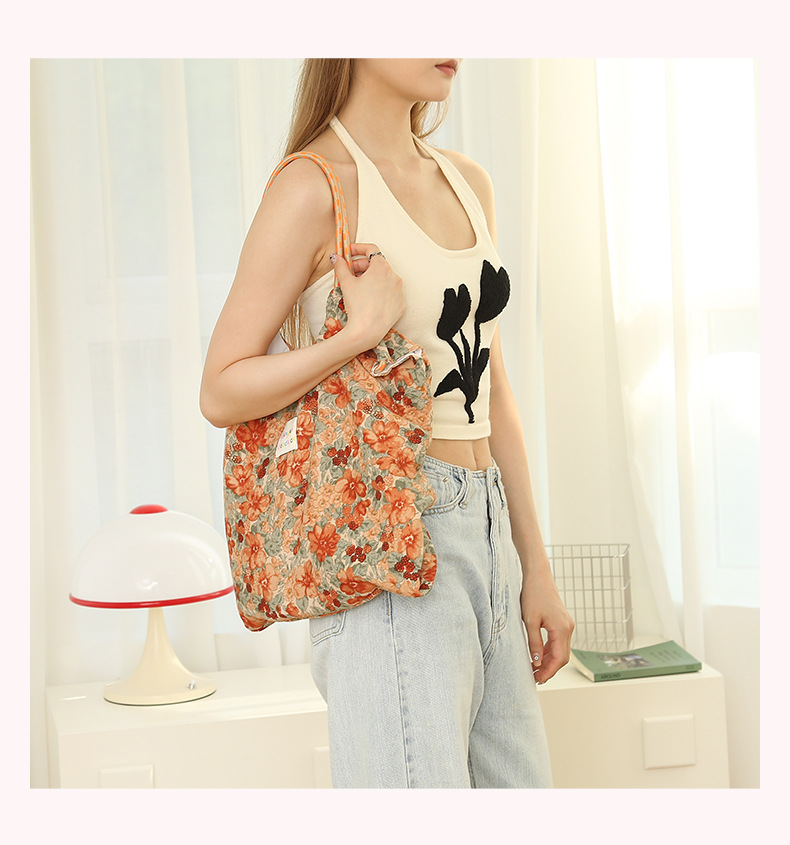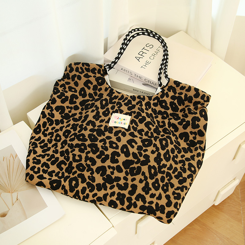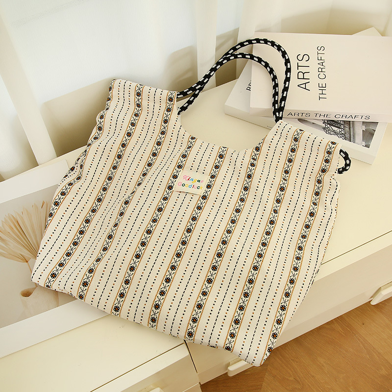 跨境直供灯芯绒复古风印花单肩斜挎包大容量布袋子日常穿搭学生包