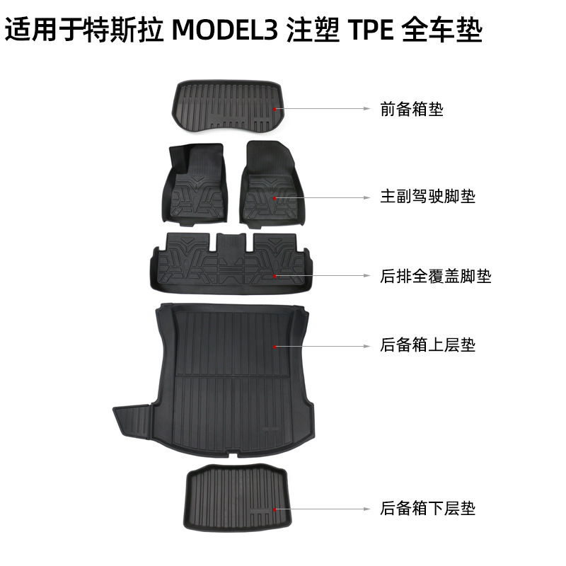 适用特斯拉modely 3TPE脚垫前后备箱垫尾箱垫汽车用品配件改装