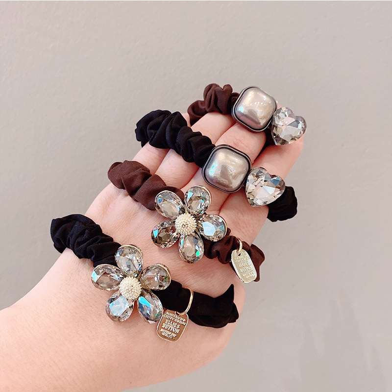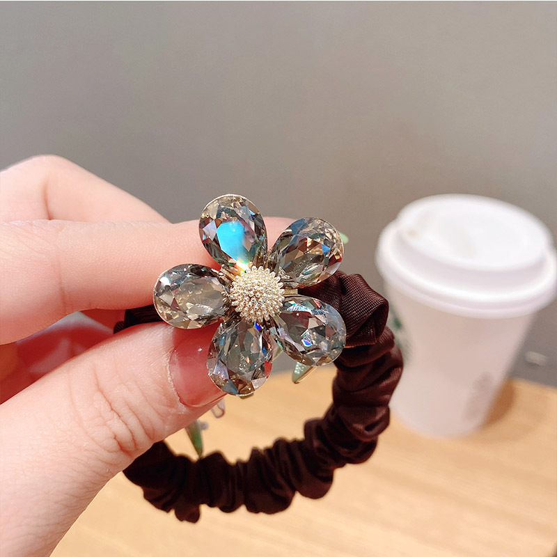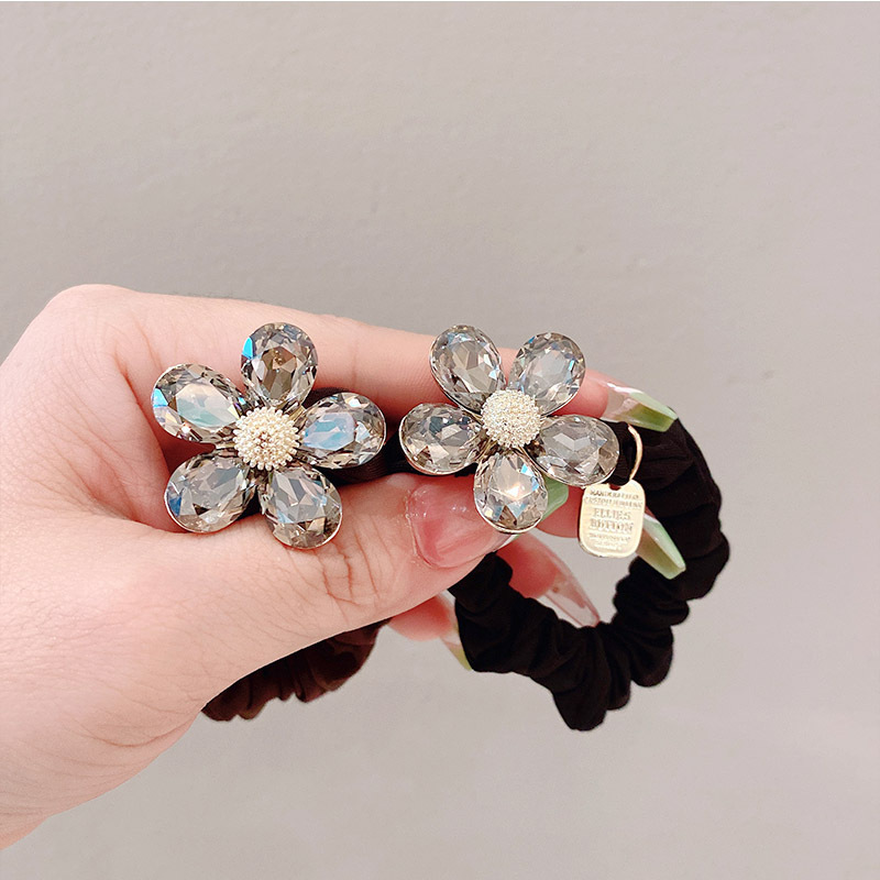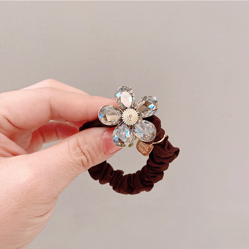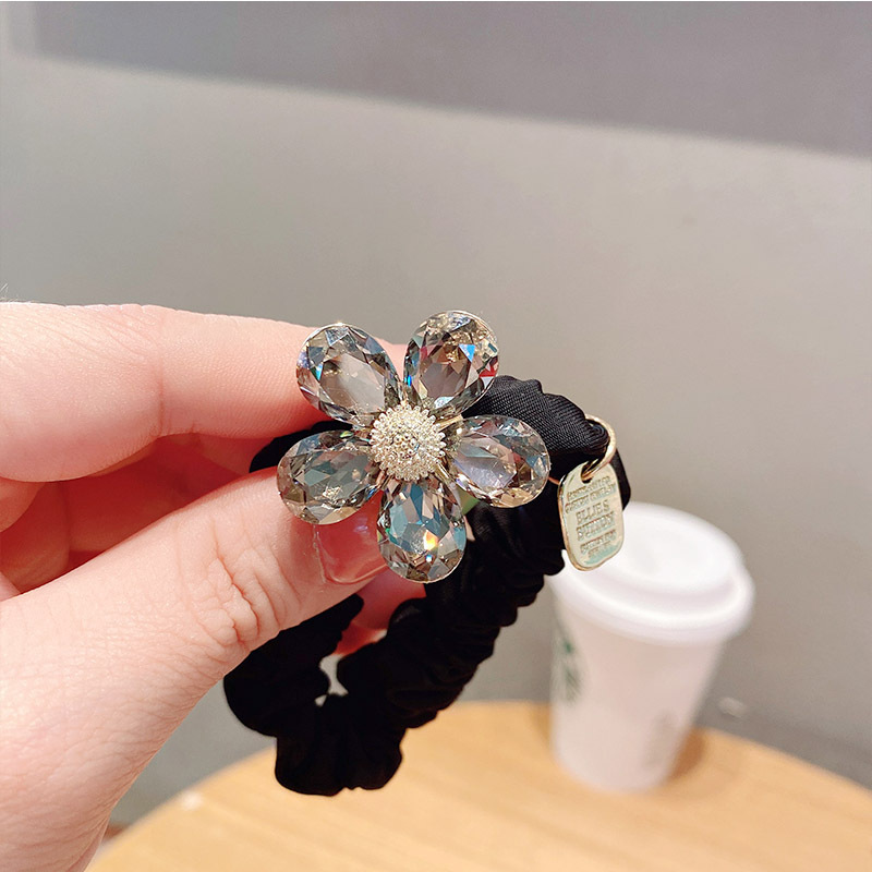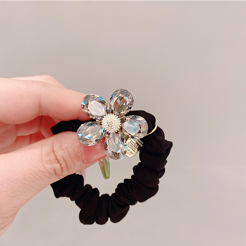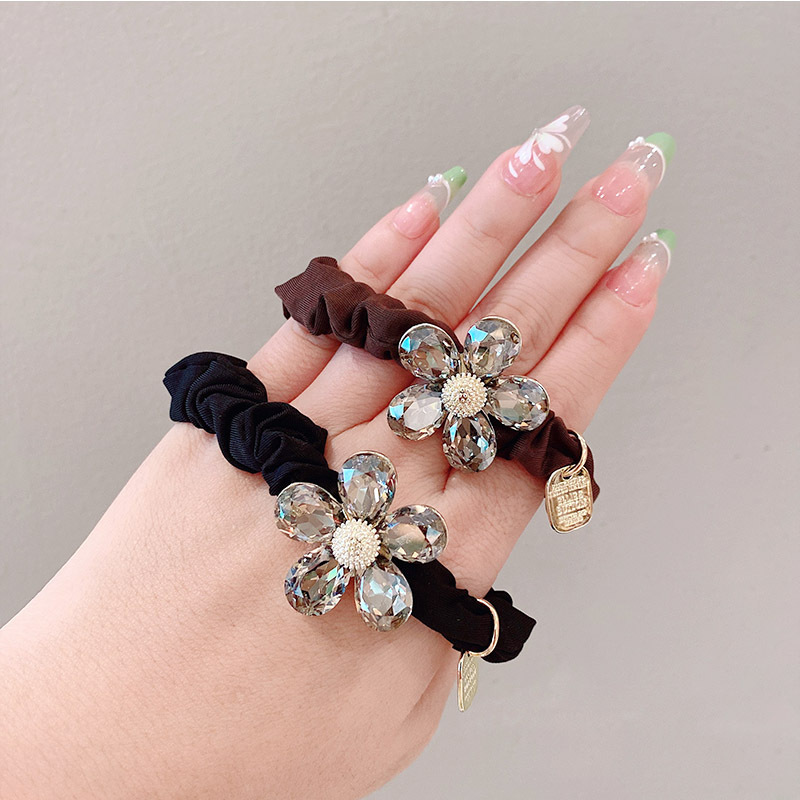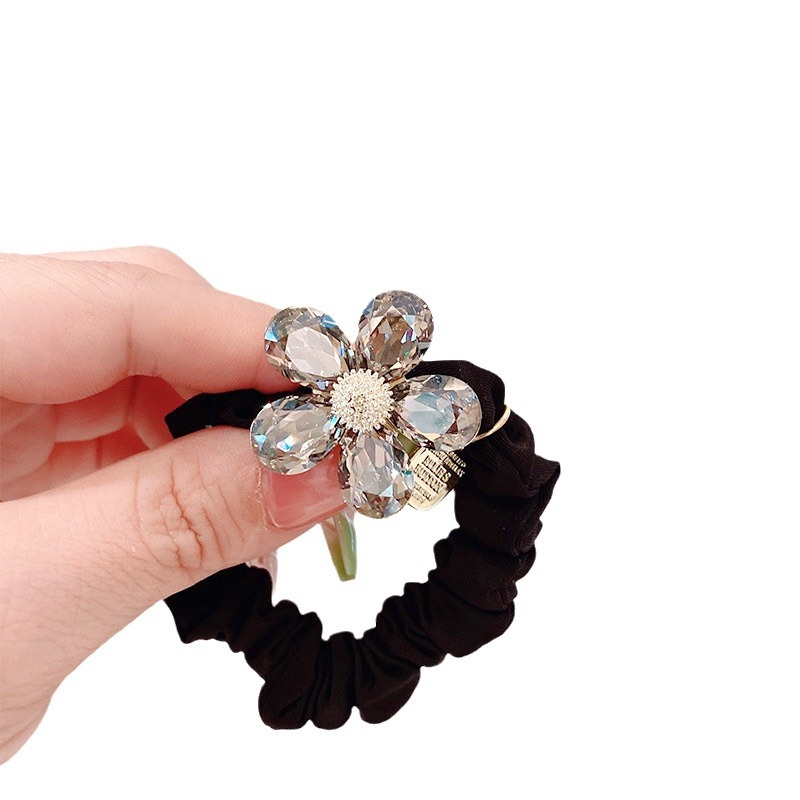 新款花朵水晶发圈女高马尾弹力头绳丸子头皮筋发绳