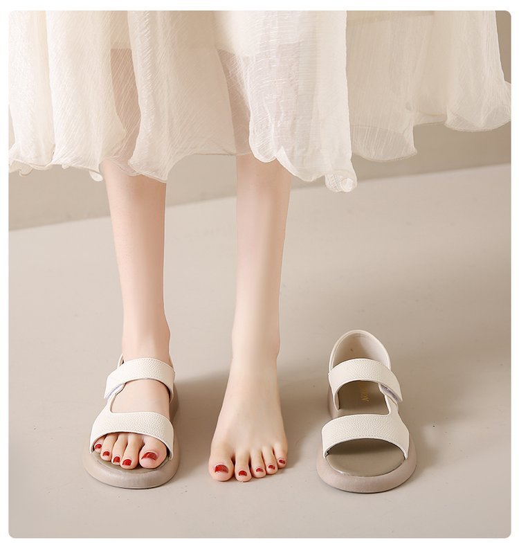 2025年秋季新款时尚简约露趾圆头厚底仙女风一字带两穿沙滩凉鞋女