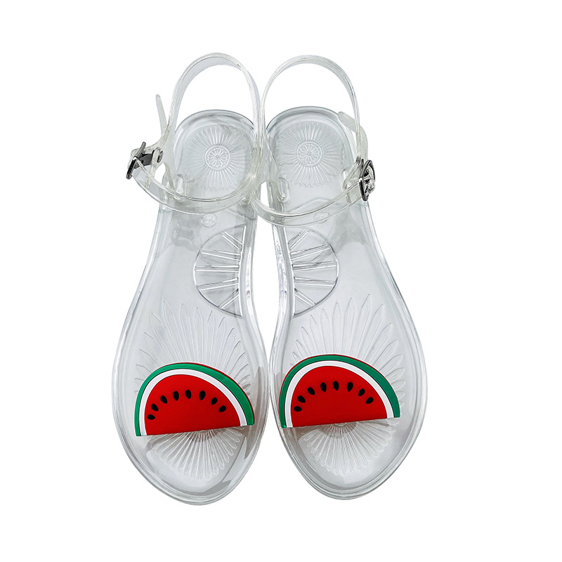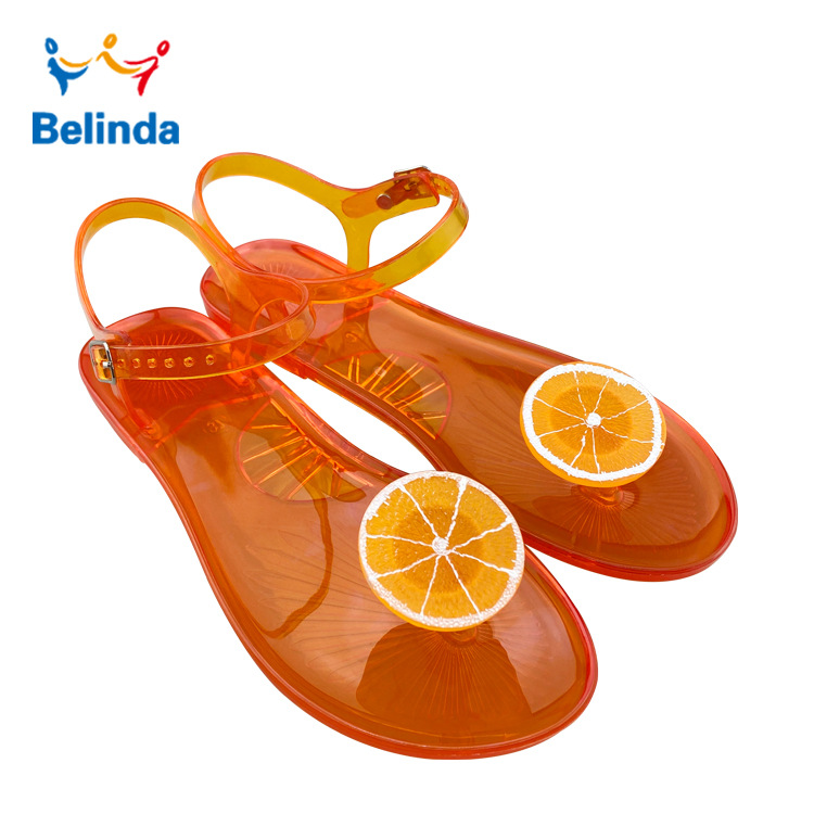 凉鞋圆头外贸新款ins水果果冻凉鞋女防滑软底PVC沙滩凉鞋柠檬
