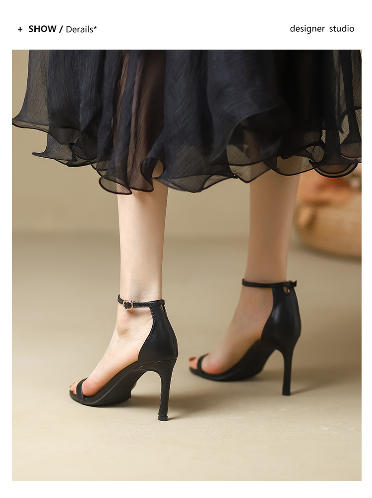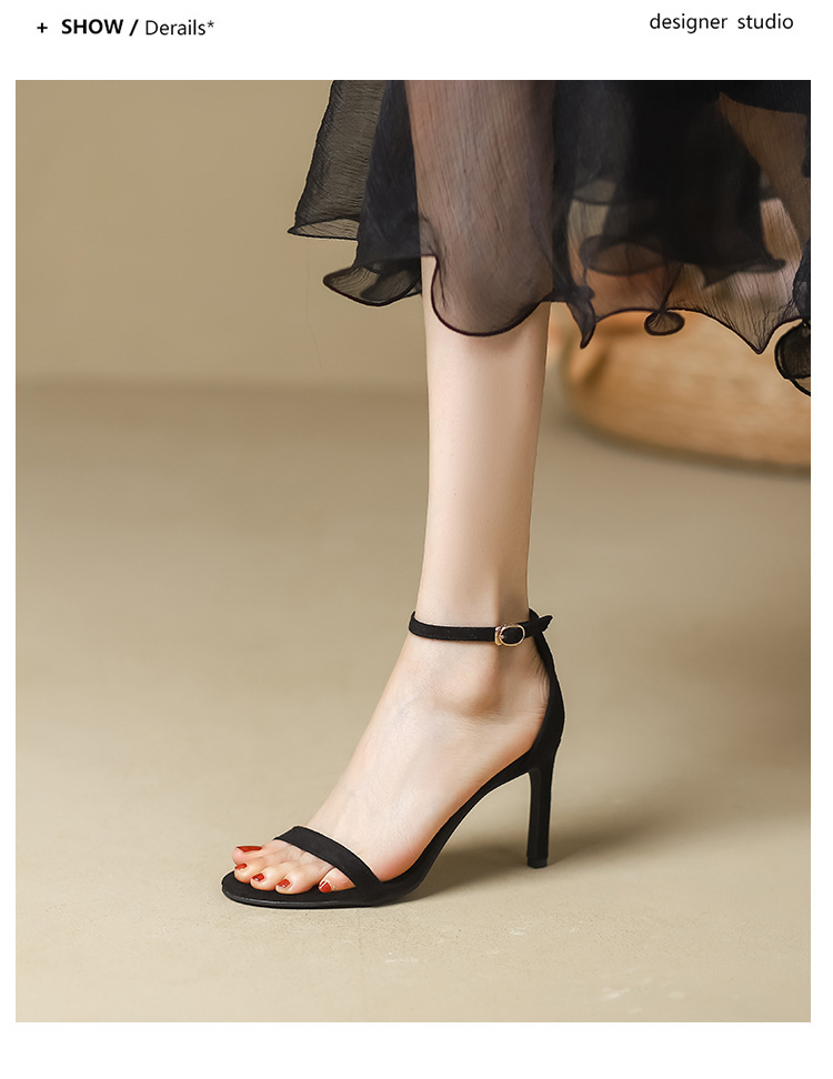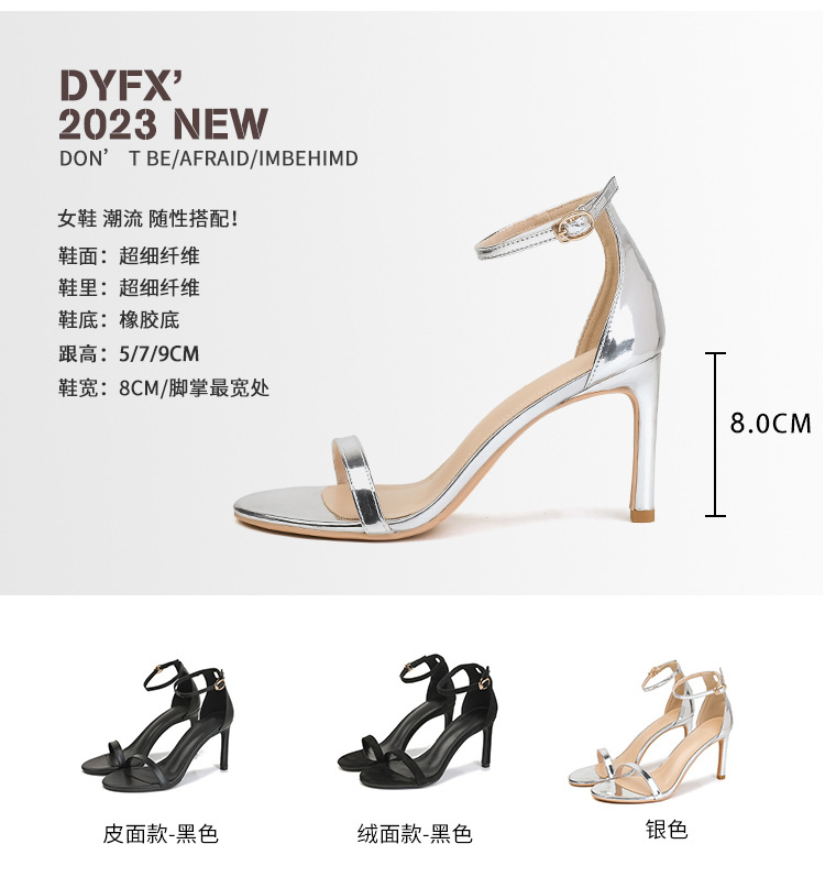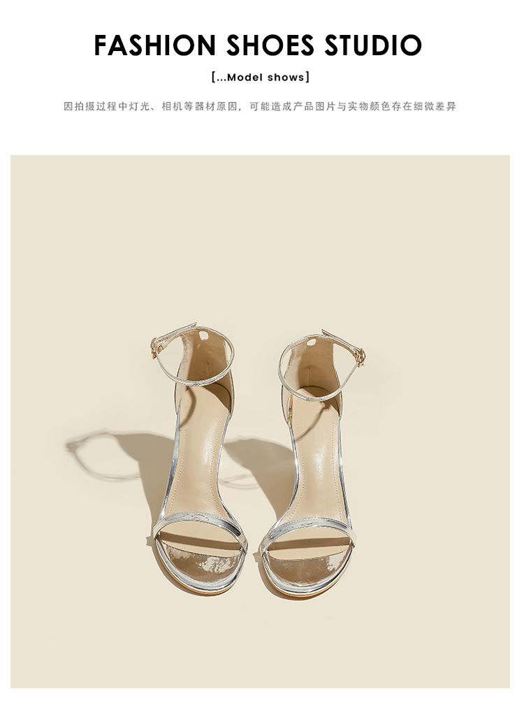 一字带凉鞋女2025春夏新款银色高跟鞋细跟百搭性感裸色女鞋仙女风