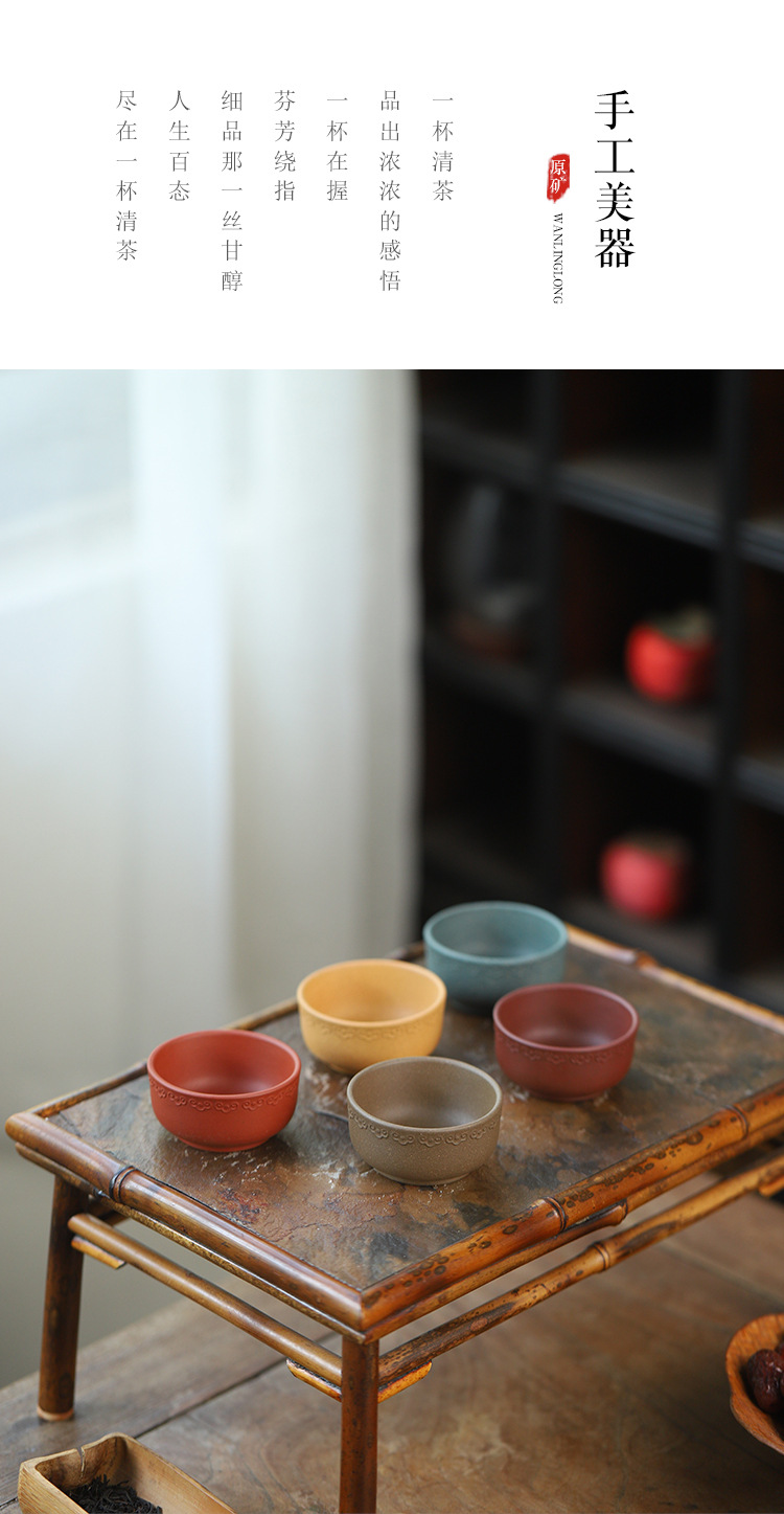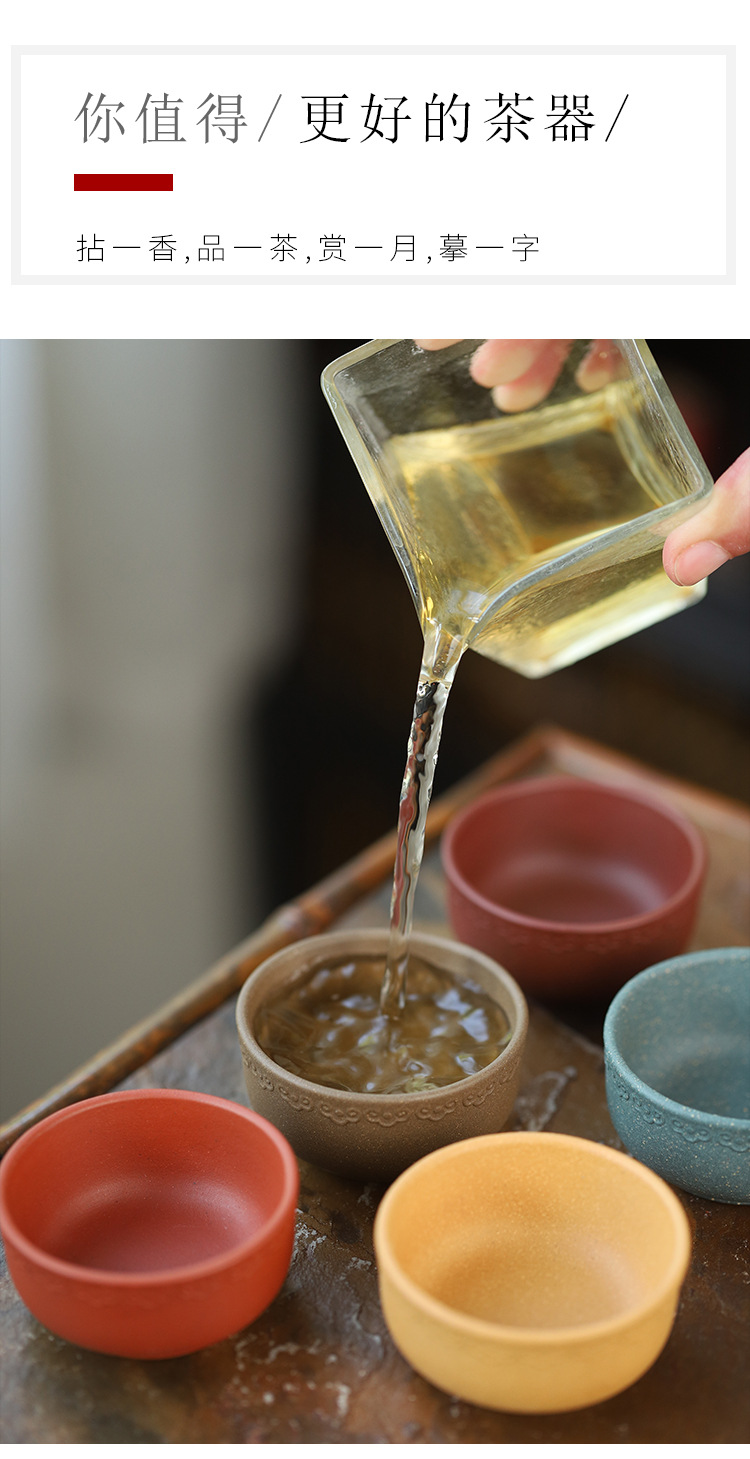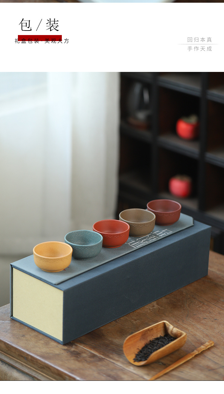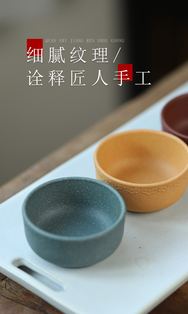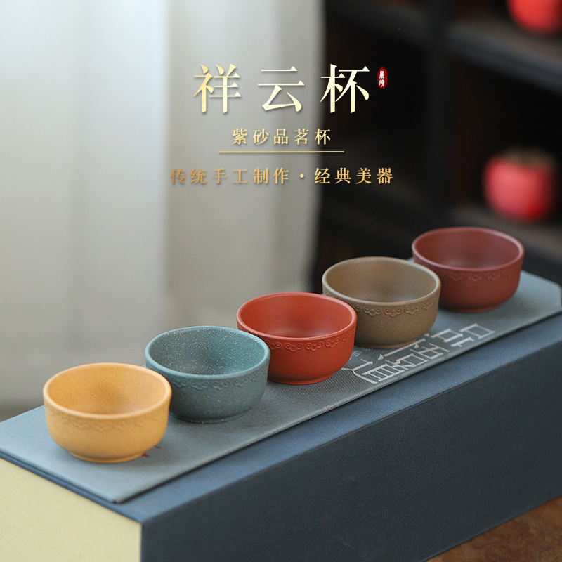宜兴原矿紫砂杯祥云杯批发礼盒套组功夫茶盏小杯子五色土主人单杯