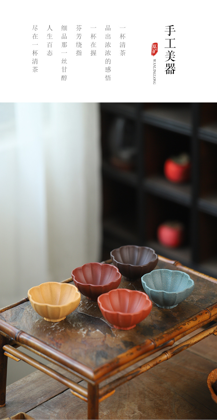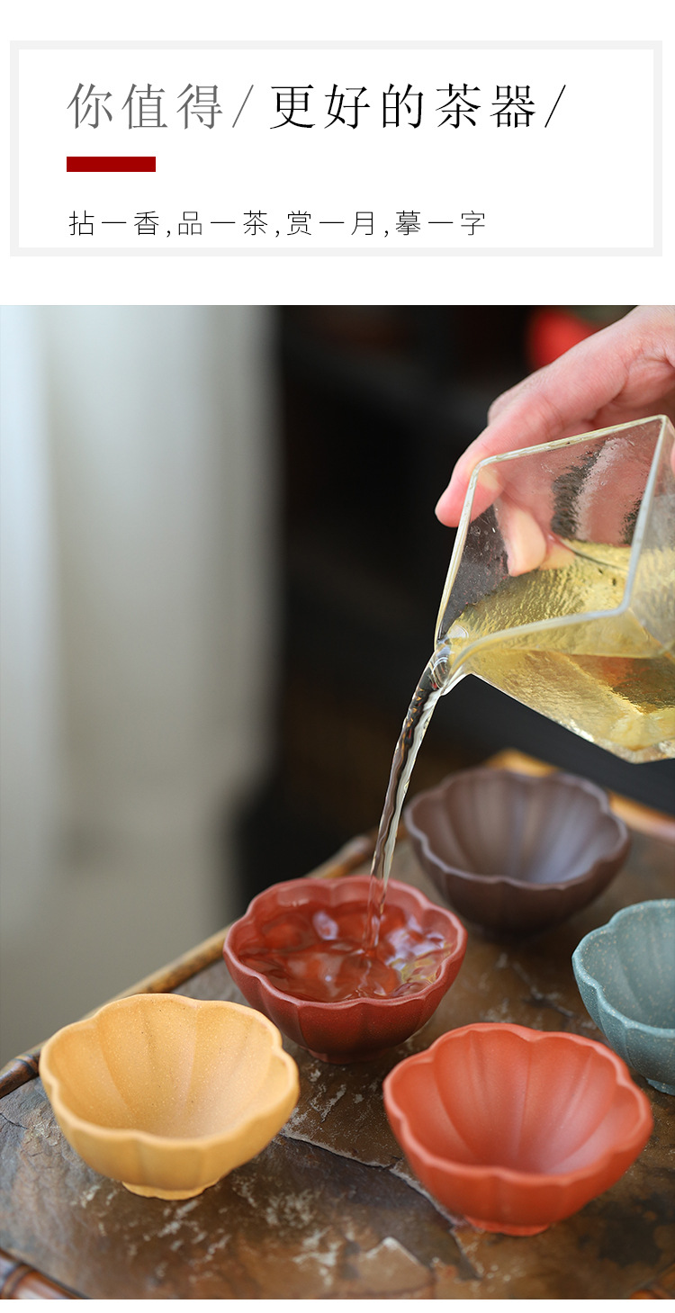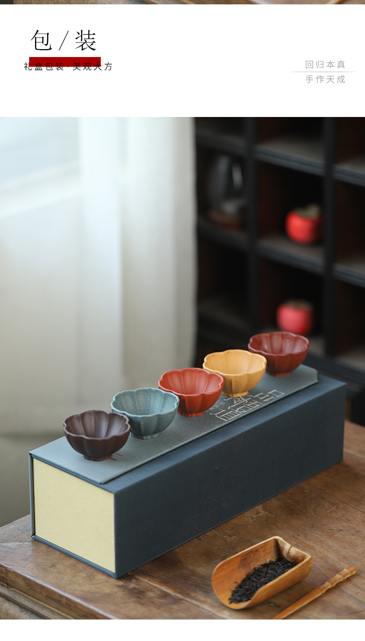 五色品名杯宜兴紫砂杯套组礼品批发全手工主人杯小口杯花瓣杯茶具