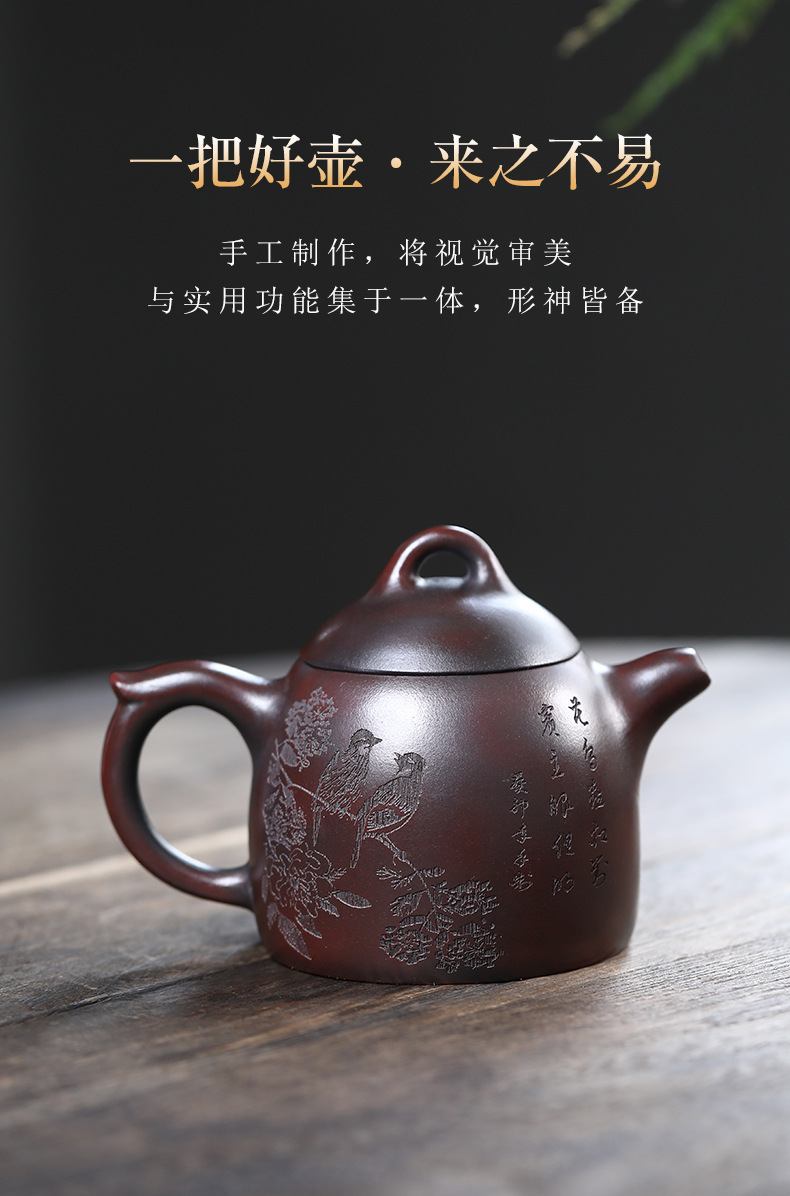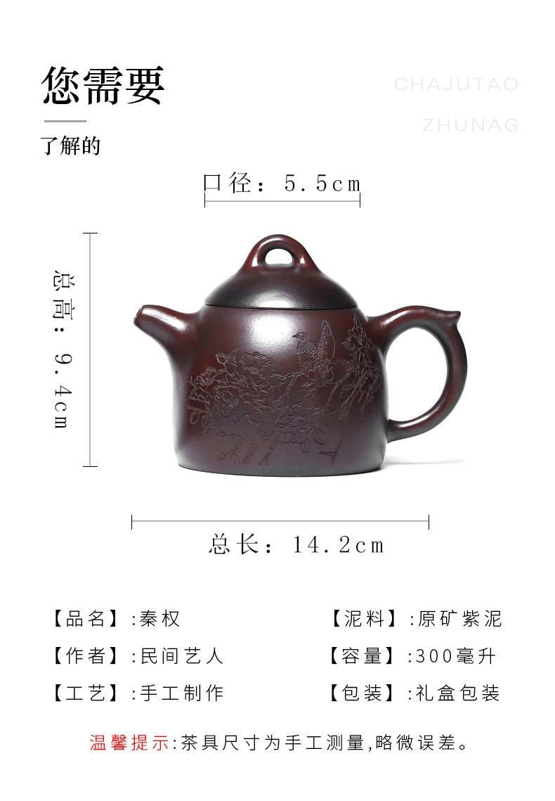 宜兴紫砂茶壶 全手工秦权紫砂壶 大容量家用茶具