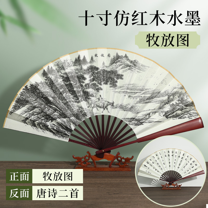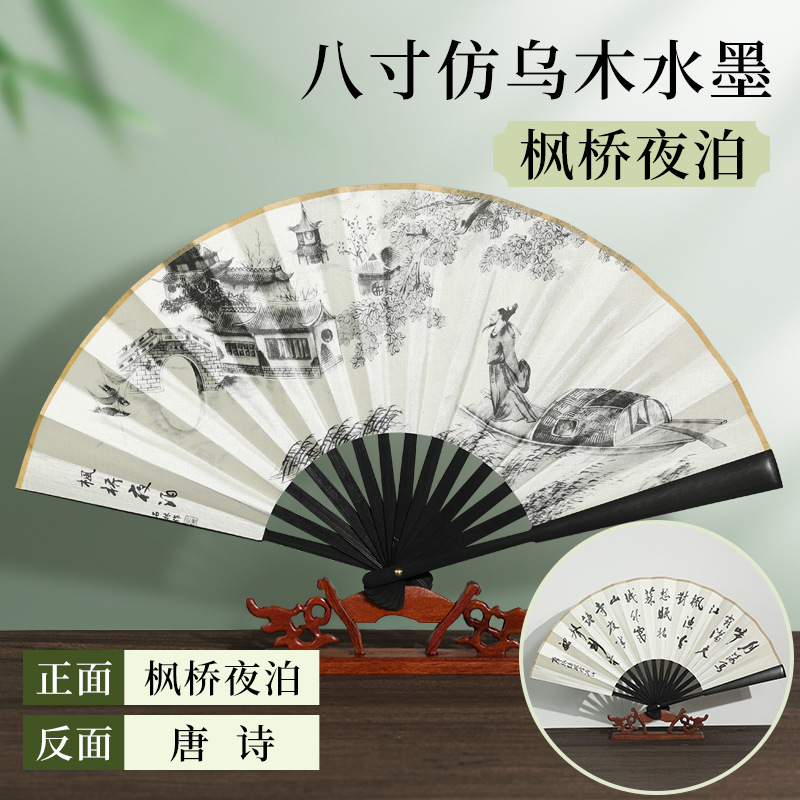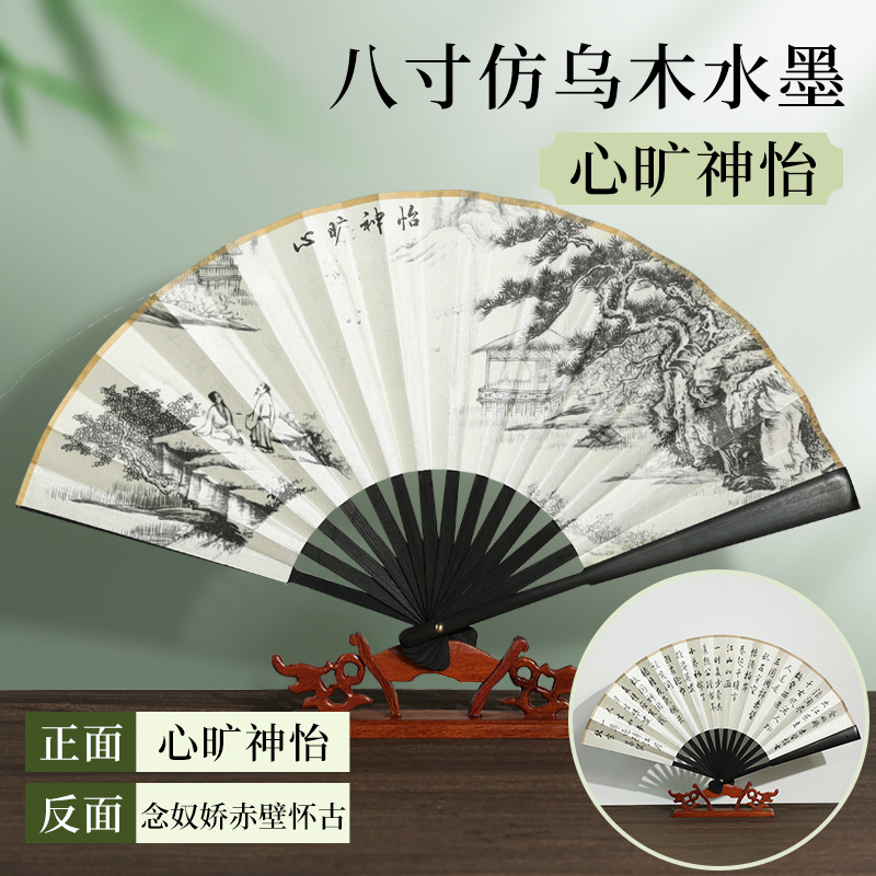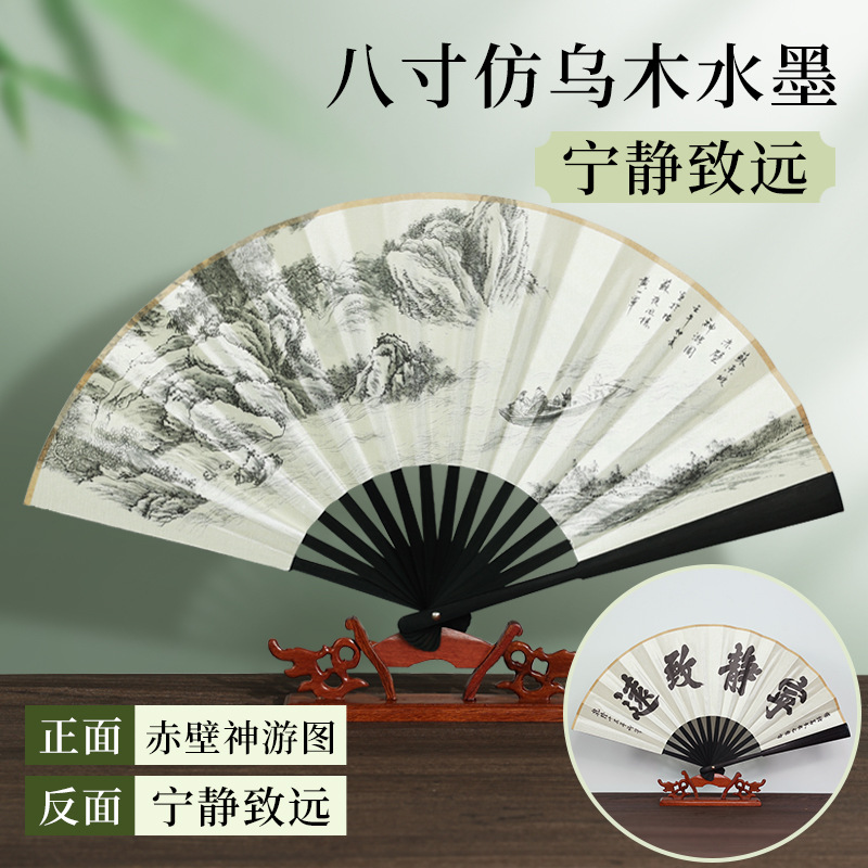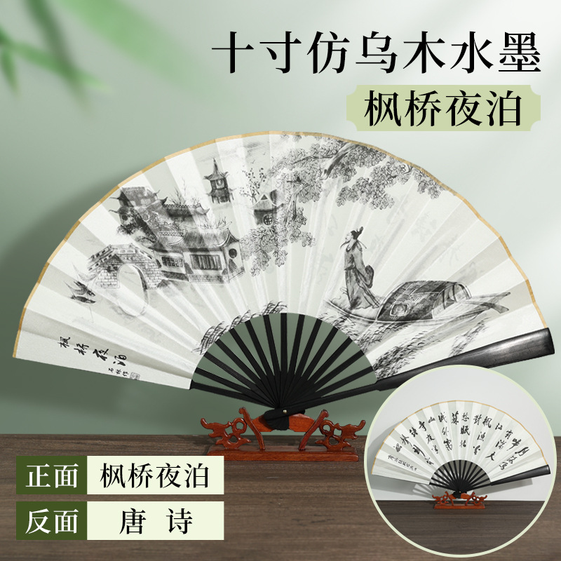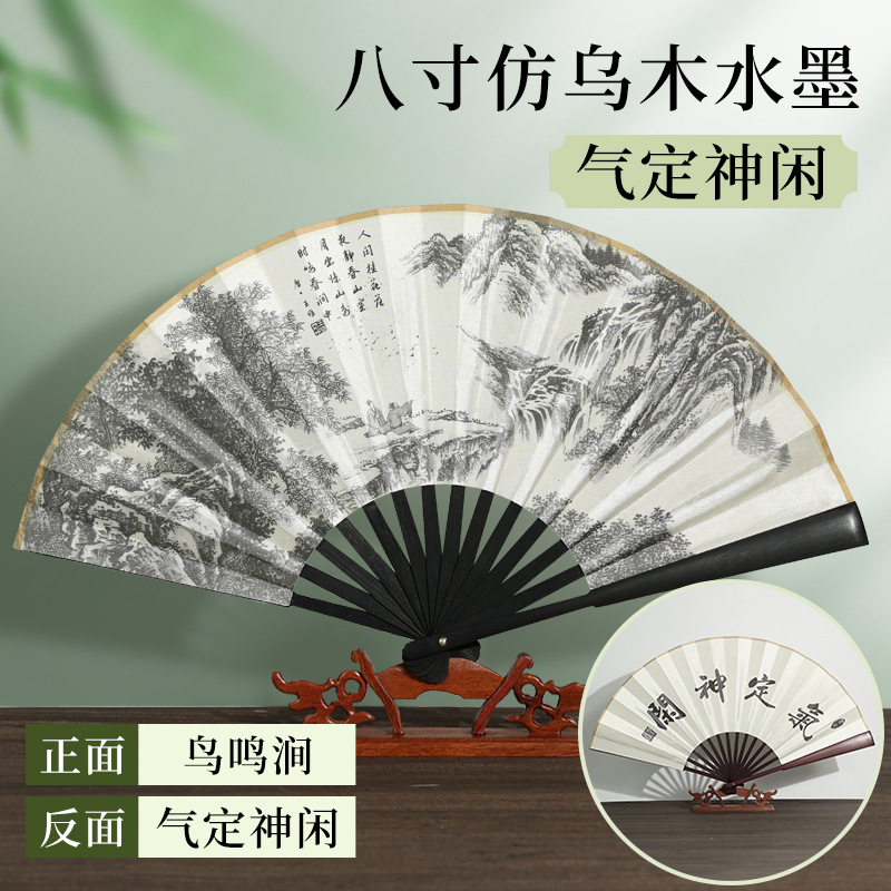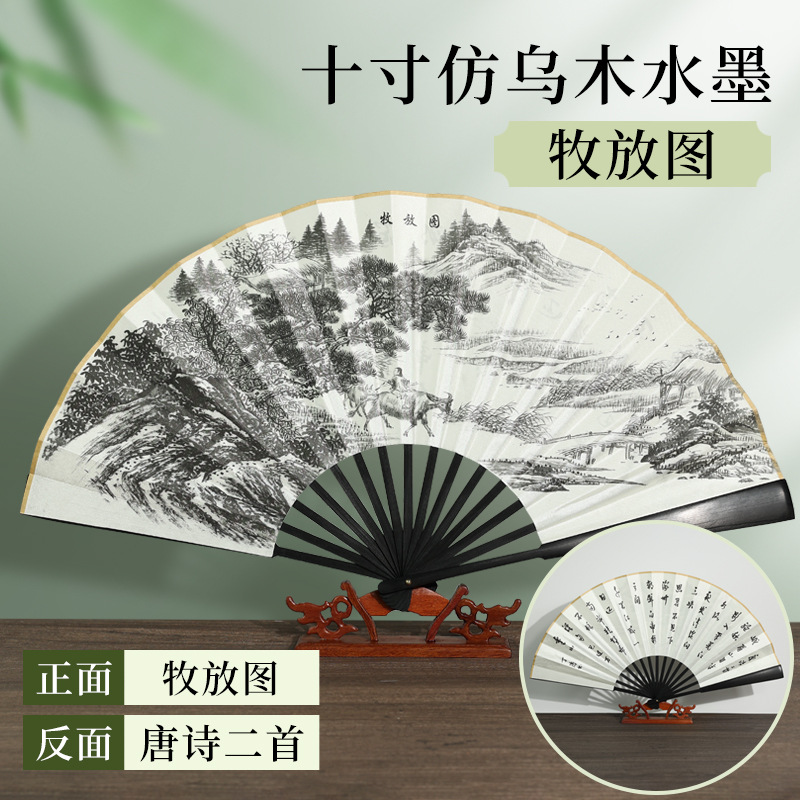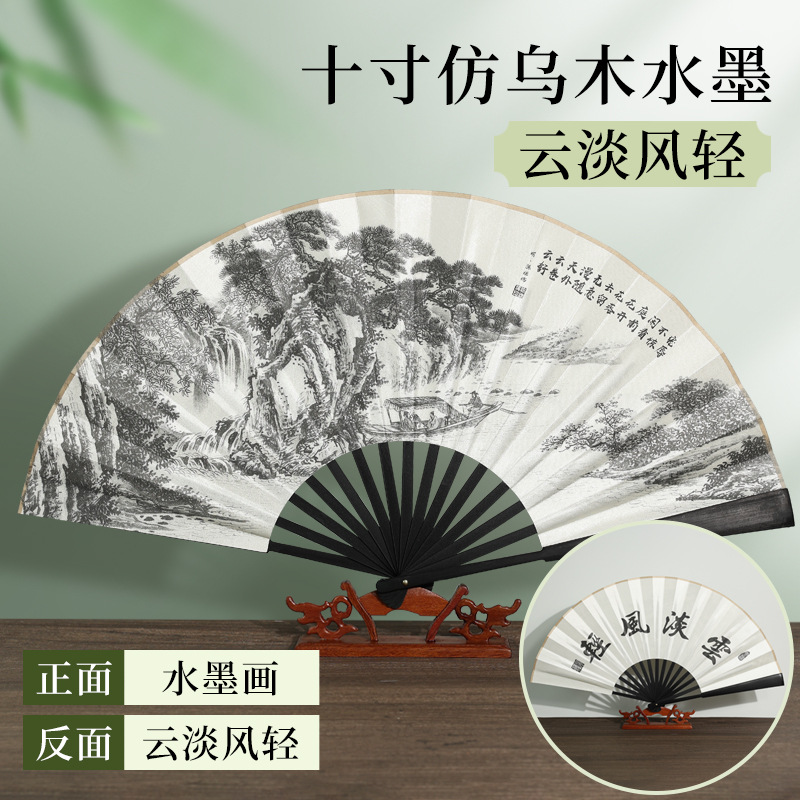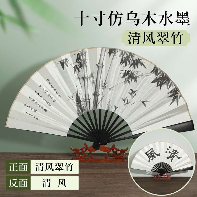 | [bonded] 10-inch double-sided pure black raw silk (redwood-like fan frame)(【已经粘合】10寸双面纯黑绢布(仿红木扇骨)) | USD $0.9 | 9996 piece available |