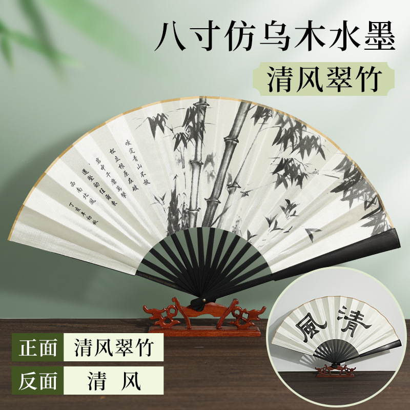 | [bonded] 8-inch double-sided pure black raw silk (redwood-like fan frame)(【已经粘合】8寸双面纯黑绢布(仿红木扇骨)) | USD $0.75 | 9999 piece available |