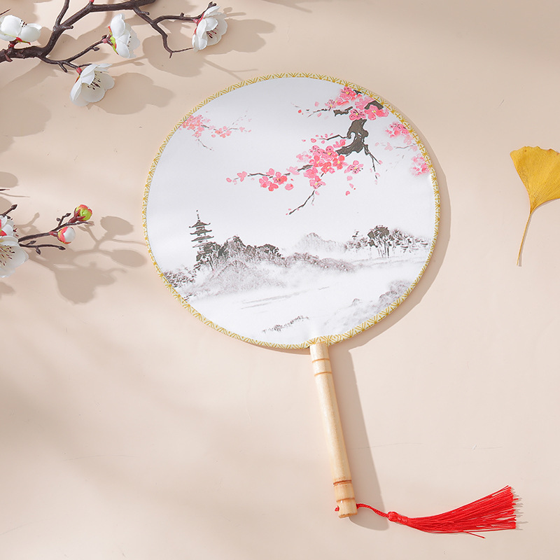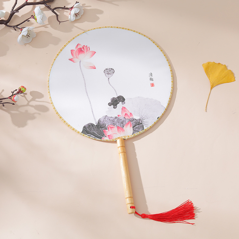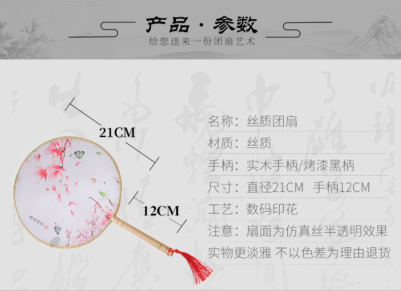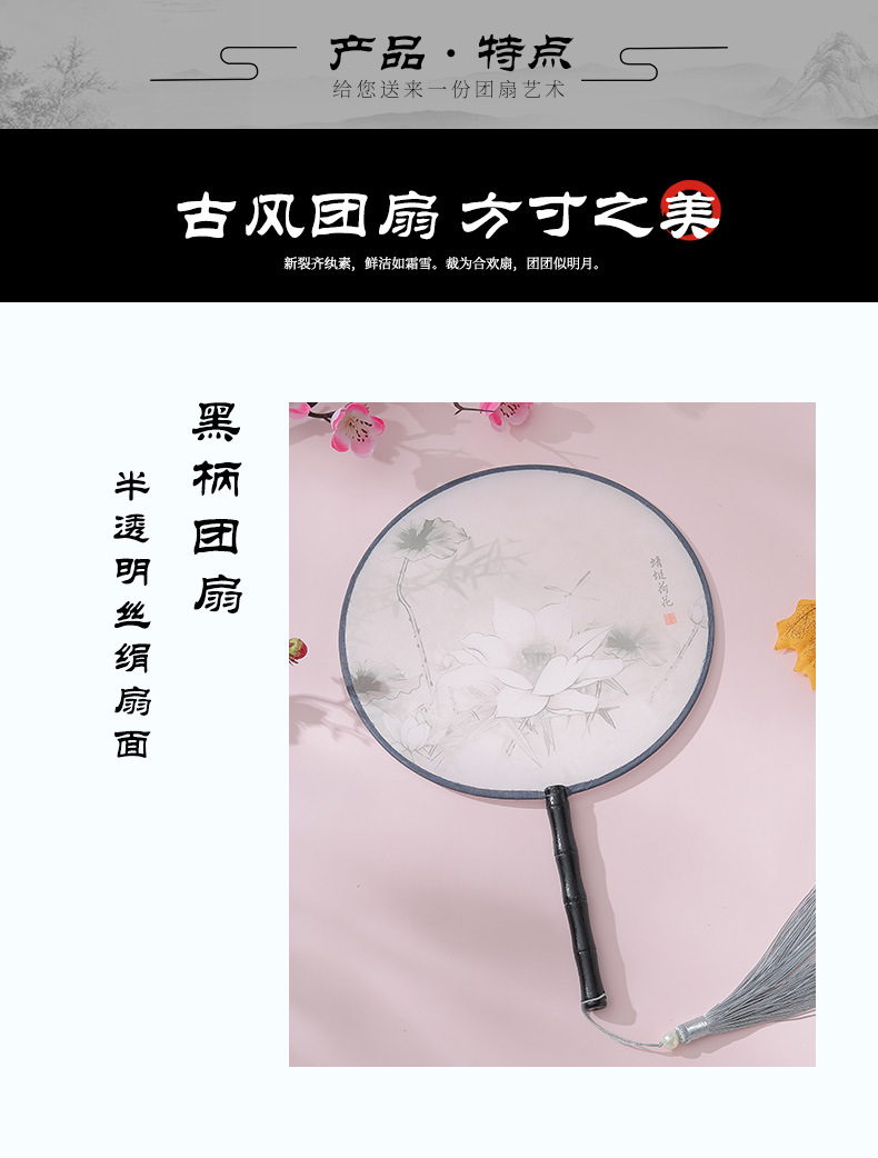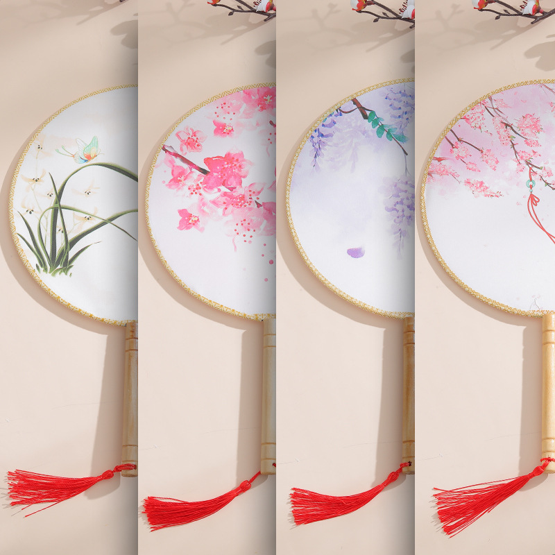 厂家供应古风团扇古典绢面扇空白批发汉服舞蹈广告宫扇圆形扇子