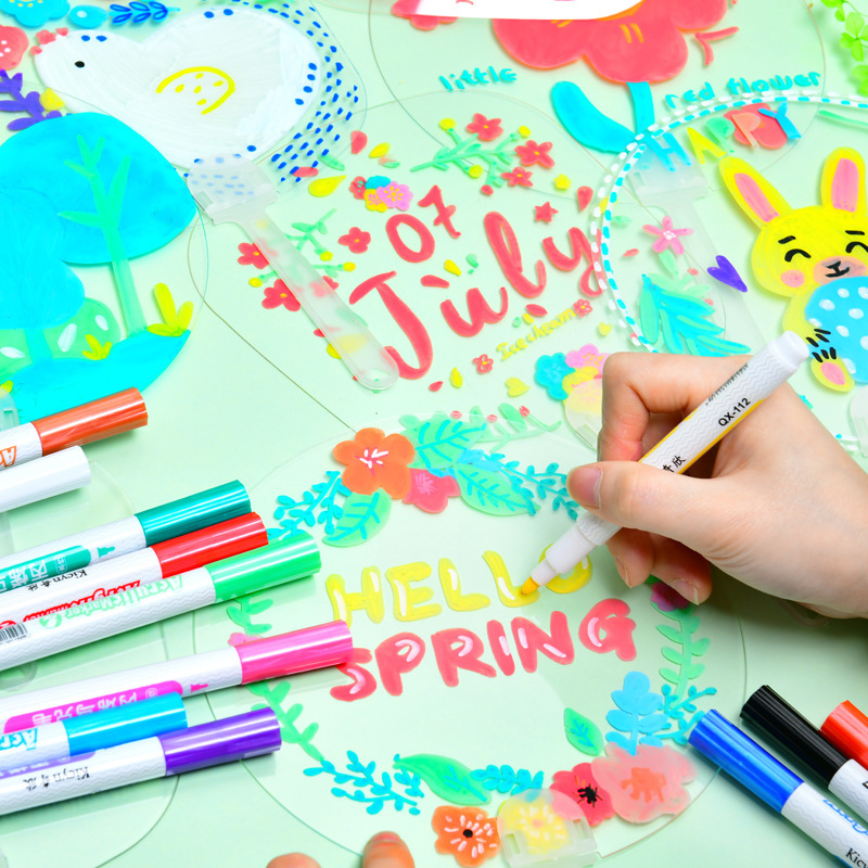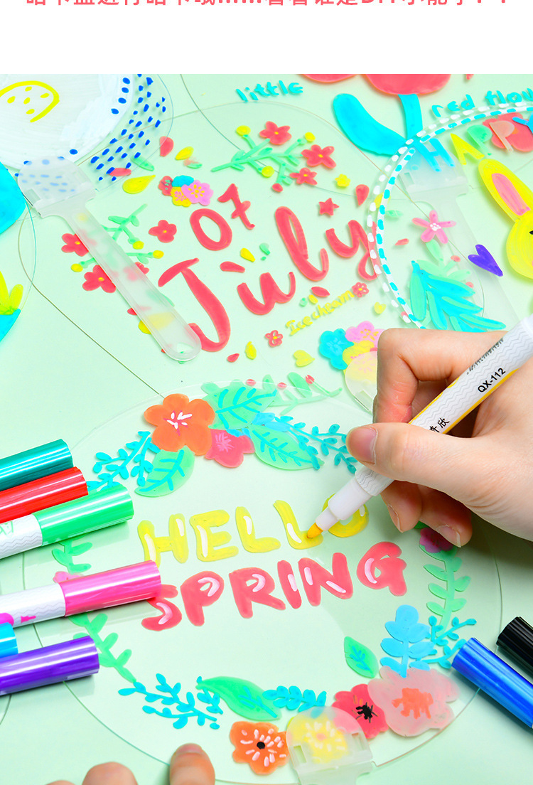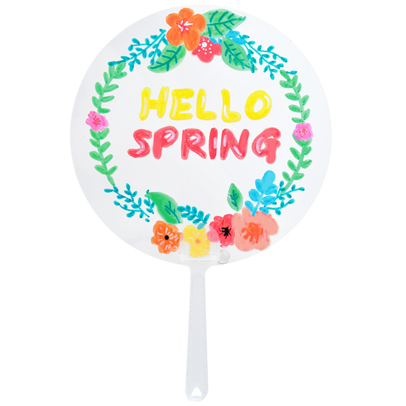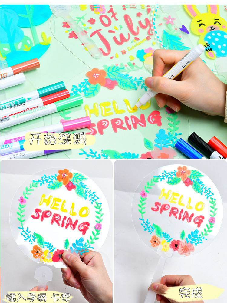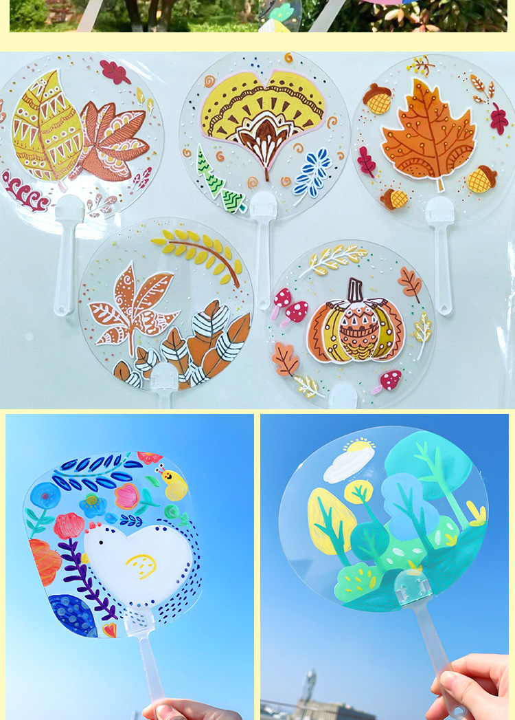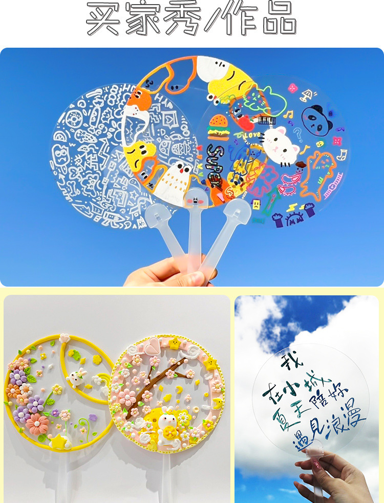 批发国风儿童透明扇子手工diy材料包幼儿园创意彩绘古风塑料团扇