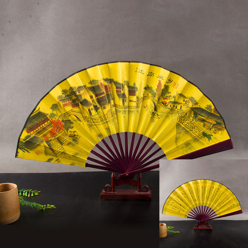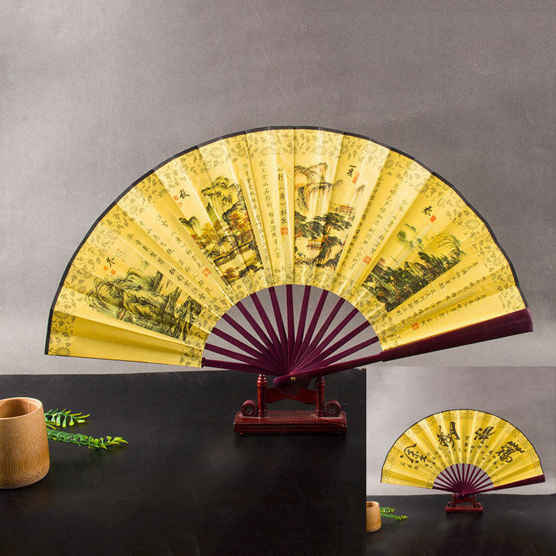 厂家直销10寸男扇古典十寸男士折扇竹质绢布中国风扇子现货批发