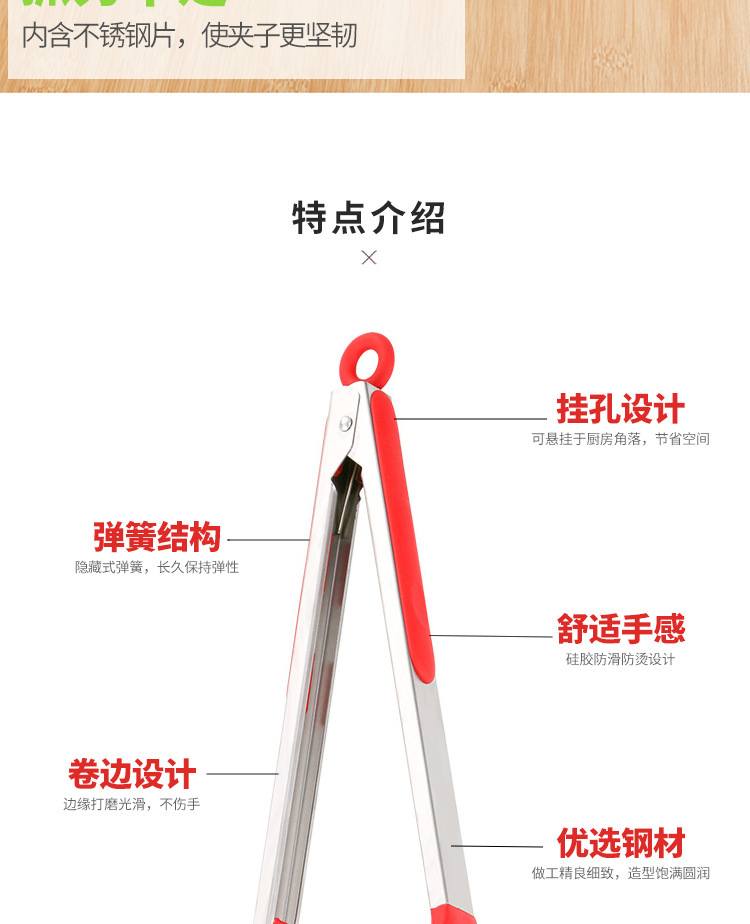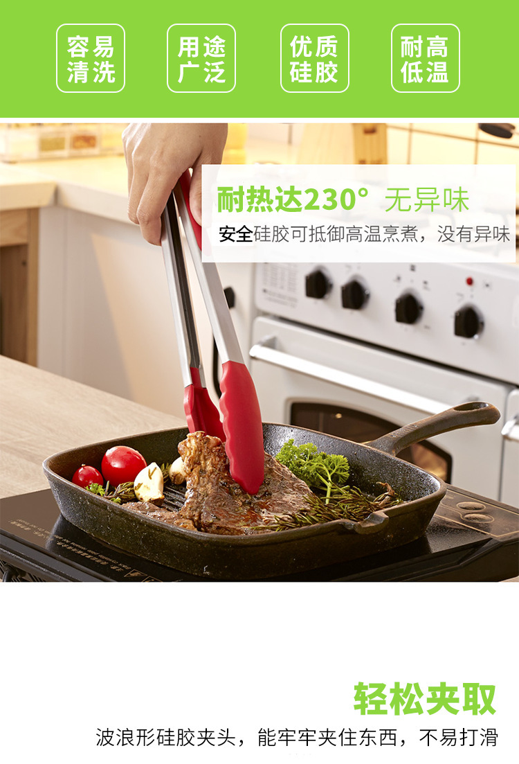 厨具 食品夹 新品9寸硅胶食品夹 厨房夹子食物夹 BBQ烧烤夹牛排夹