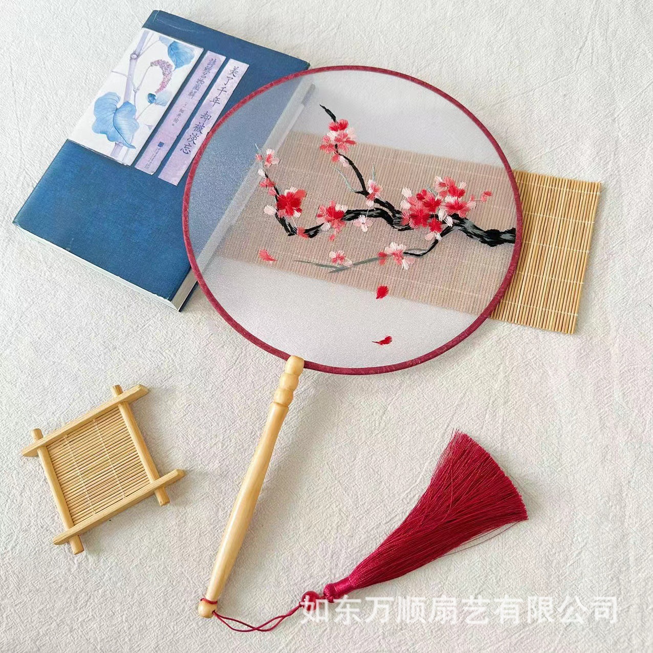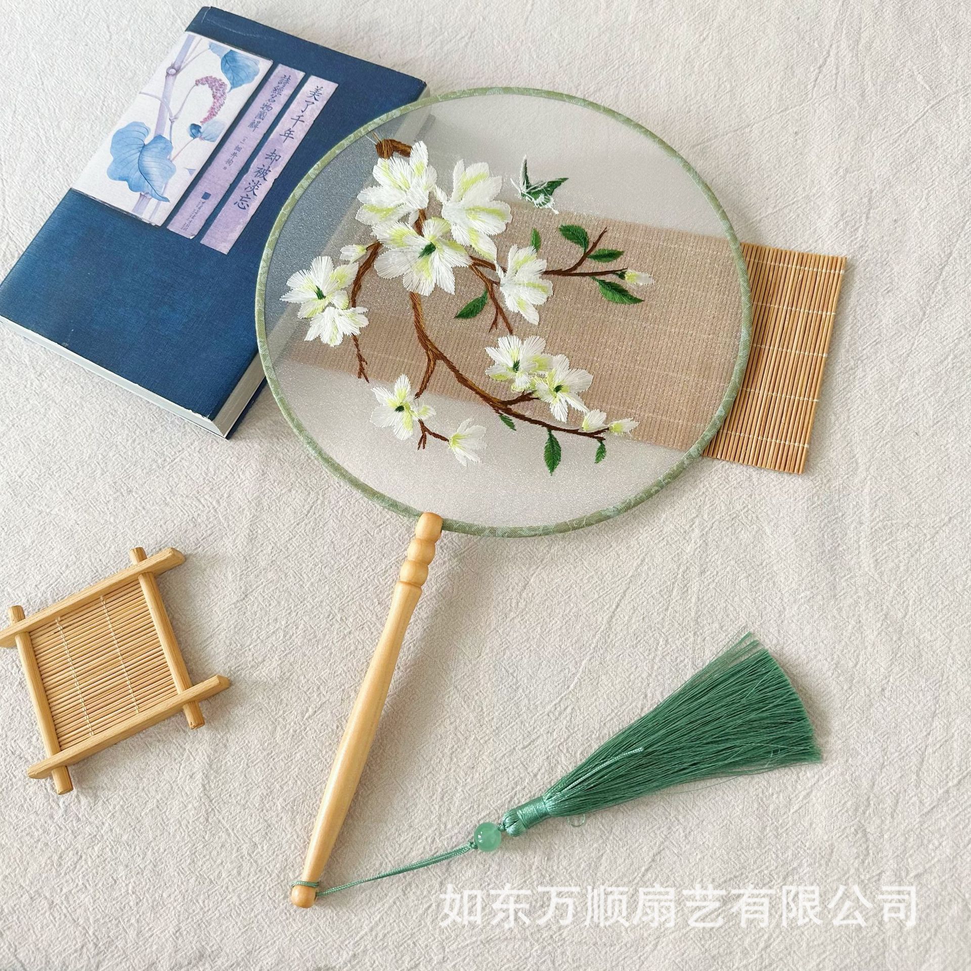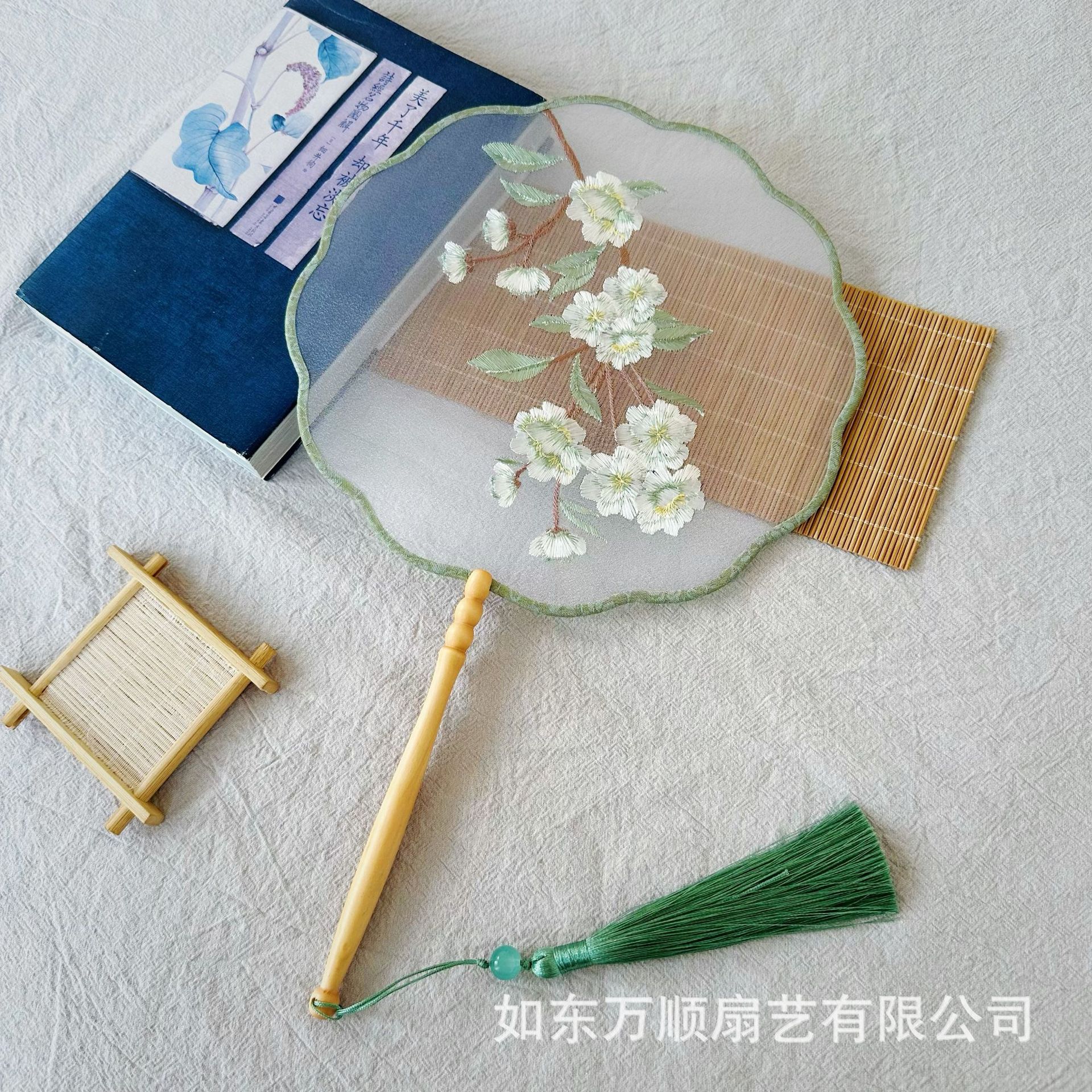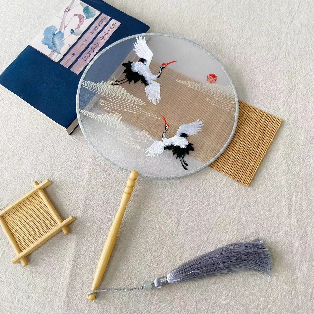 团扇刺绣古风圆扇中国风汉服古典长柄摄影扇旗袍夏季仙鹤舞蹈扇子