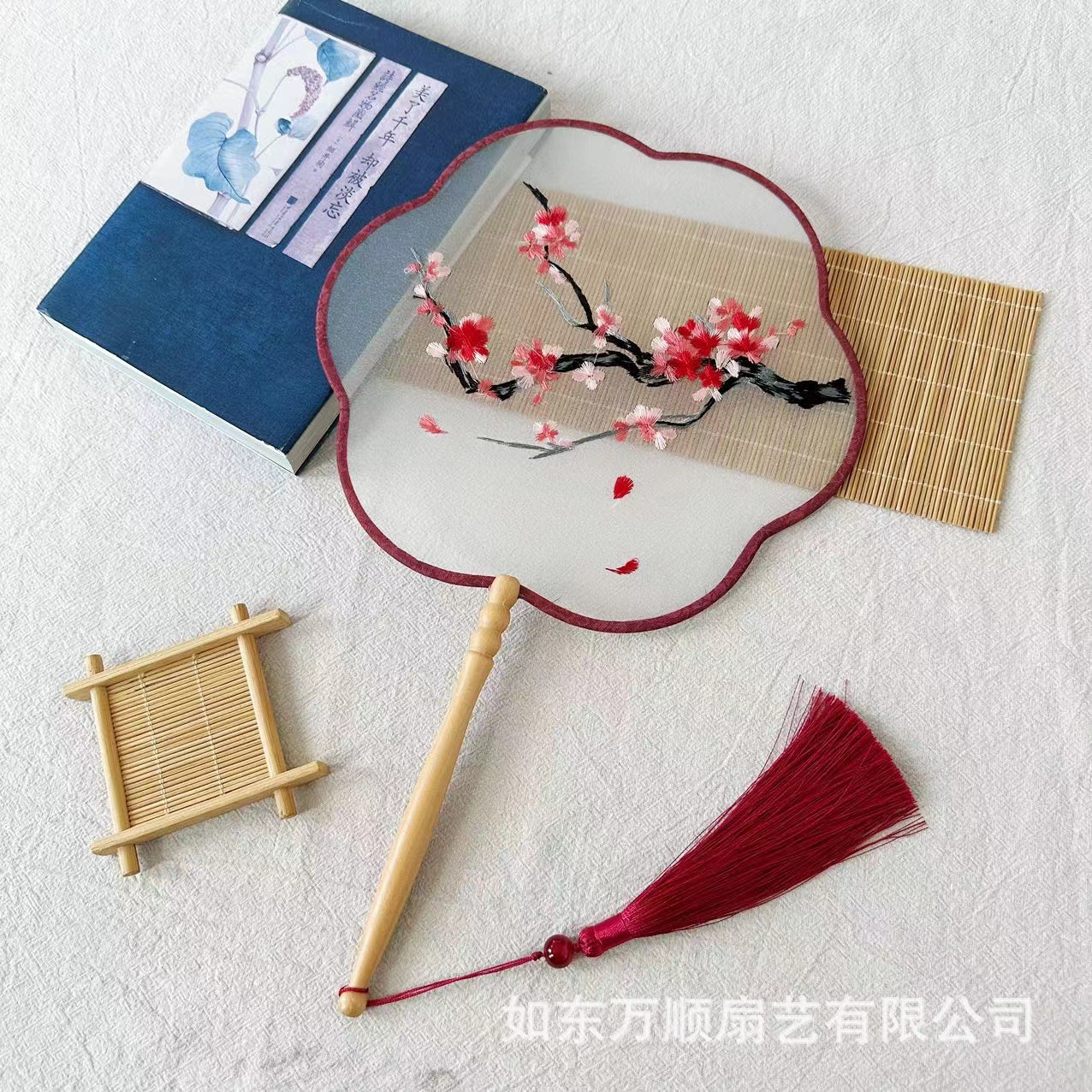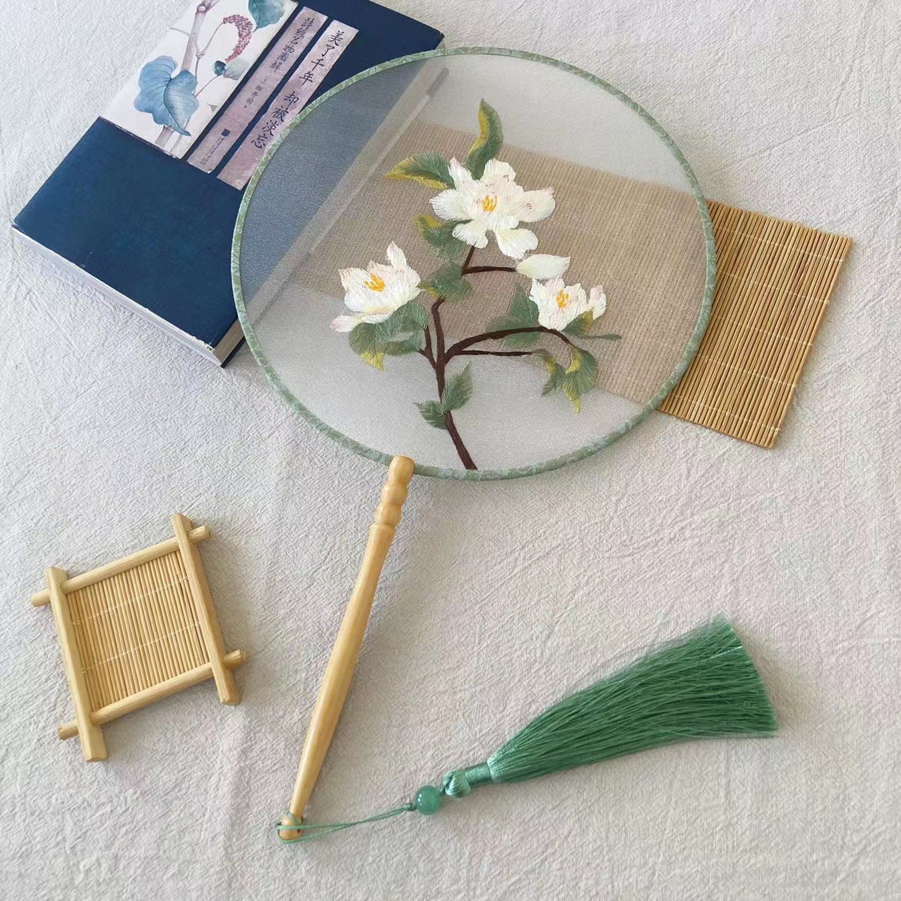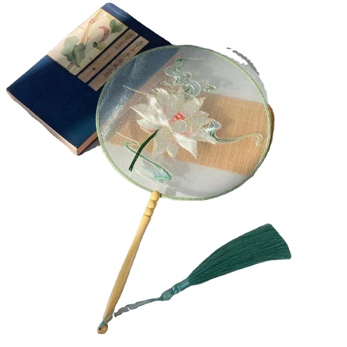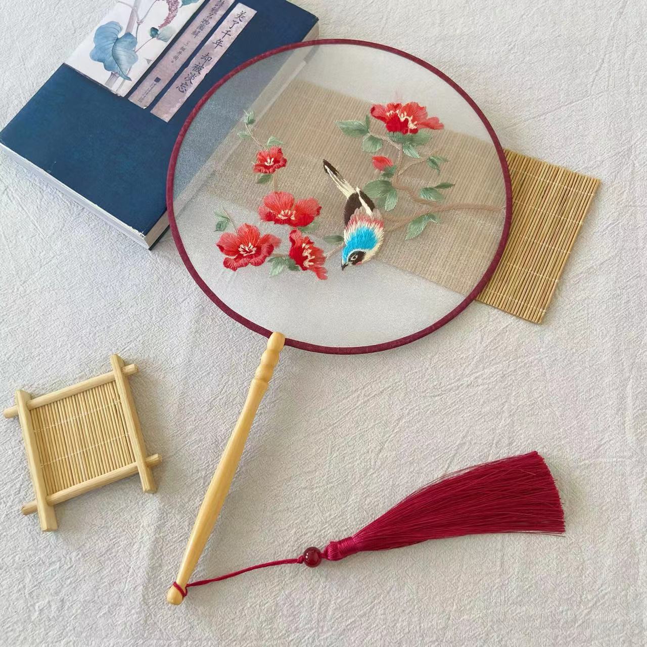 团扇刺绣古风圆扇中国风汉服古典长柄摄影扇旗袍夏季仙鹤舞蹈扇子